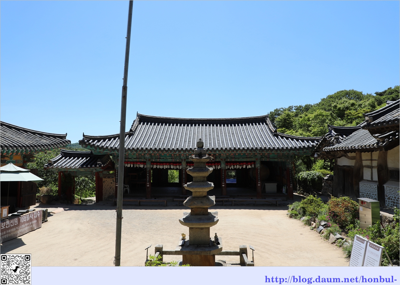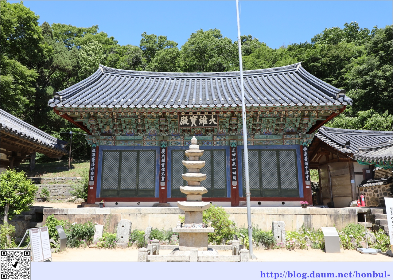 보물 제143호인 대웅전은 창건 당시의 기단 위에 조선 성종 15년(1484)에 중창한 다포식과