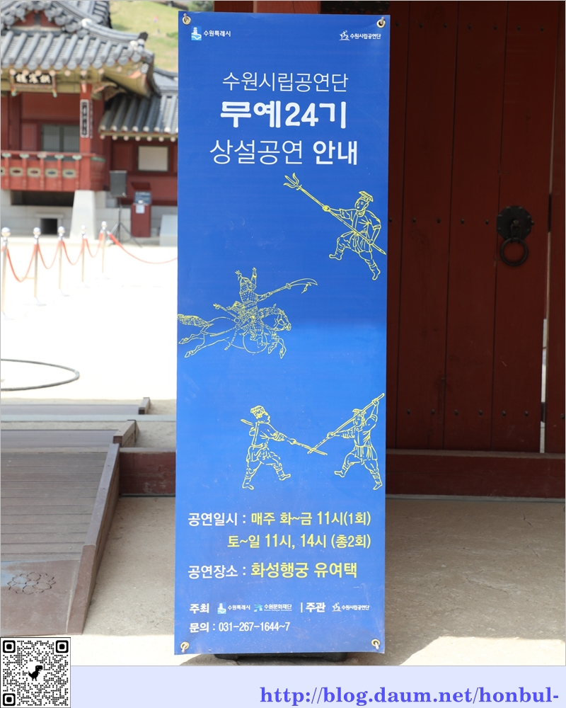 수원화성을 탐방하던 중 화성행궁에서 11시부터 무예 24기 시범 공연을 한다는 안내문을 봤다.