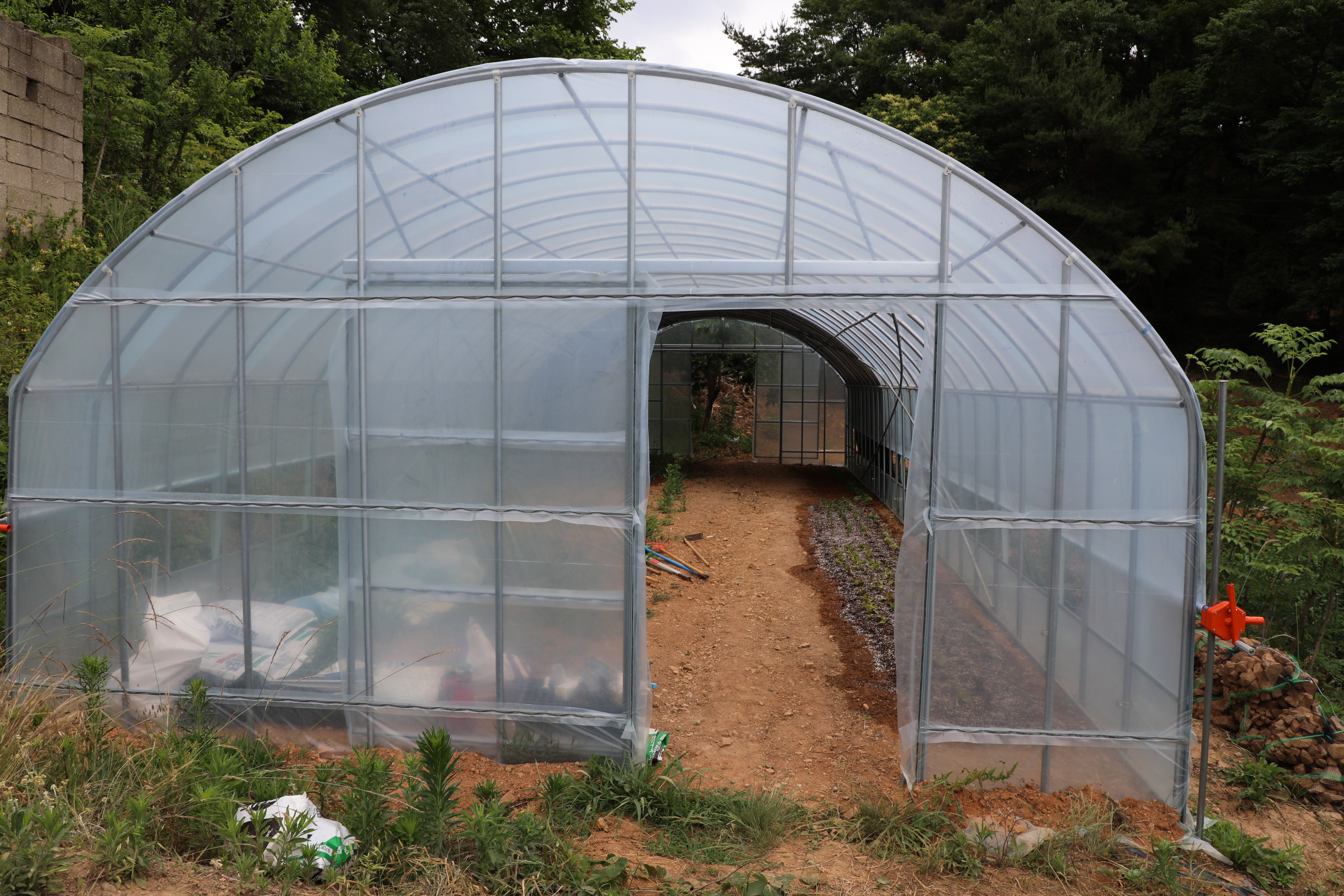 오늘 첫 일정은 숙소 뒤 둔덕에 있는 밭에 물을 주는 것이다.