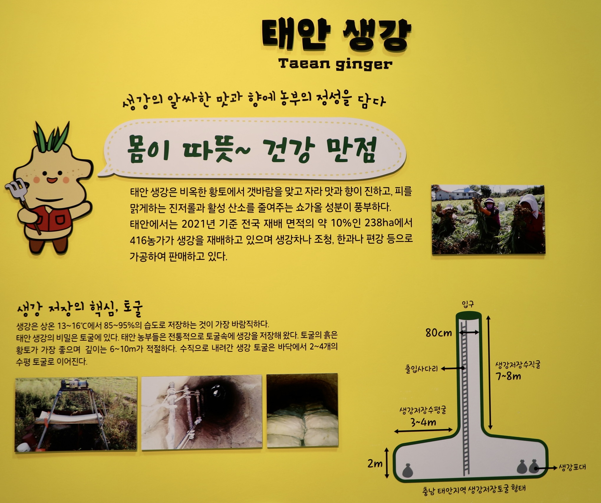 태안 생강은 일정한 온도와 습도가 중요한데, 예전부터 토굴 속에 저장했다고 한다.