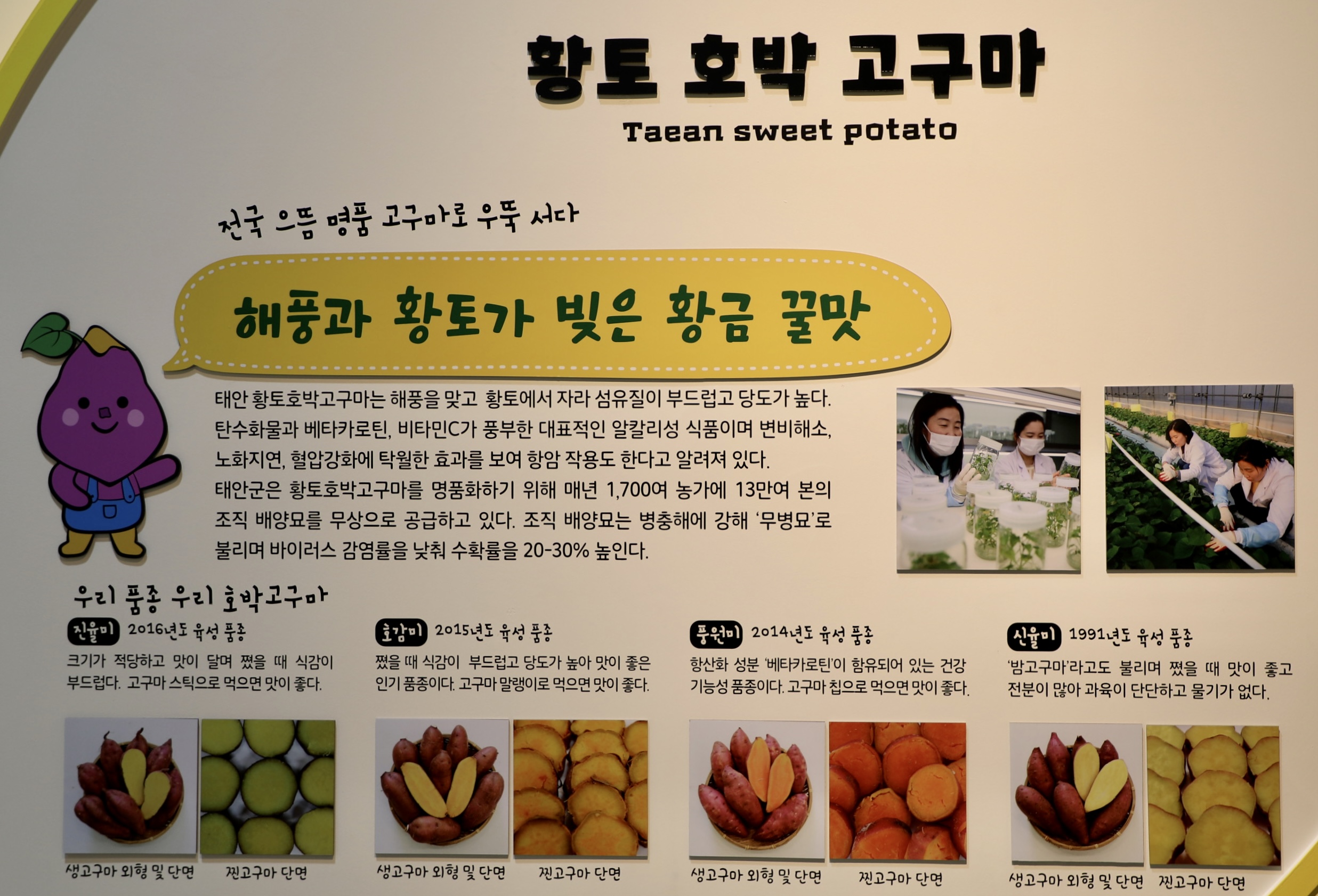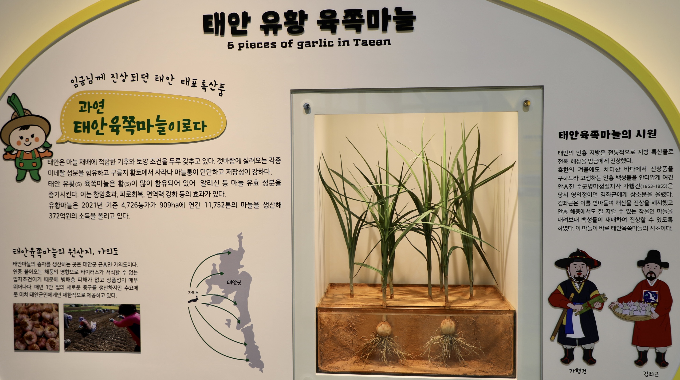 전시관에서는 태안의 여섯 가지 농작물 보물에 대한 설명으로 채워졌다.