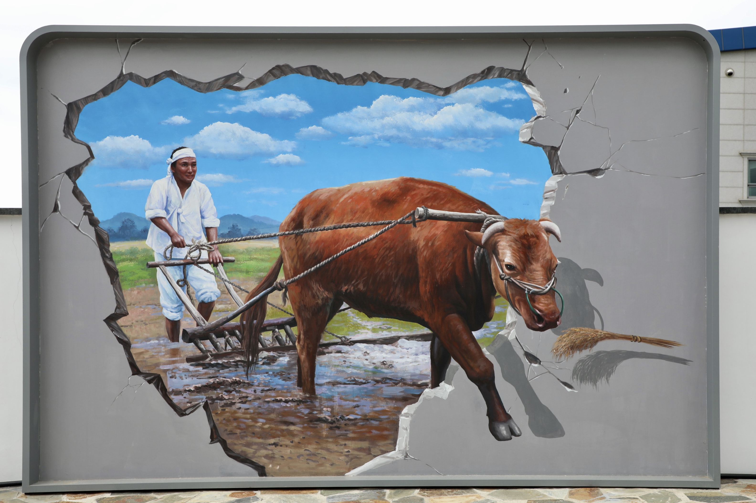 방금 시공을 박차고 나온 옛날 농법을 보여주는 그림판이 인상적이다.