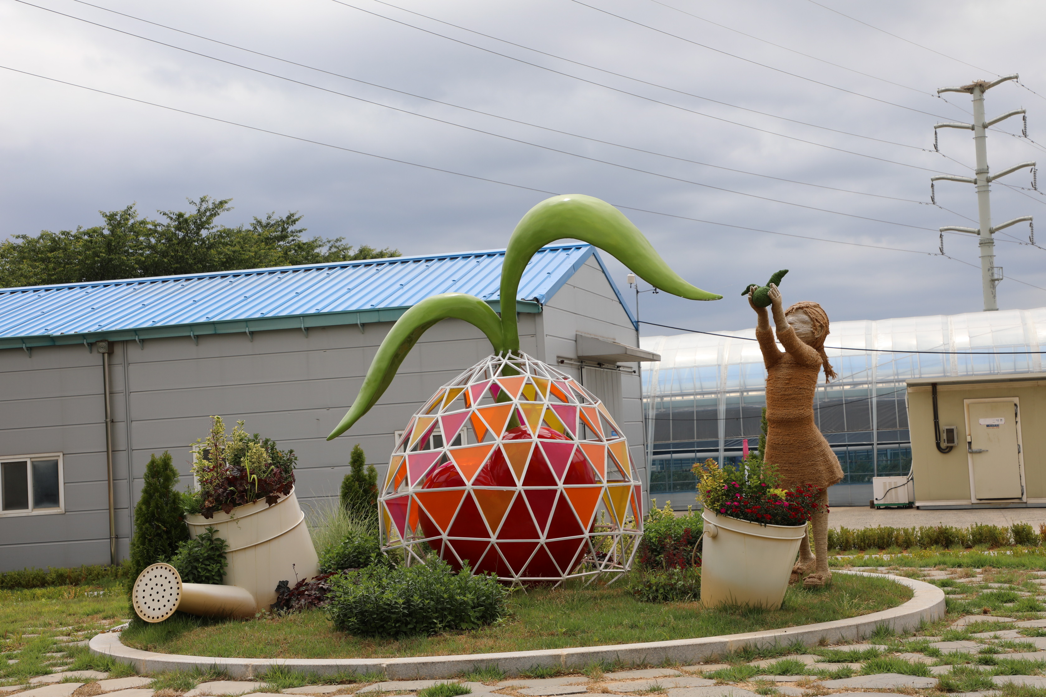 이 농업전시 체험관 여성 안내자의 열정적인 강의를 잘 듣고 옥상에 있는 테마 공원으로 올라간다.