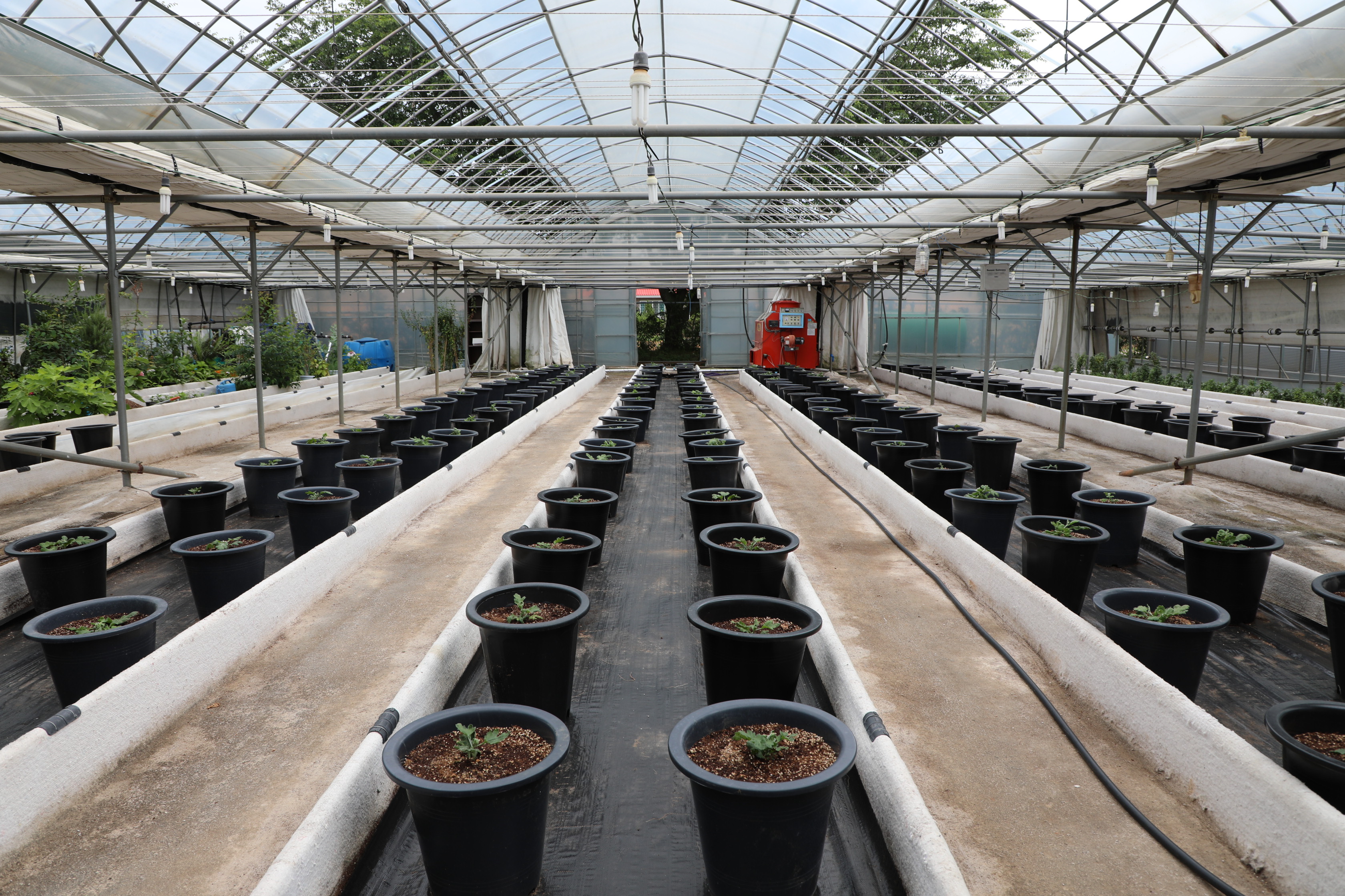 여러 작물을 시험 재배하는 비닐하우스