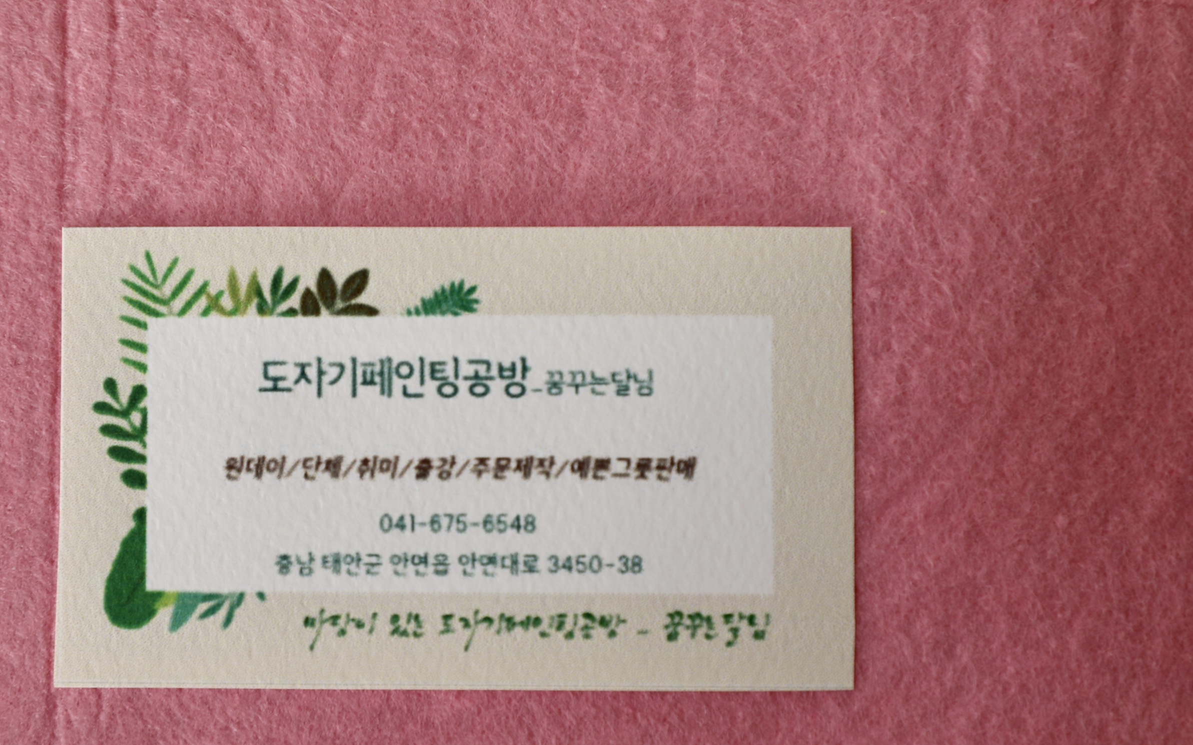 꿈꾸는 달님에서 도자기 페인팅 체험을 원하는 분을 위해 명함을 남긴다.
