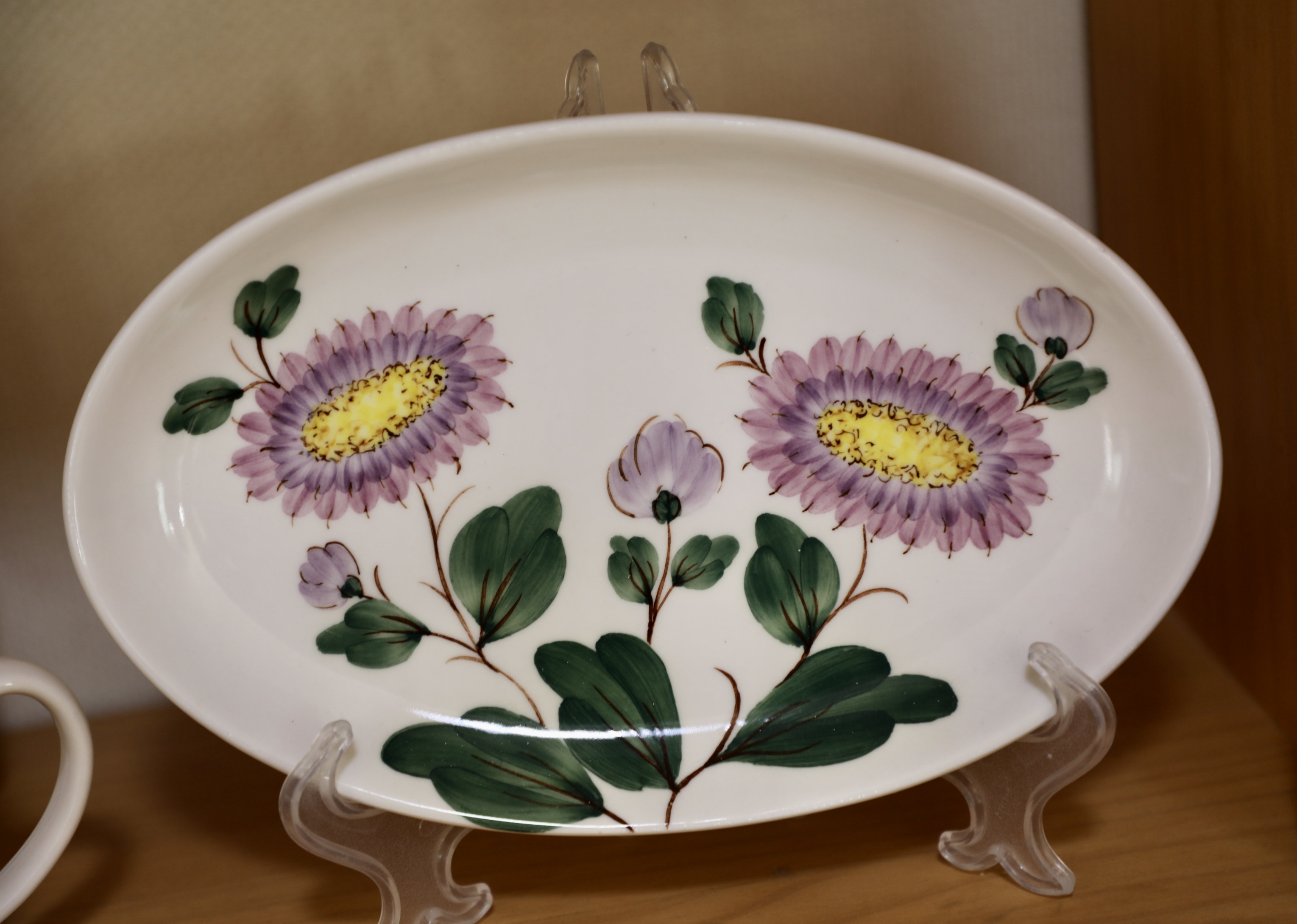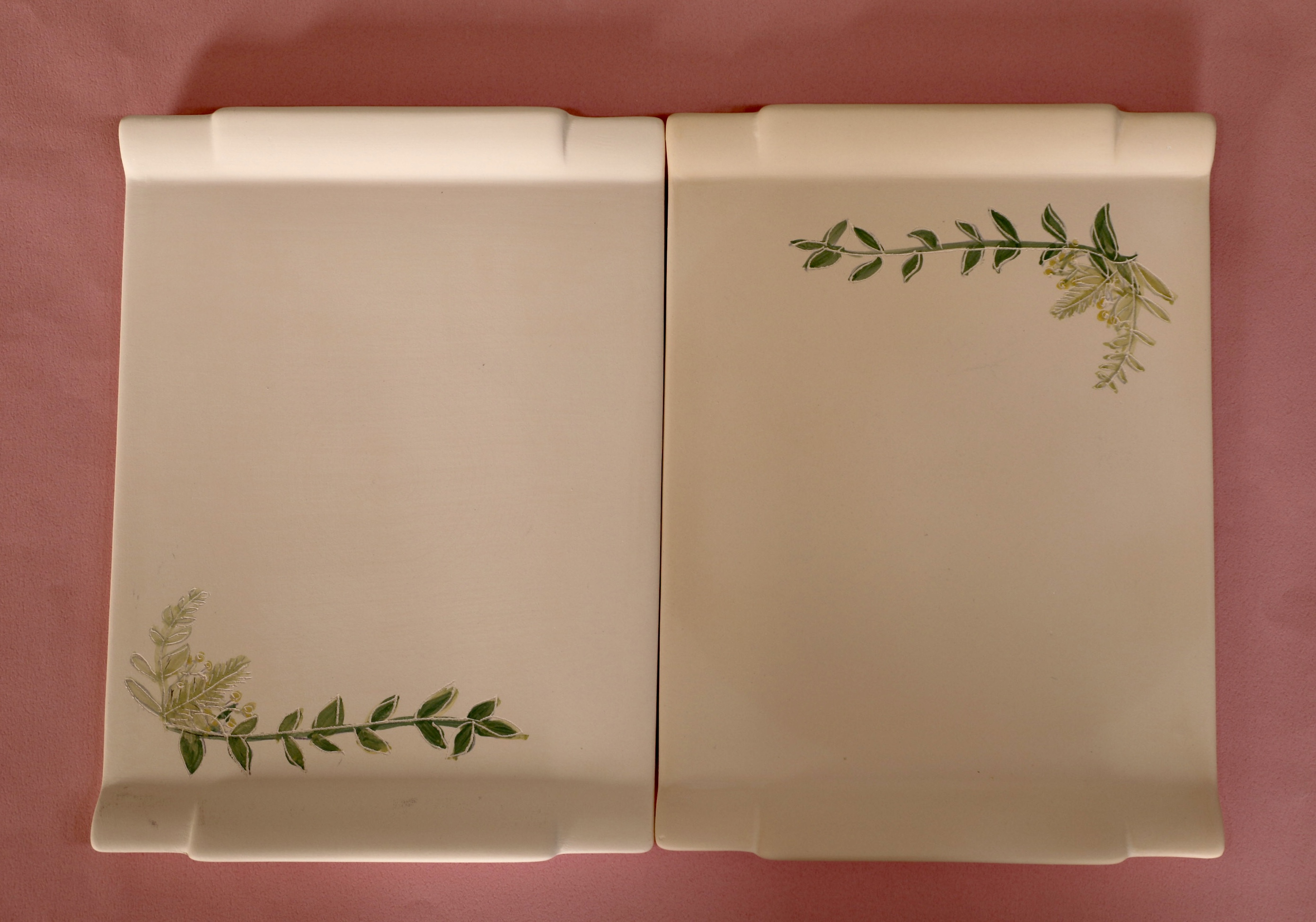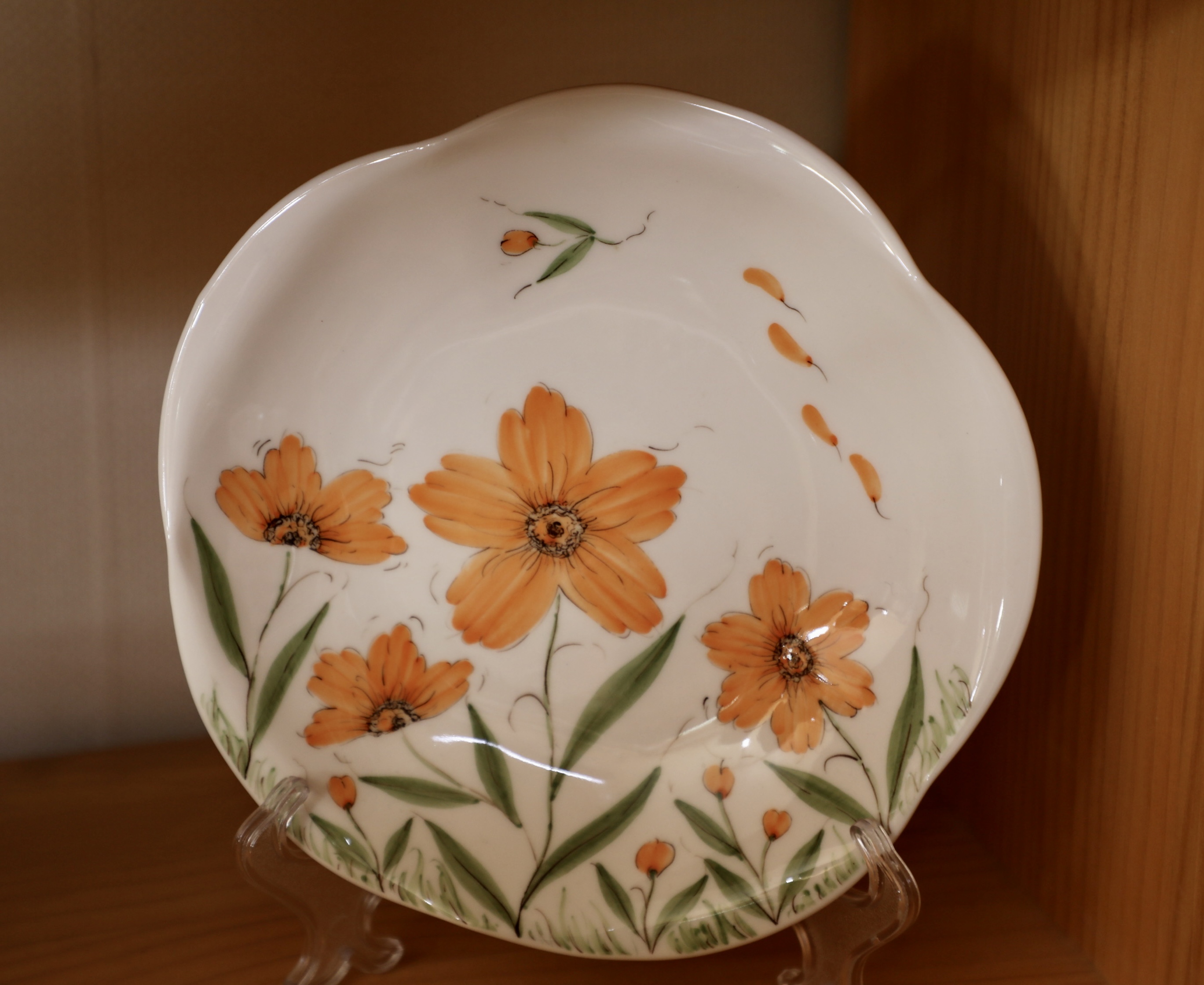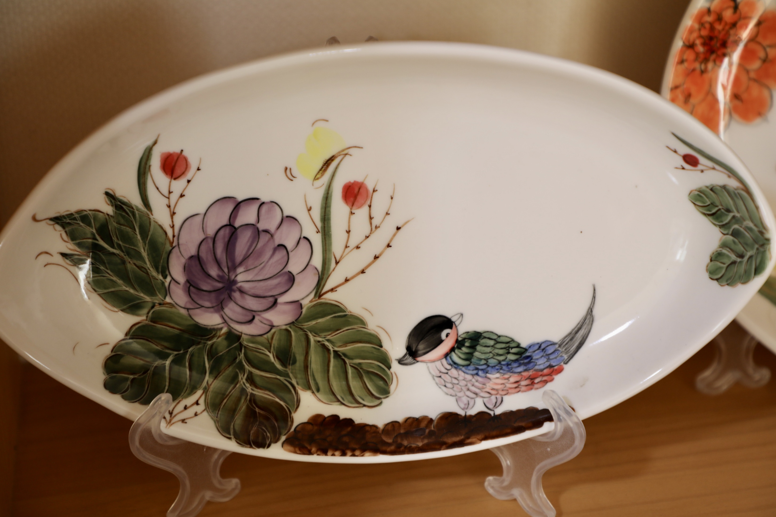 1차로 구운 평면적 생활 자기에 원하는 도안을 받아 똑같은 그림을 그린다.