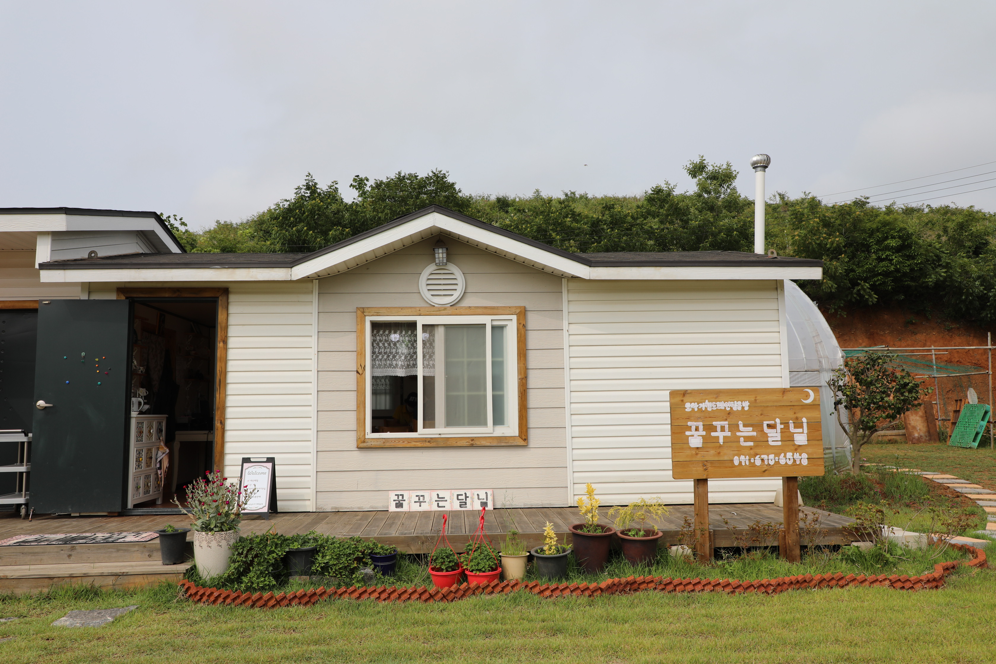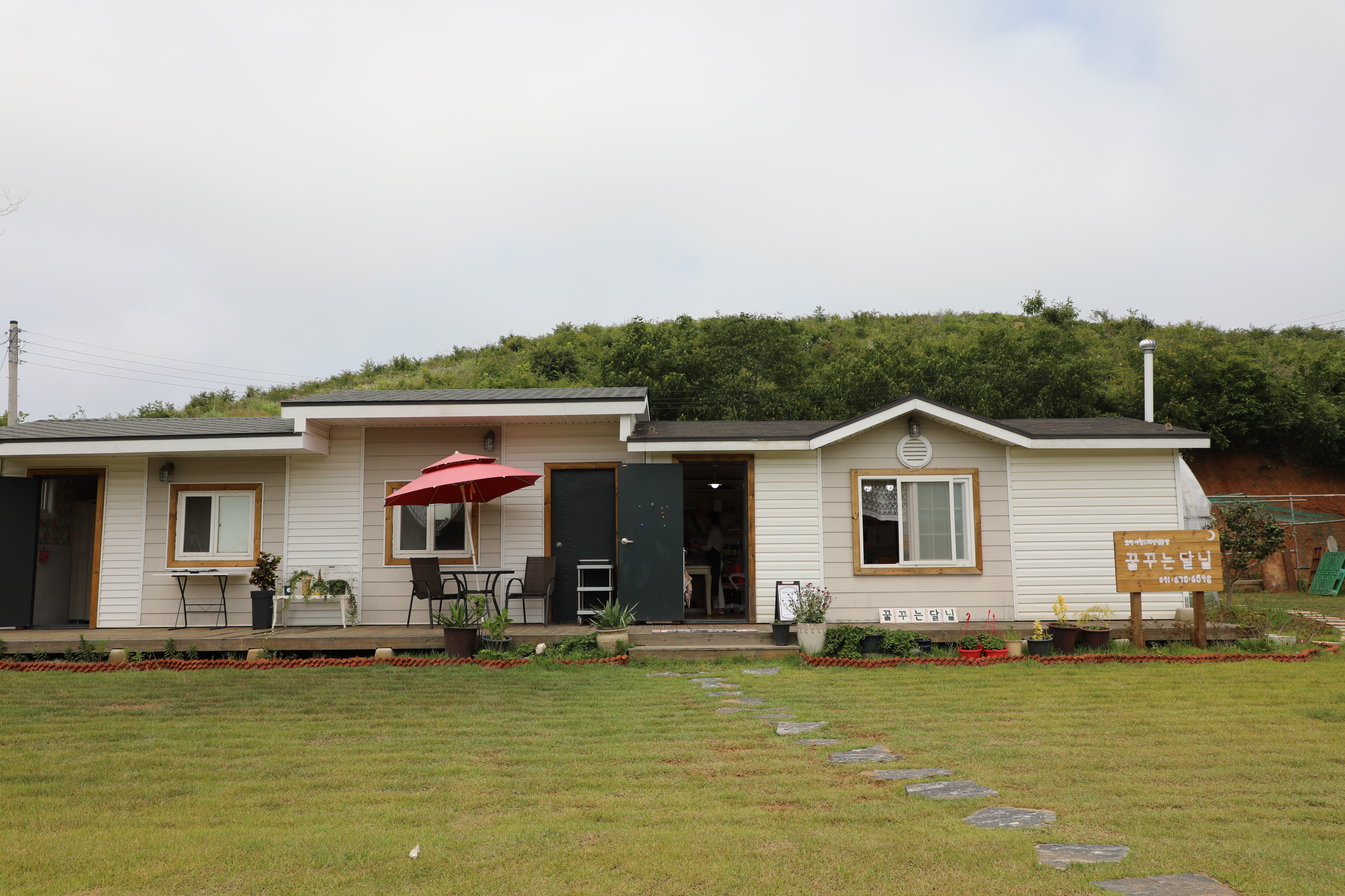 "꿈꾸는 달님"에서 도자기 페인팅한다기에 도착하니 멋진 잔디밭에 예쁜 집 두 채가 먼저 반긴다.