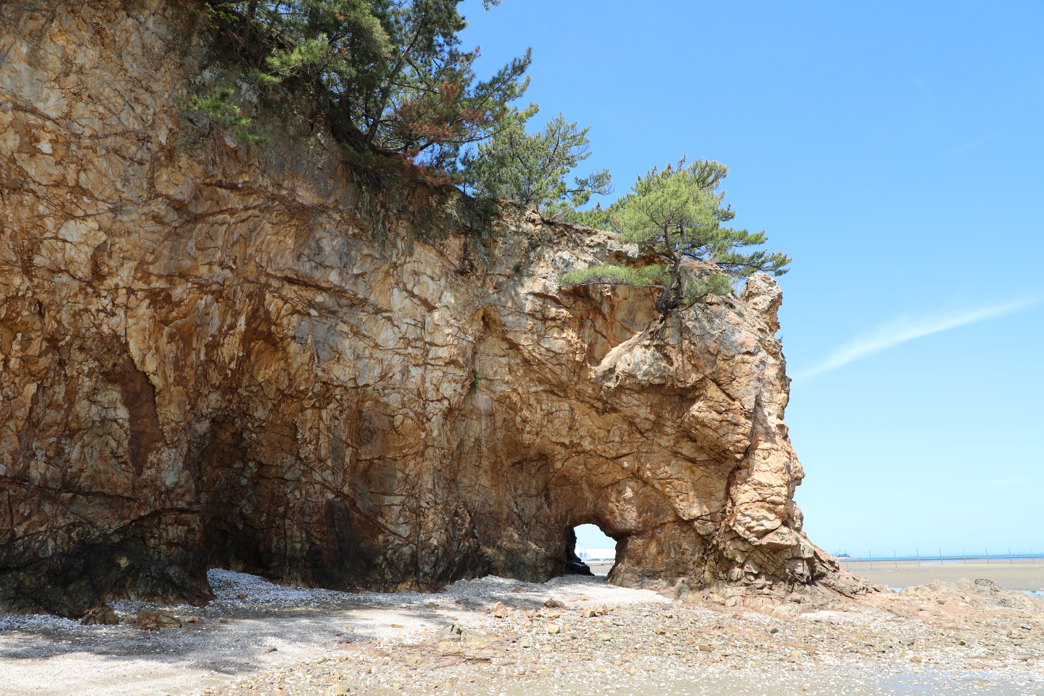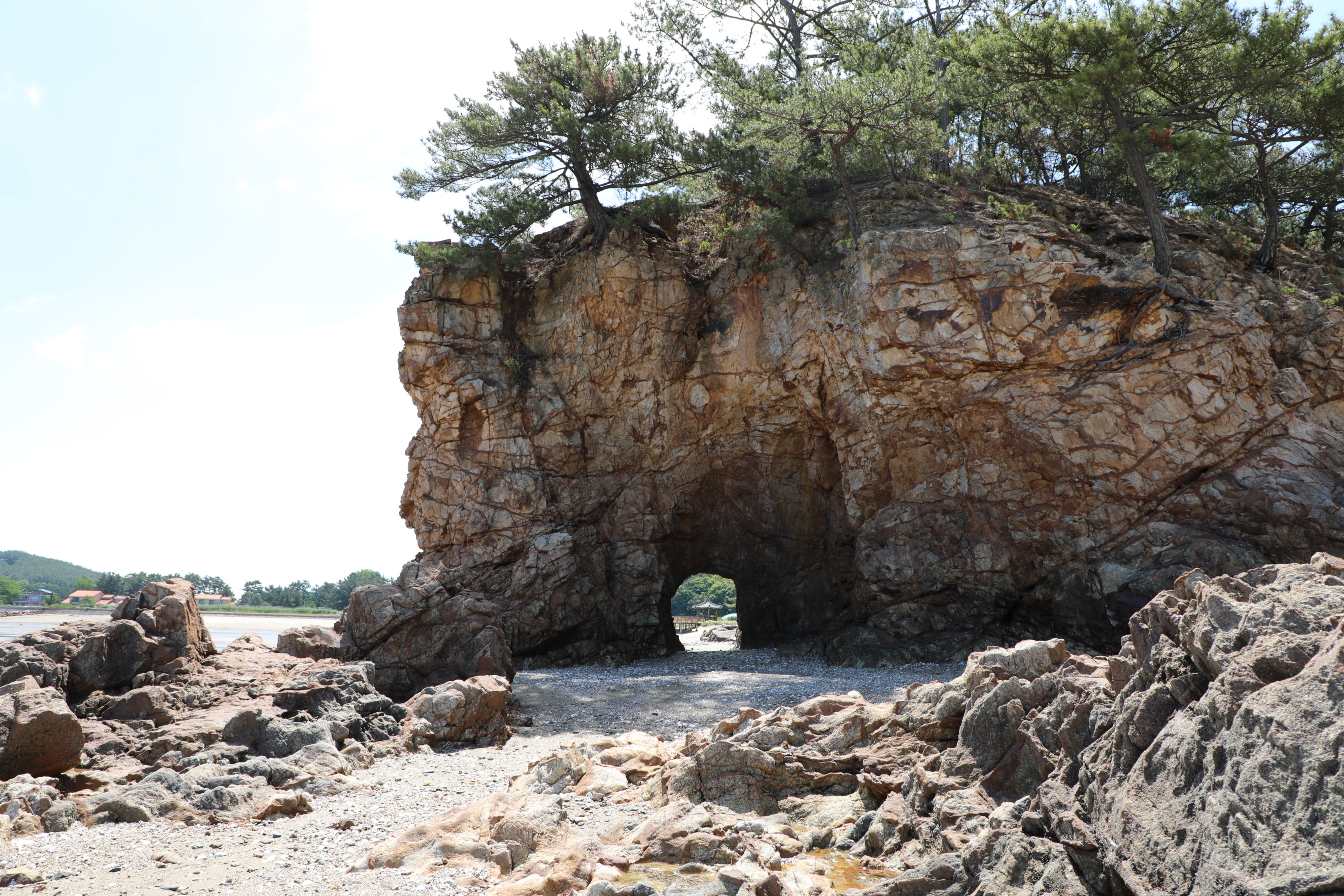 거대한 바위가 바다 한가운데 있어 썰물 때는 맘 놓고 들어갈 수 있다.
