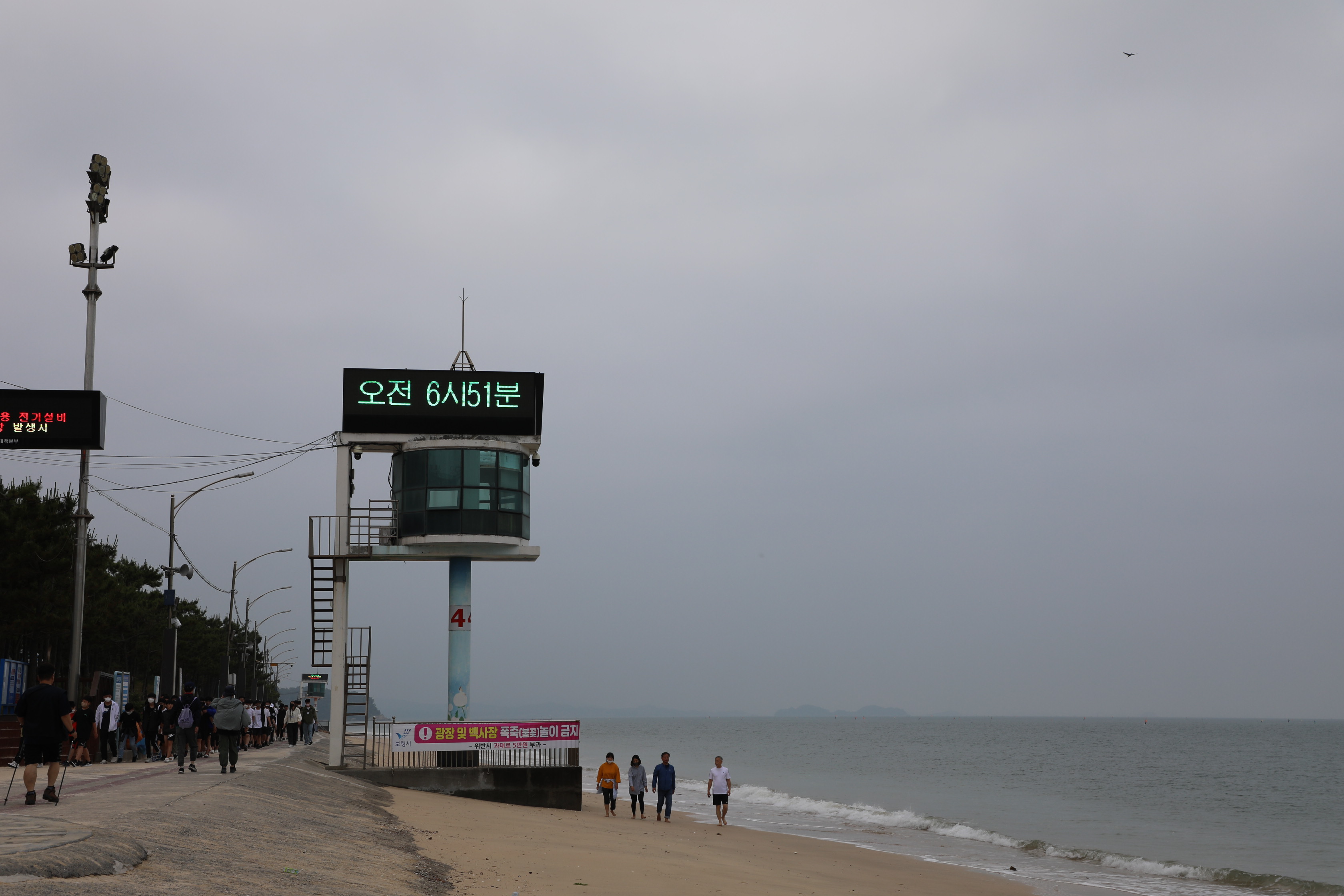 대천해변은 밀물이라 거의 물이 찬 상태다.