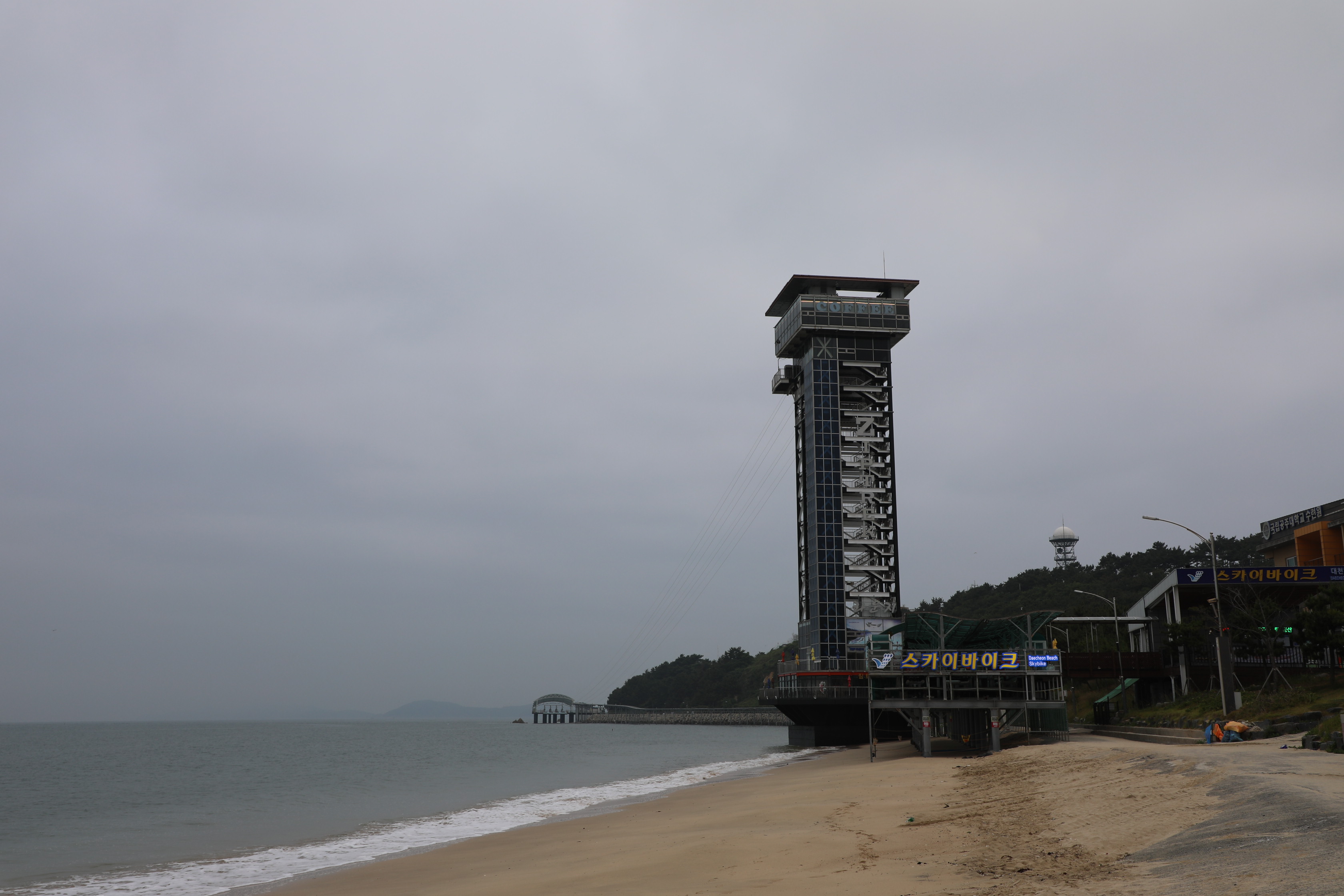 차량통행이 없을 때 차에서 내려 터널 앞뒤로 사진을 찍고 목적지로 이동하는 길에 잠시 대천해수욕장에 들린다.