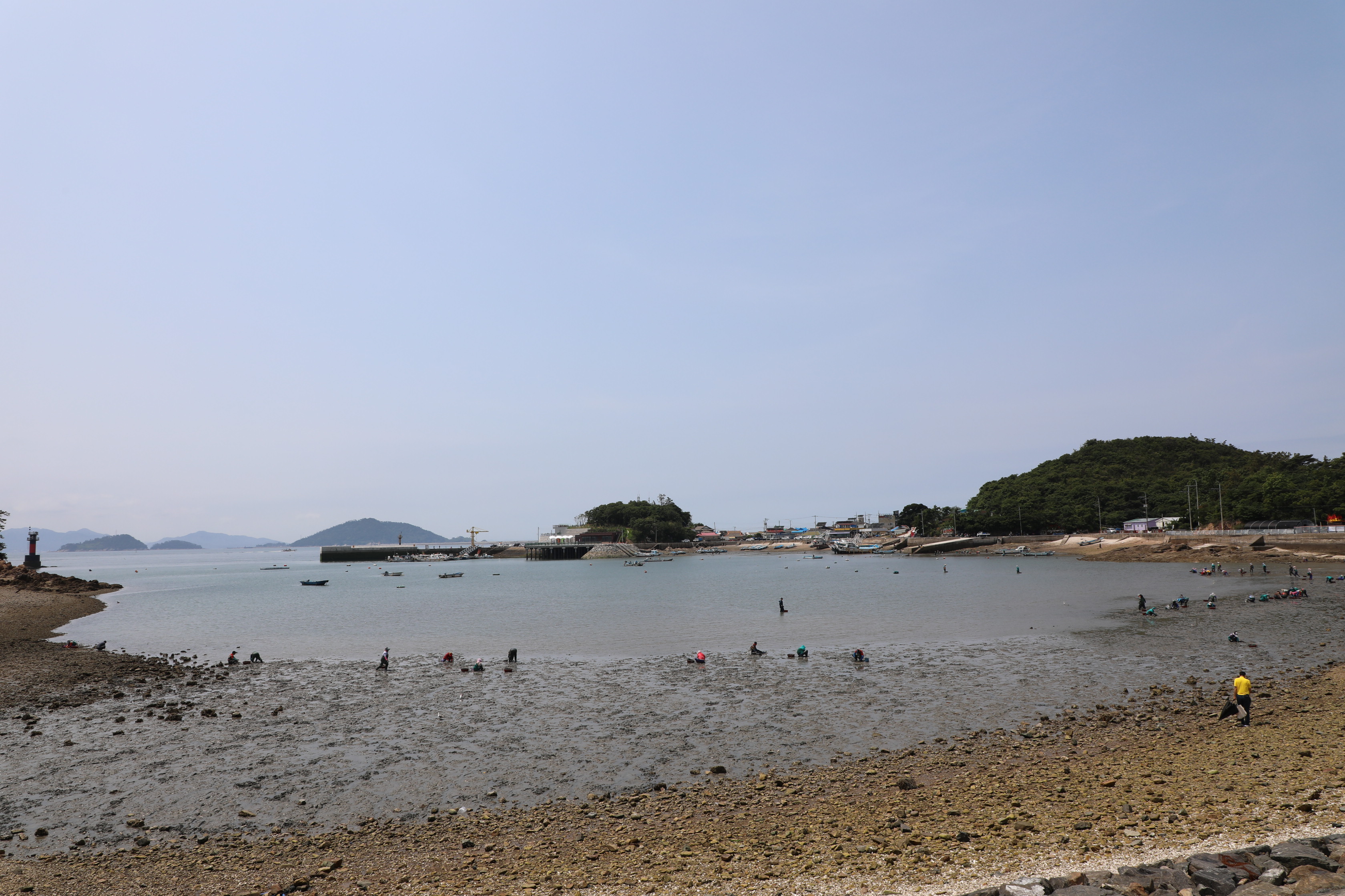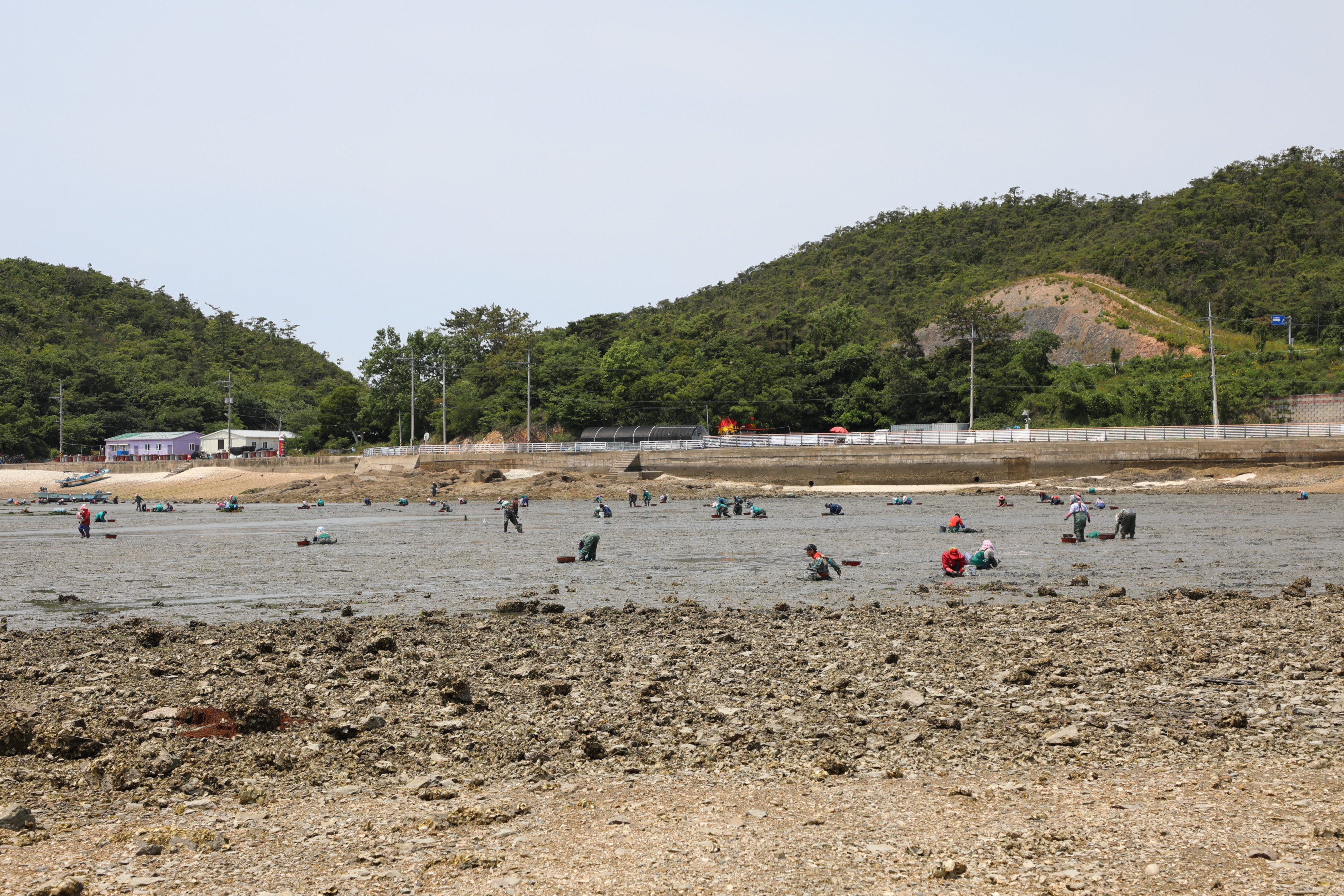 쥐똥섬 오른쪽 해변엔 어촌계에서 바지락조개를 캐기 바쁘다.