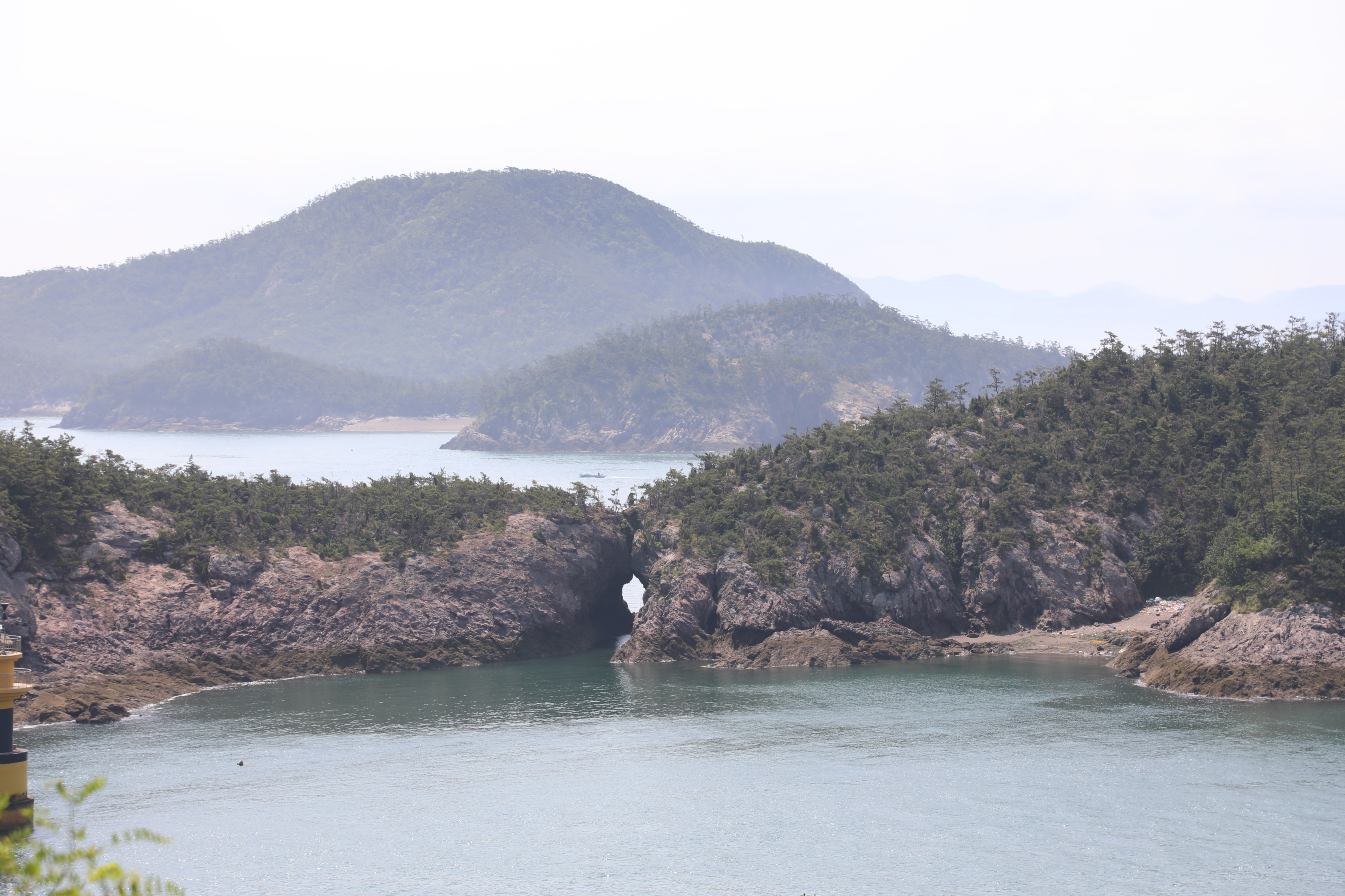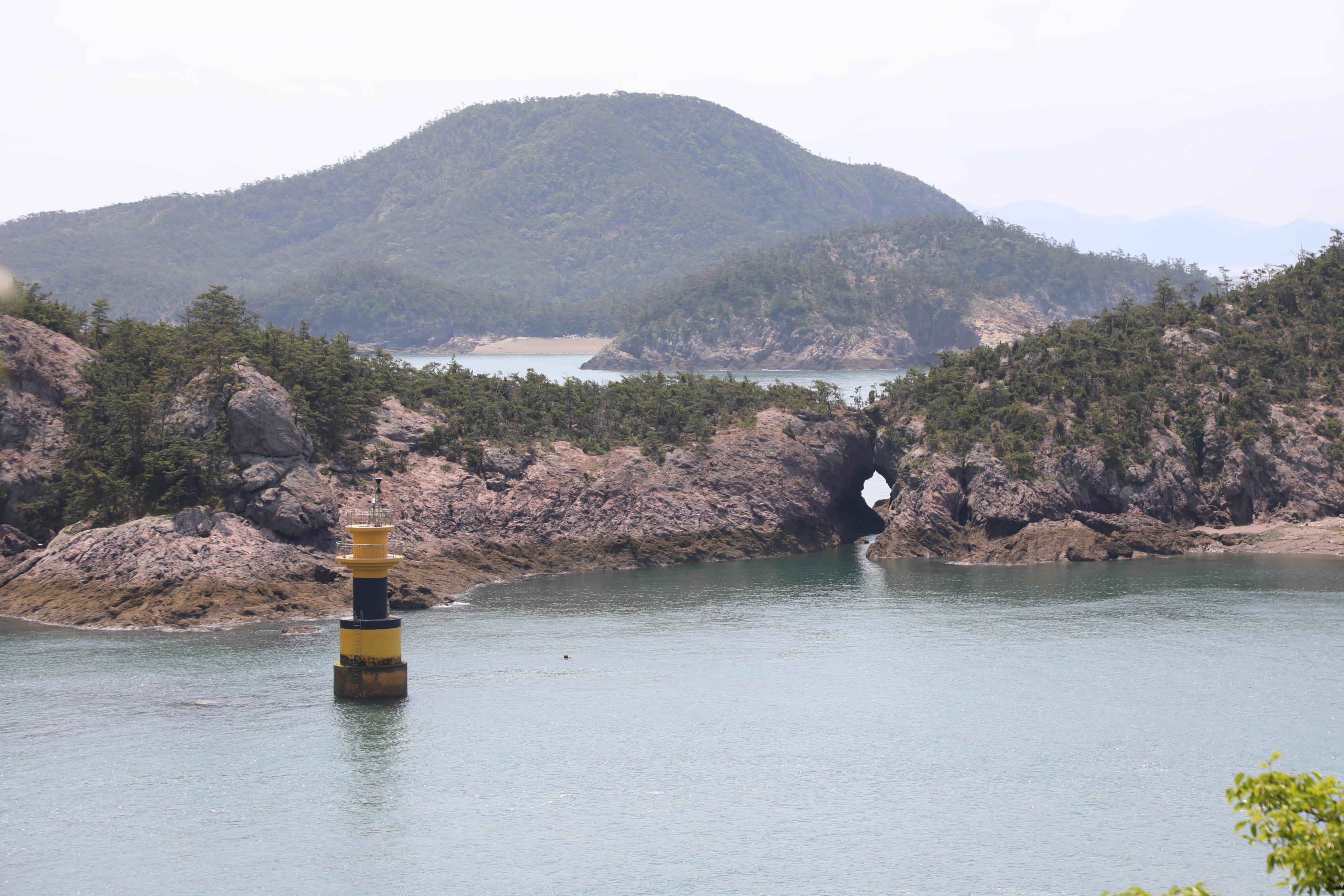 일어나 선유봉 방향을 보니 바다로 뻗친 작은 섬에 동굴이 보여 갈 생각을 했으나 주차가 마땅치 않다.