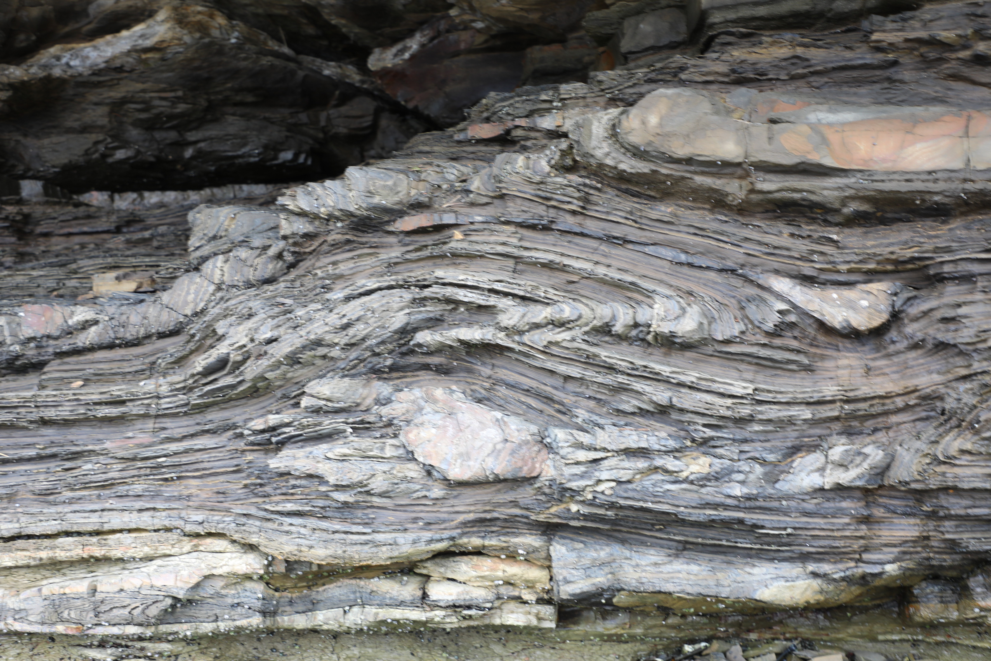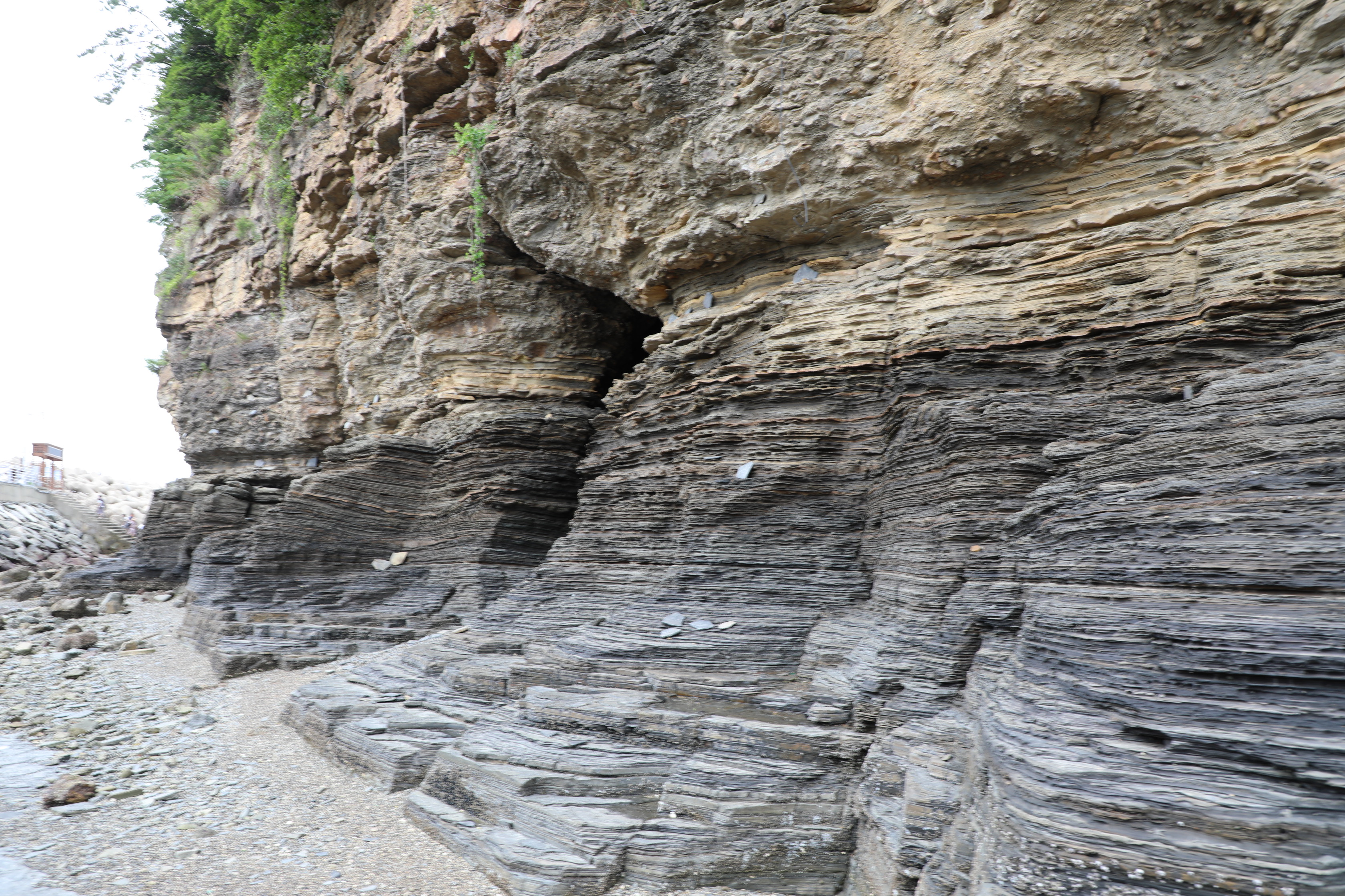 얇은 층이 수없이 쌓인 암반도 제법 볼거리다.