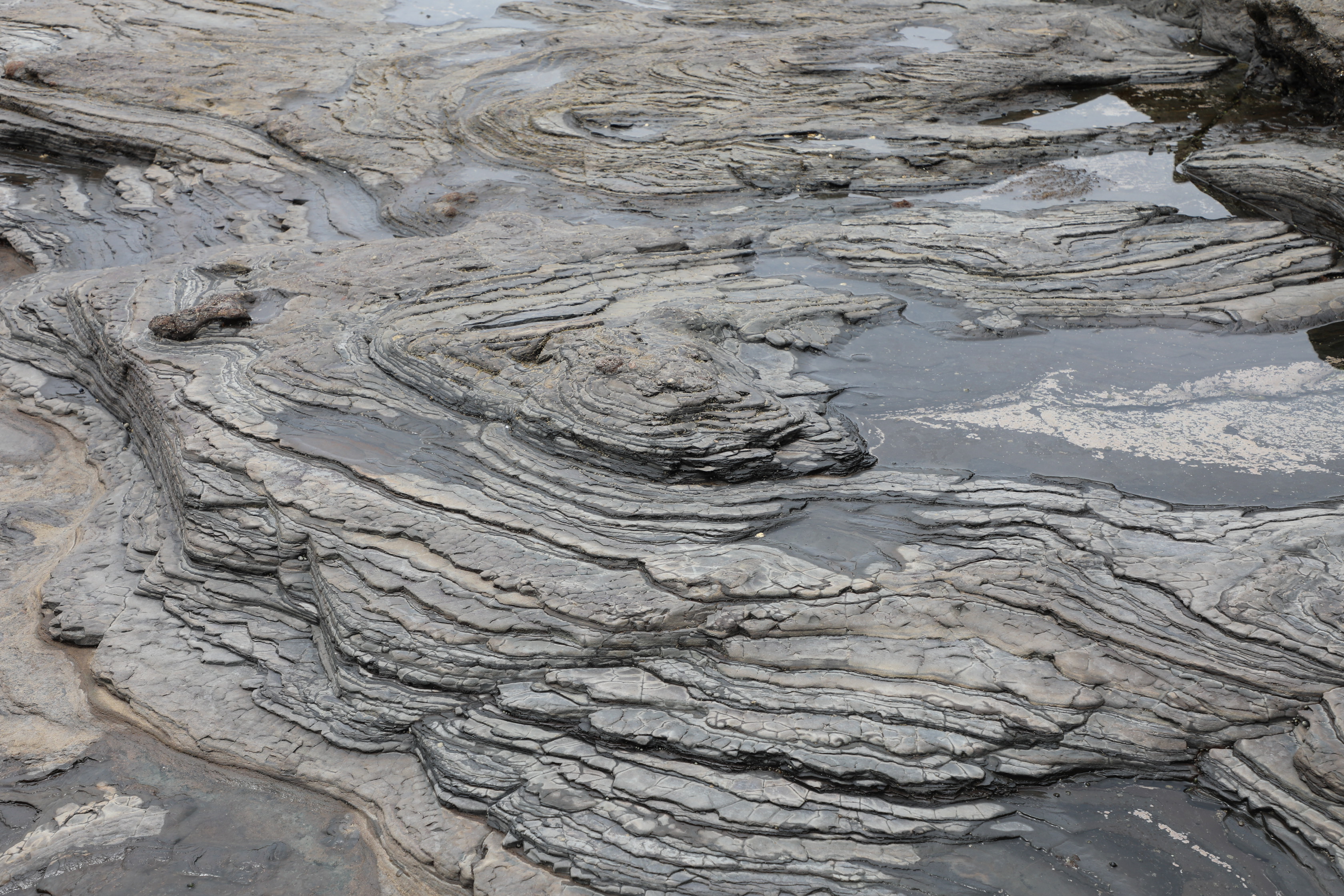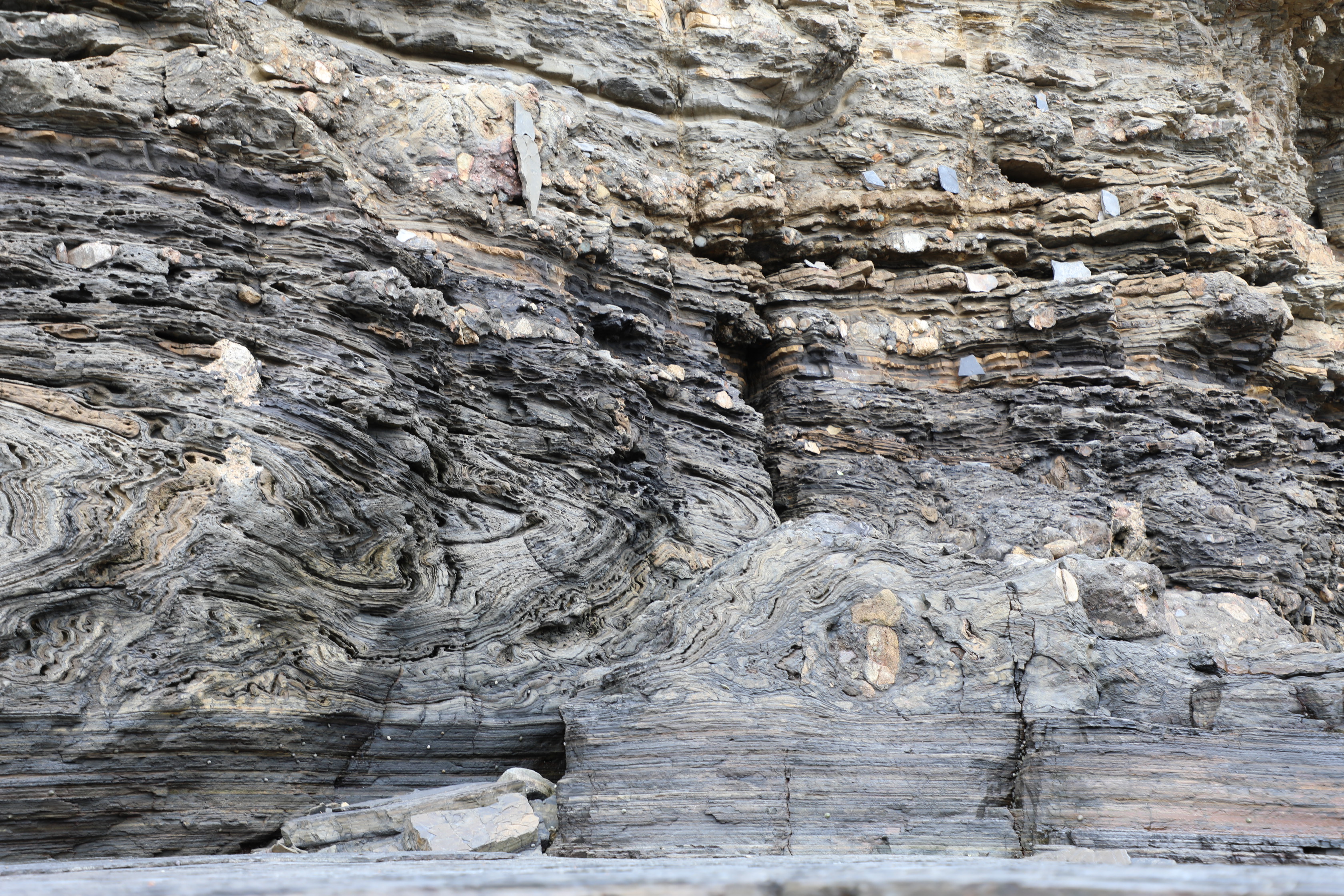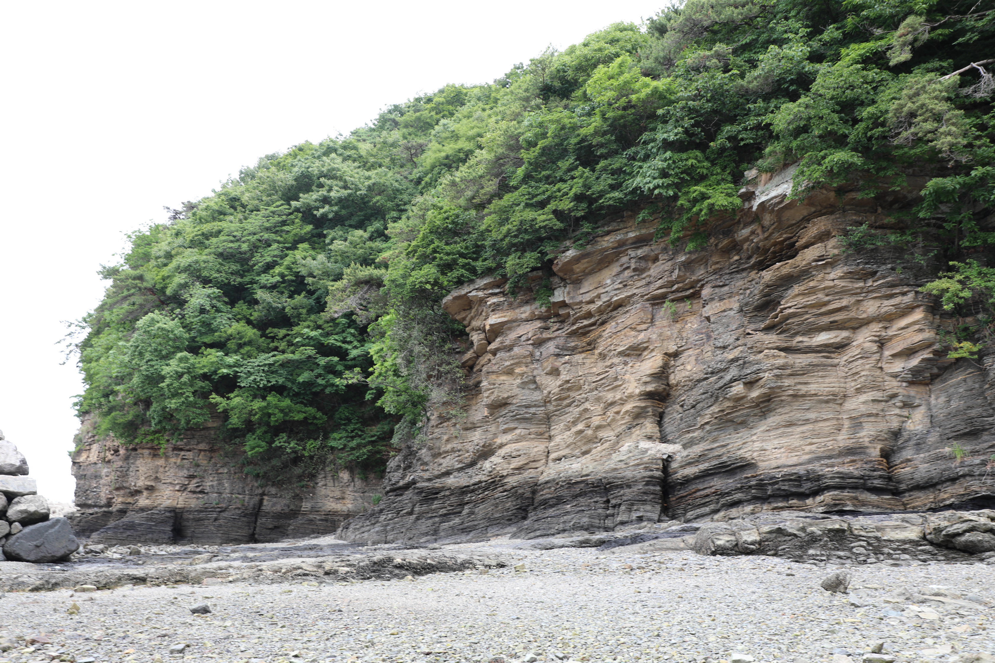 부서진 퇴적암층이 떨어져 나가며 파도에 이리저리 치여 작은 구슬만 한 몽돌을 만들었다.