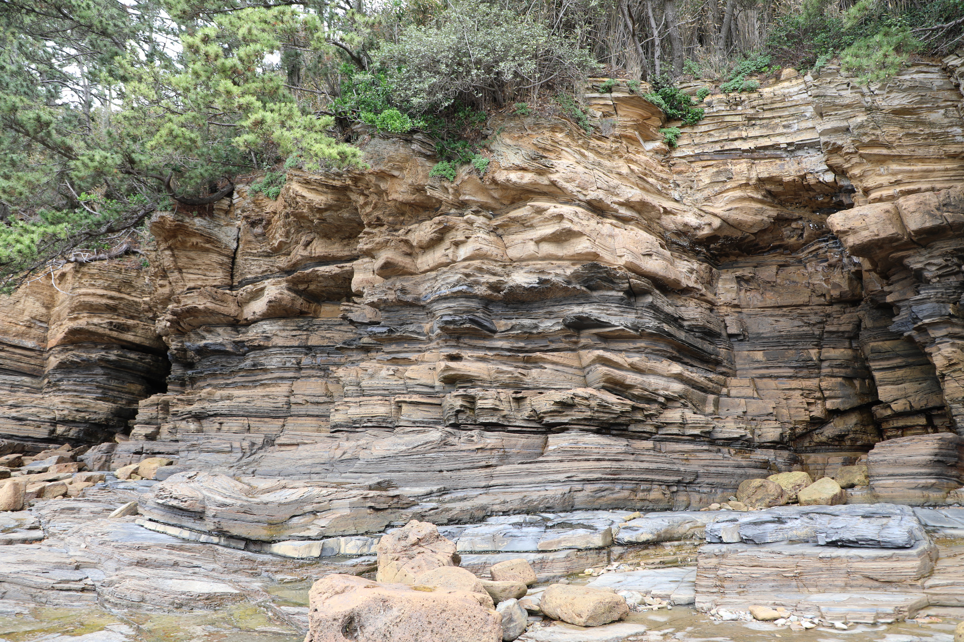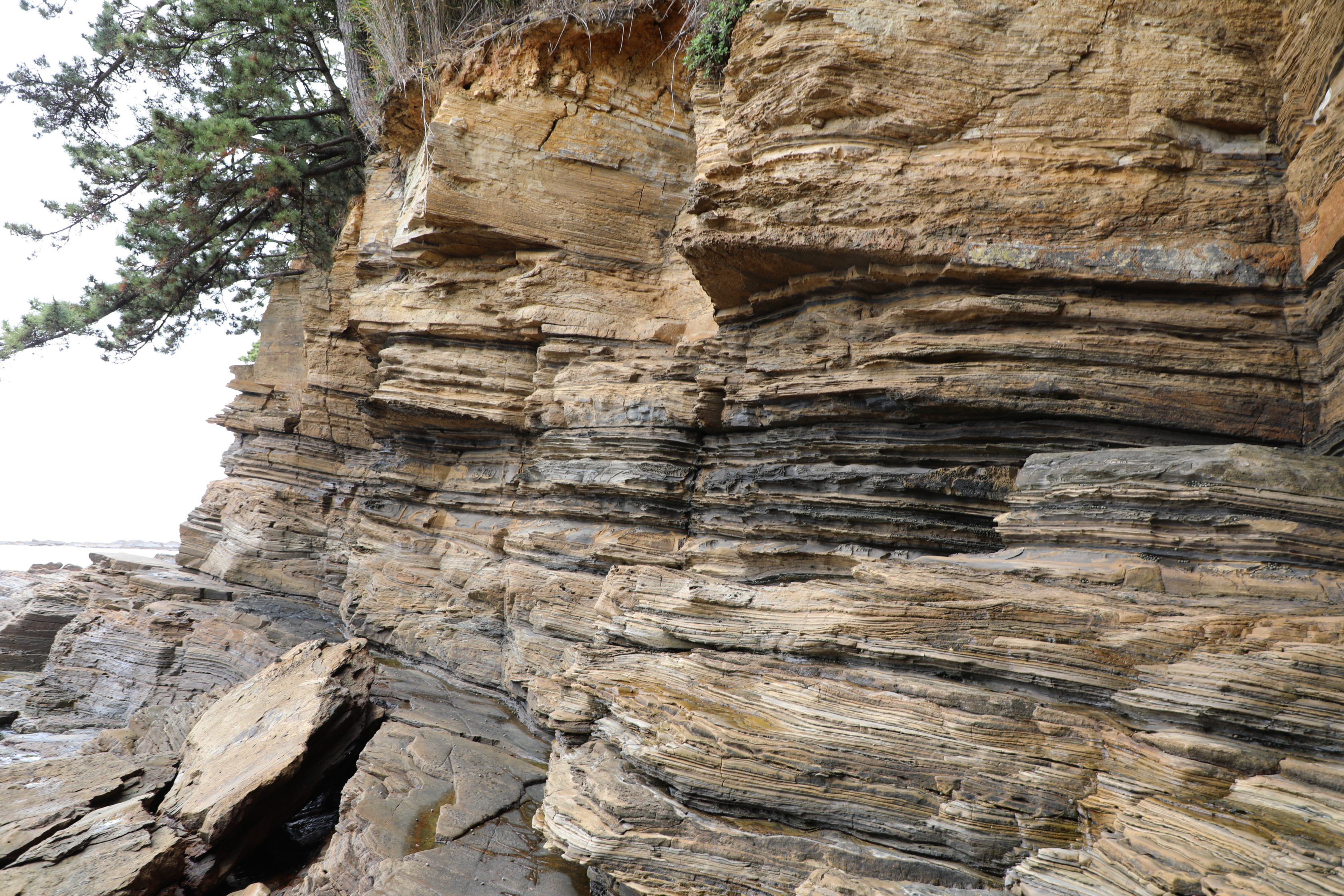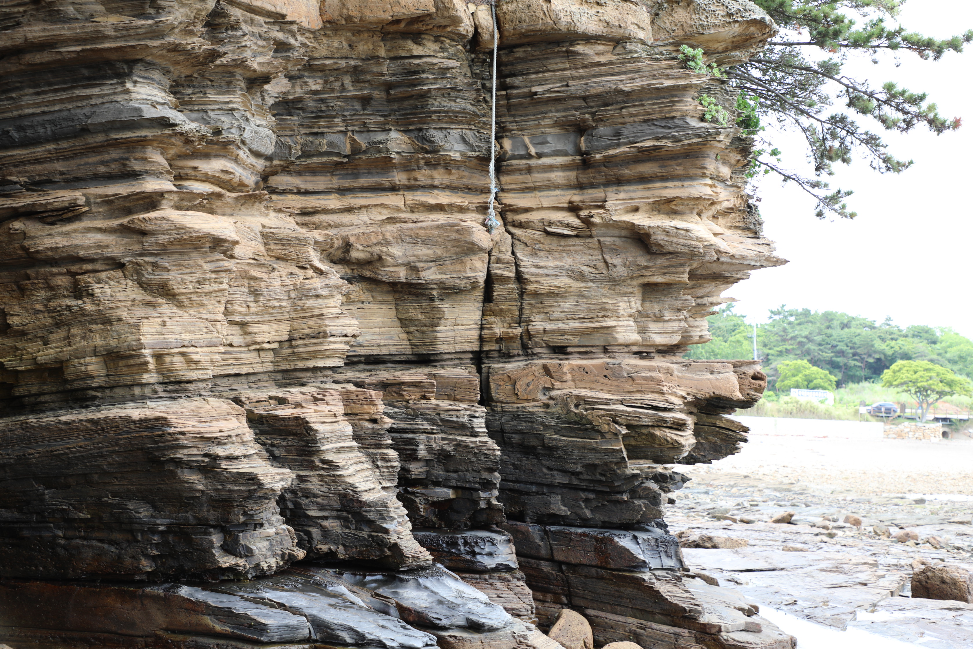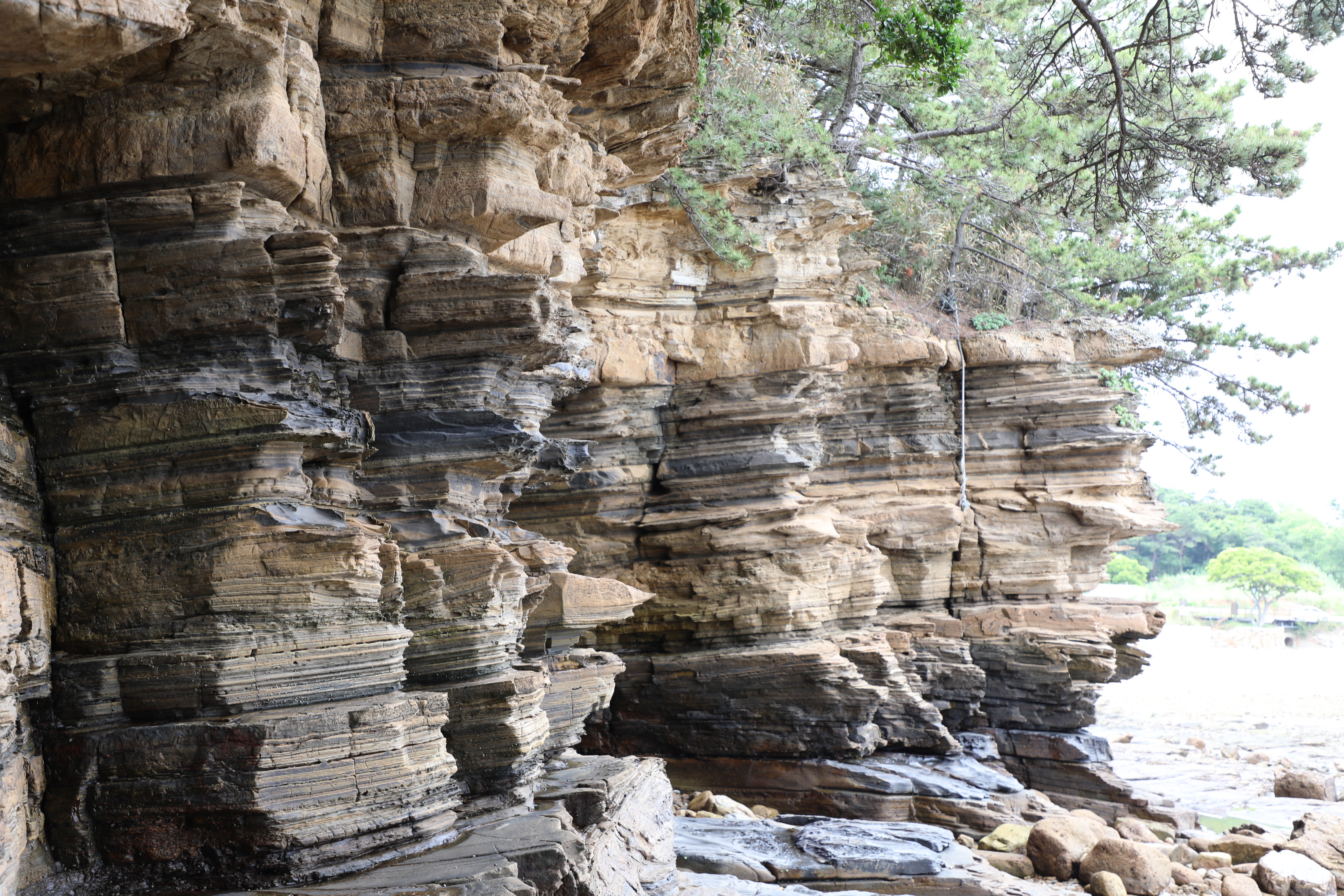 특히 닭이봉 한 자락이 오랜 세월 동안 파도에 깎이면서 형성된 퇴적암층이 절경이다.