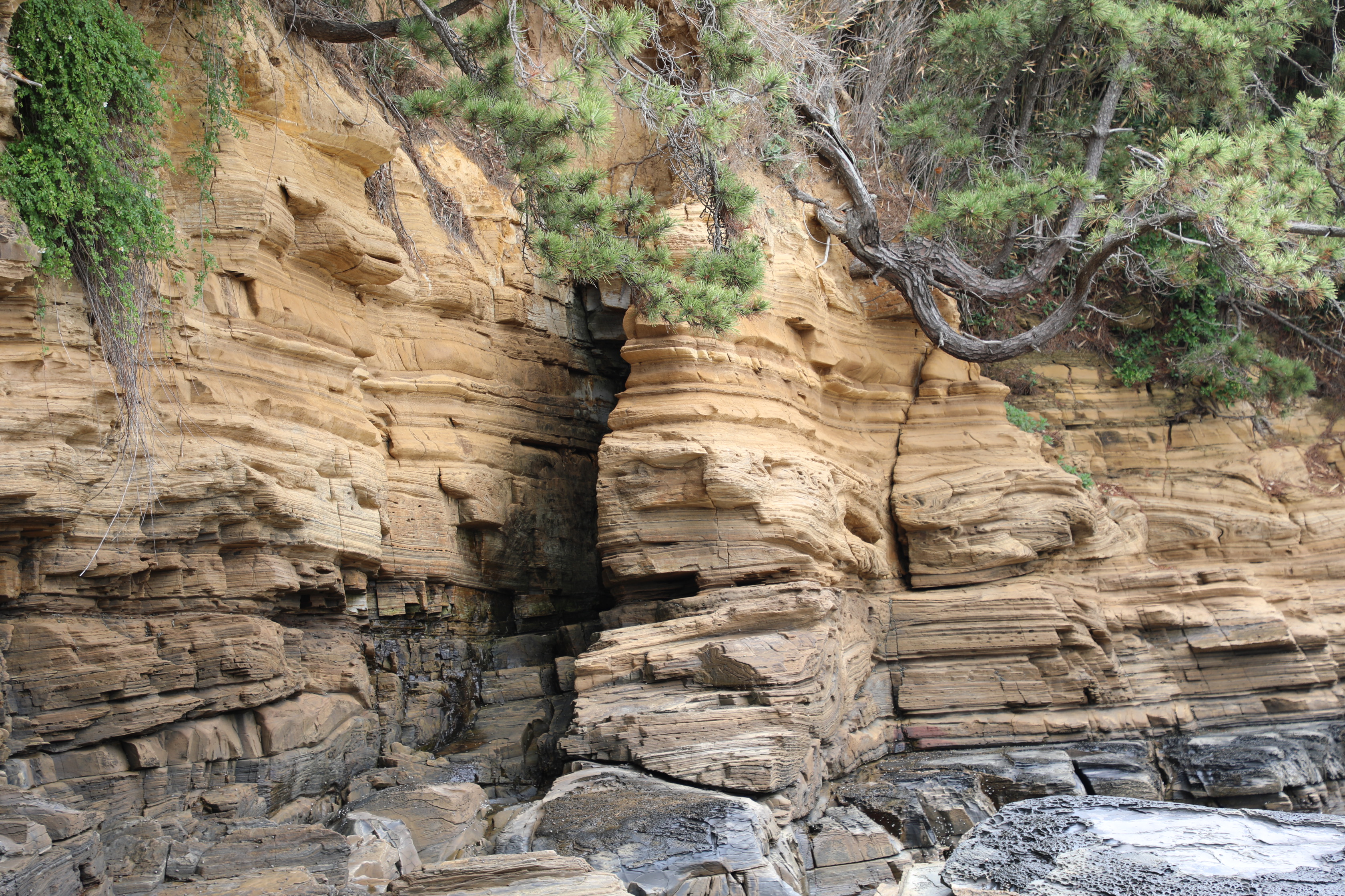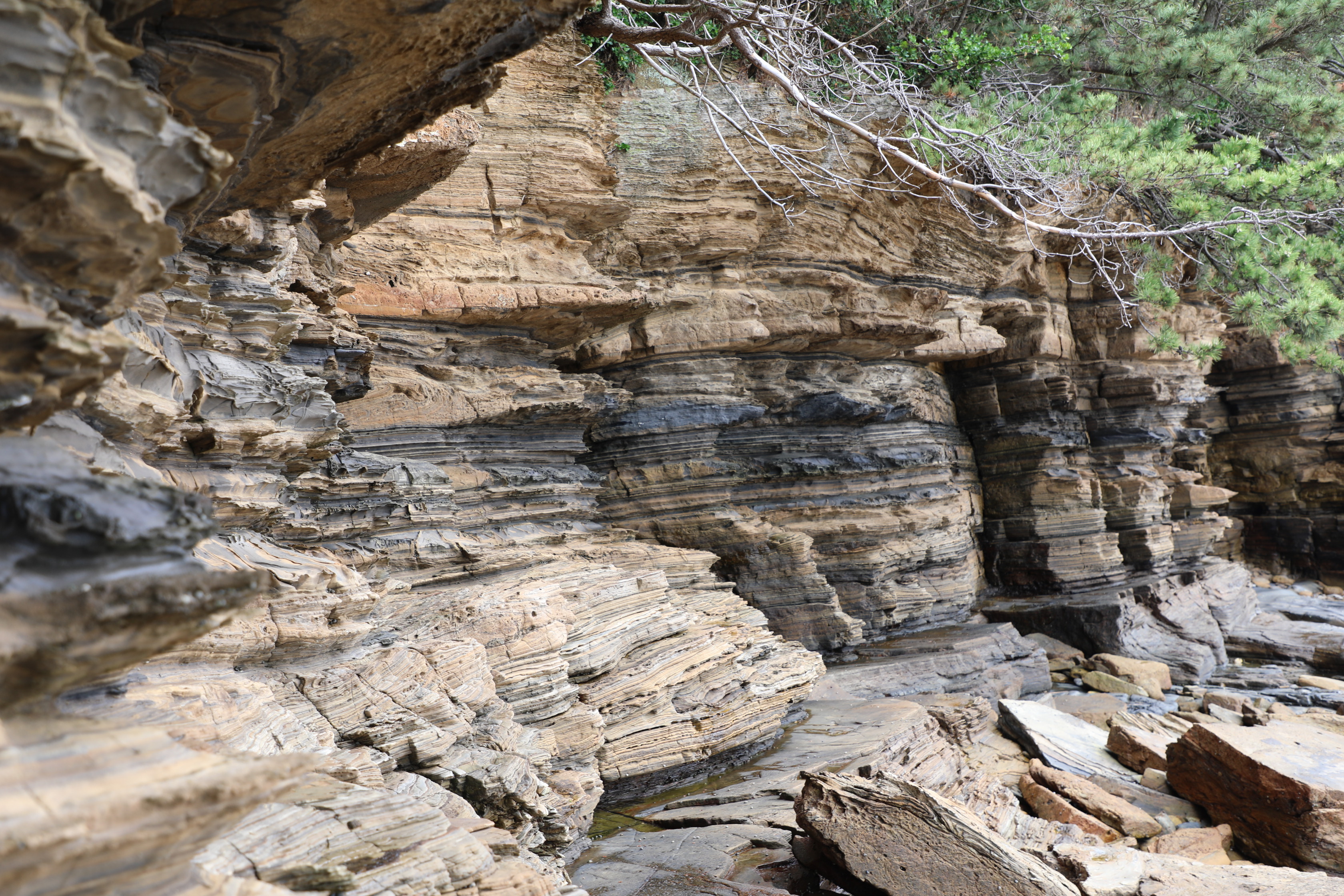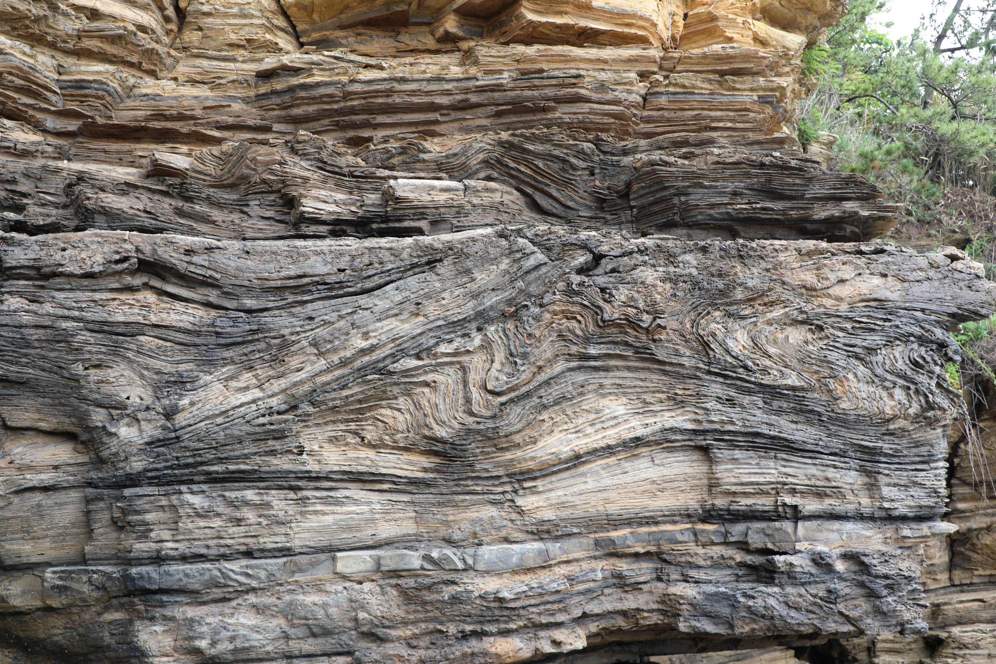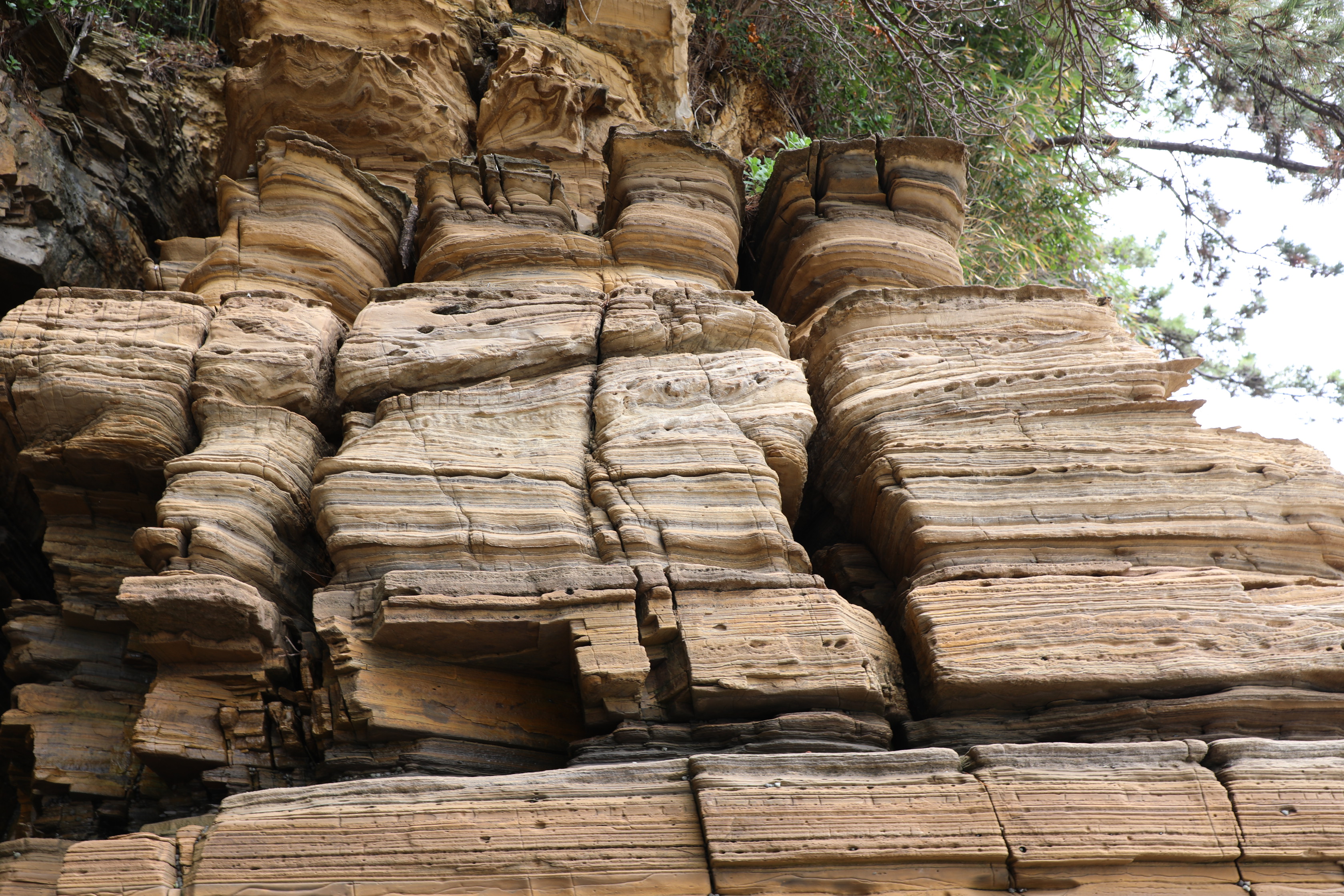 특히 닭이봉 한 자락이 오랜 세월 동안 파도에 깎이면서 형성된 퇴적암층이 절경이다.
