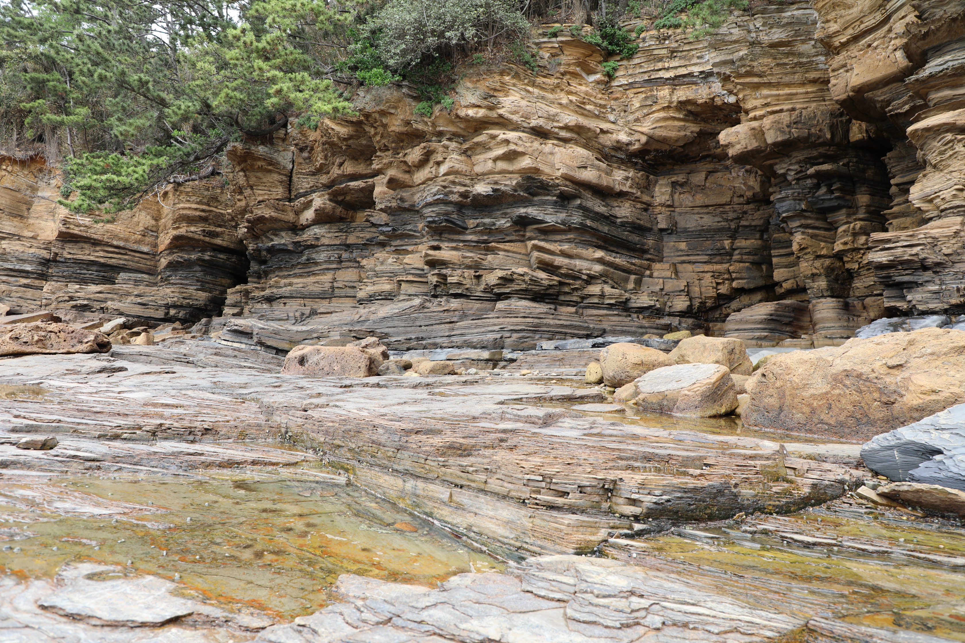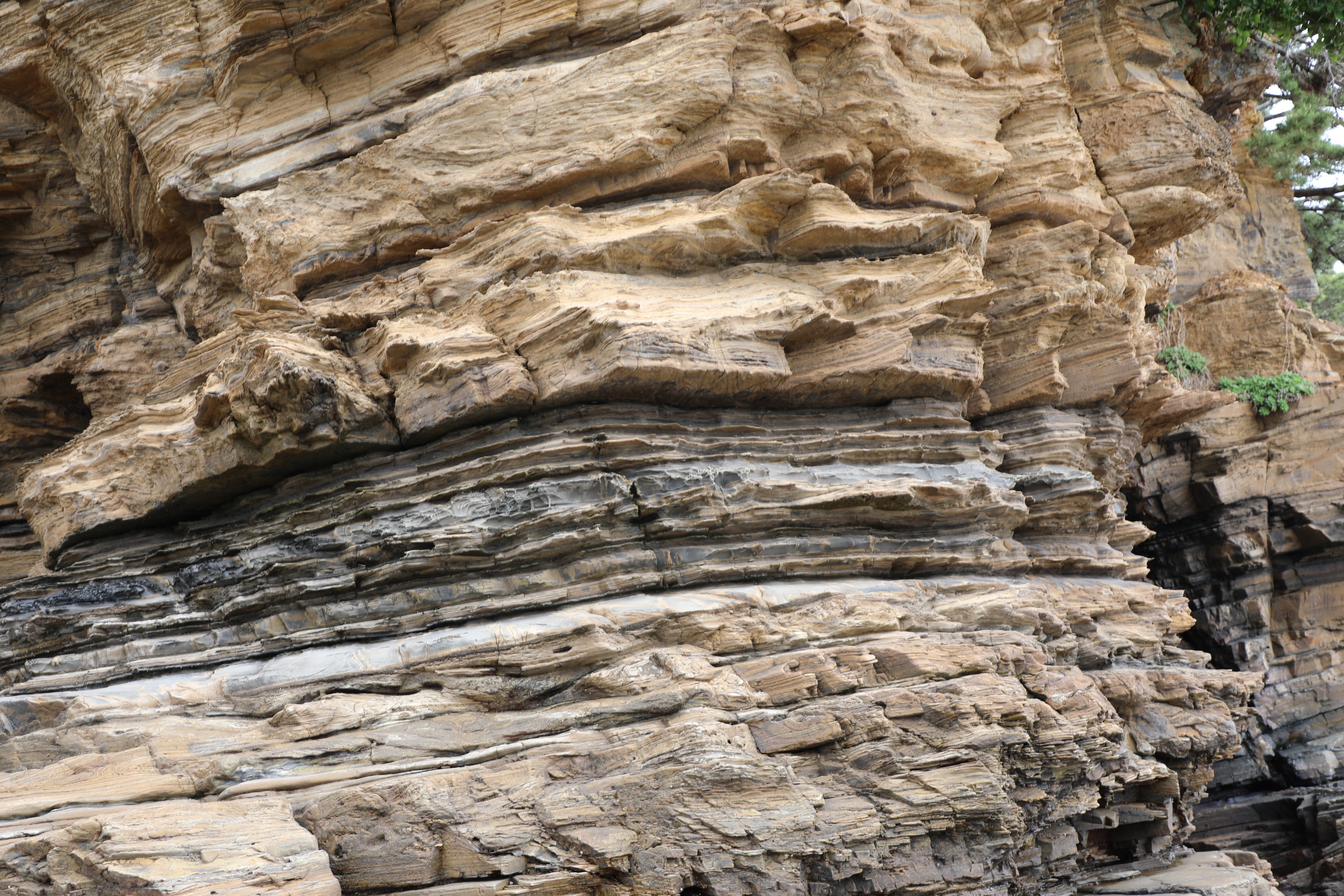 물이 빠지는 썰물 때가 되면 채석강 바위 아래도 내려가 퇴적암을 잘 볼 수 있다.