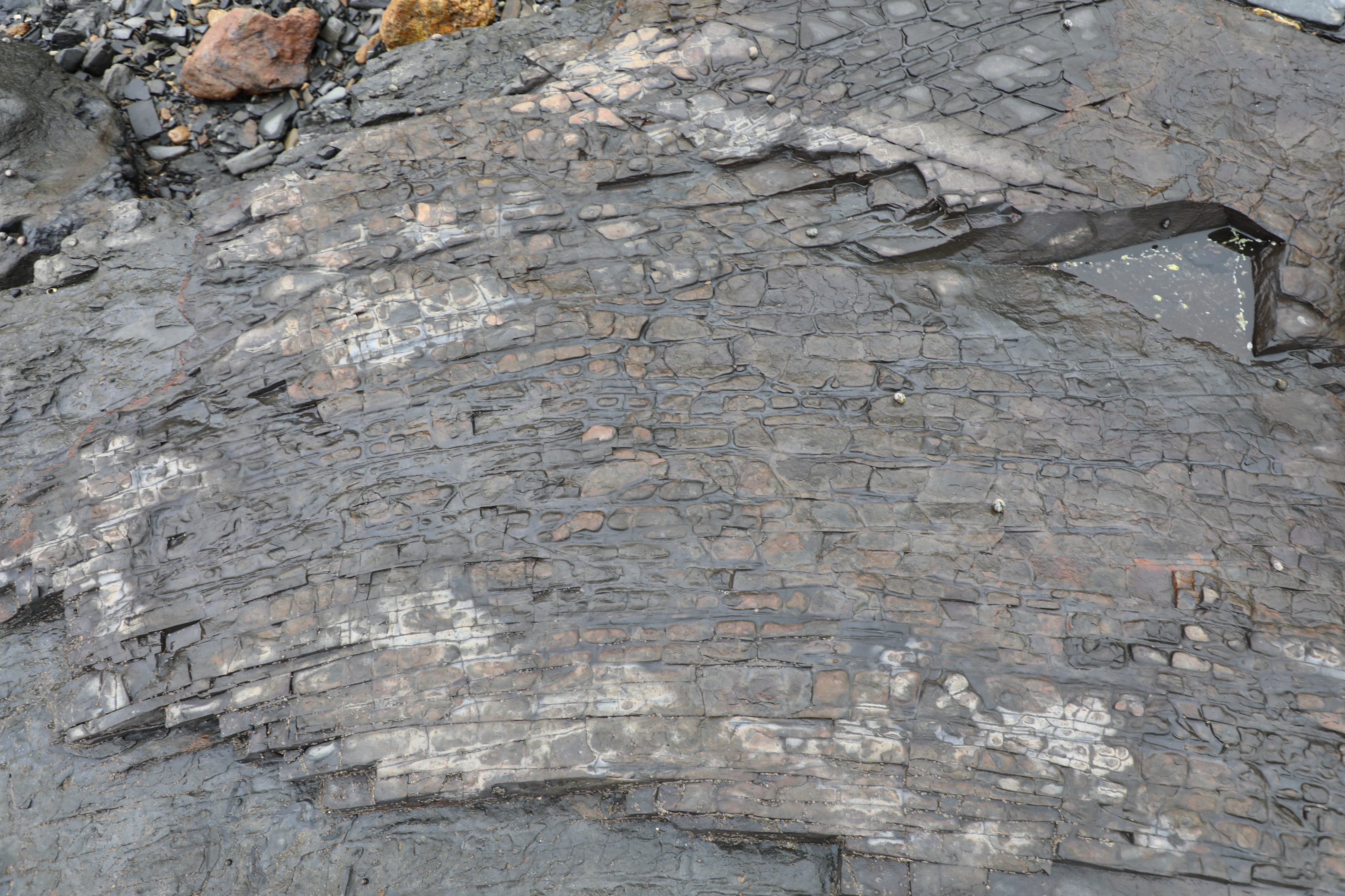 이 암반은 자잘하게 금이 가는 건열 형태다.