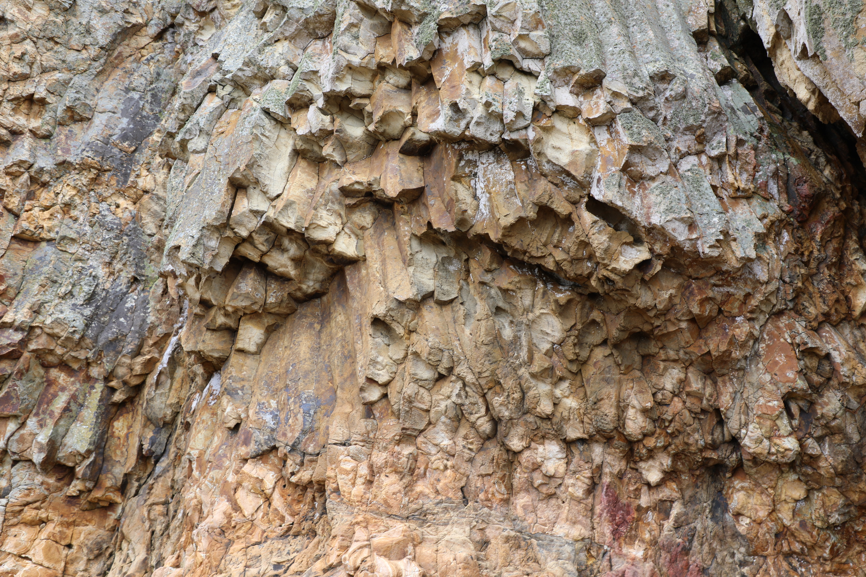 주렁주렁 매달린 그러면서 보기 드문 황갈색 주상절리다.