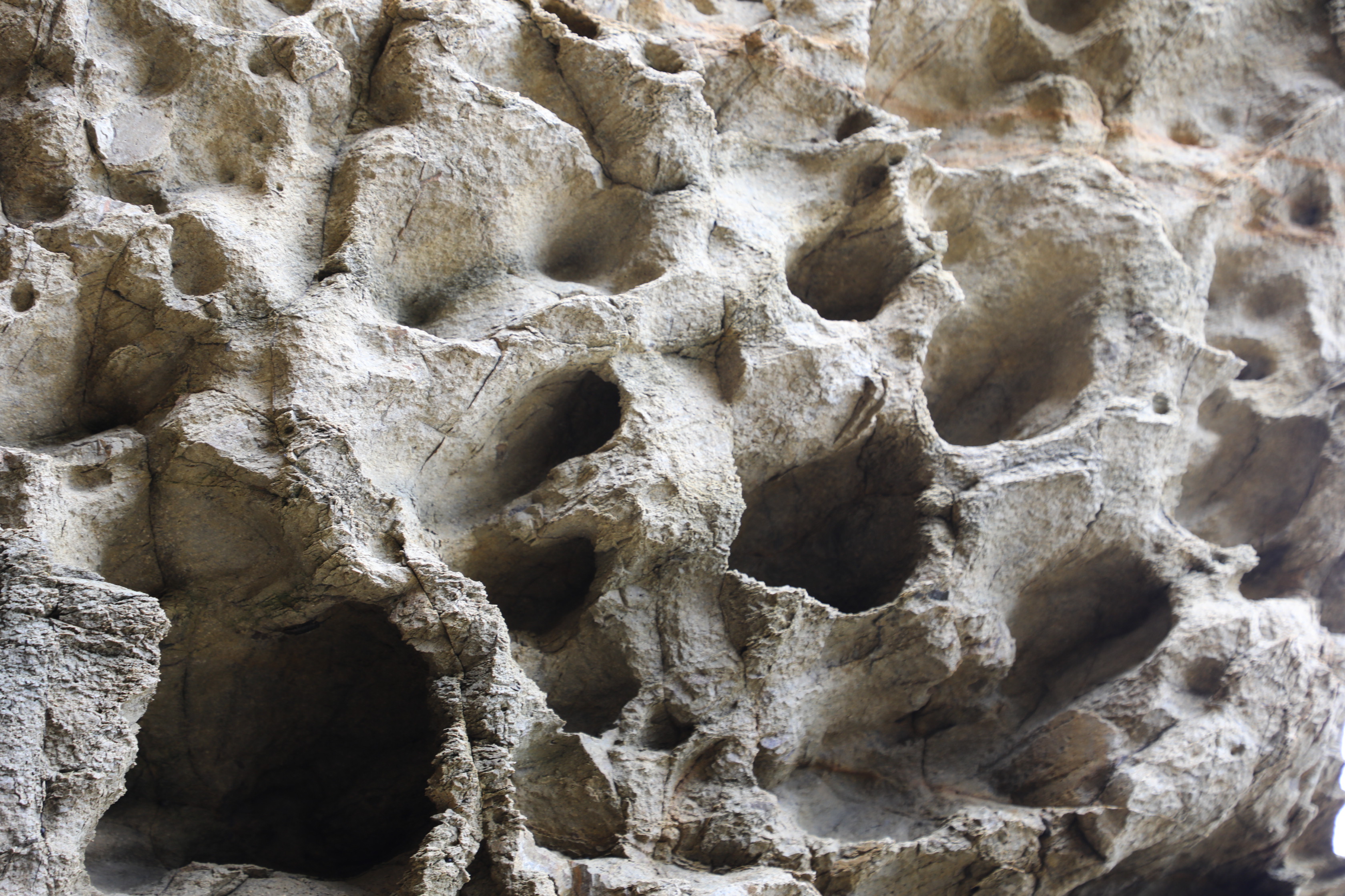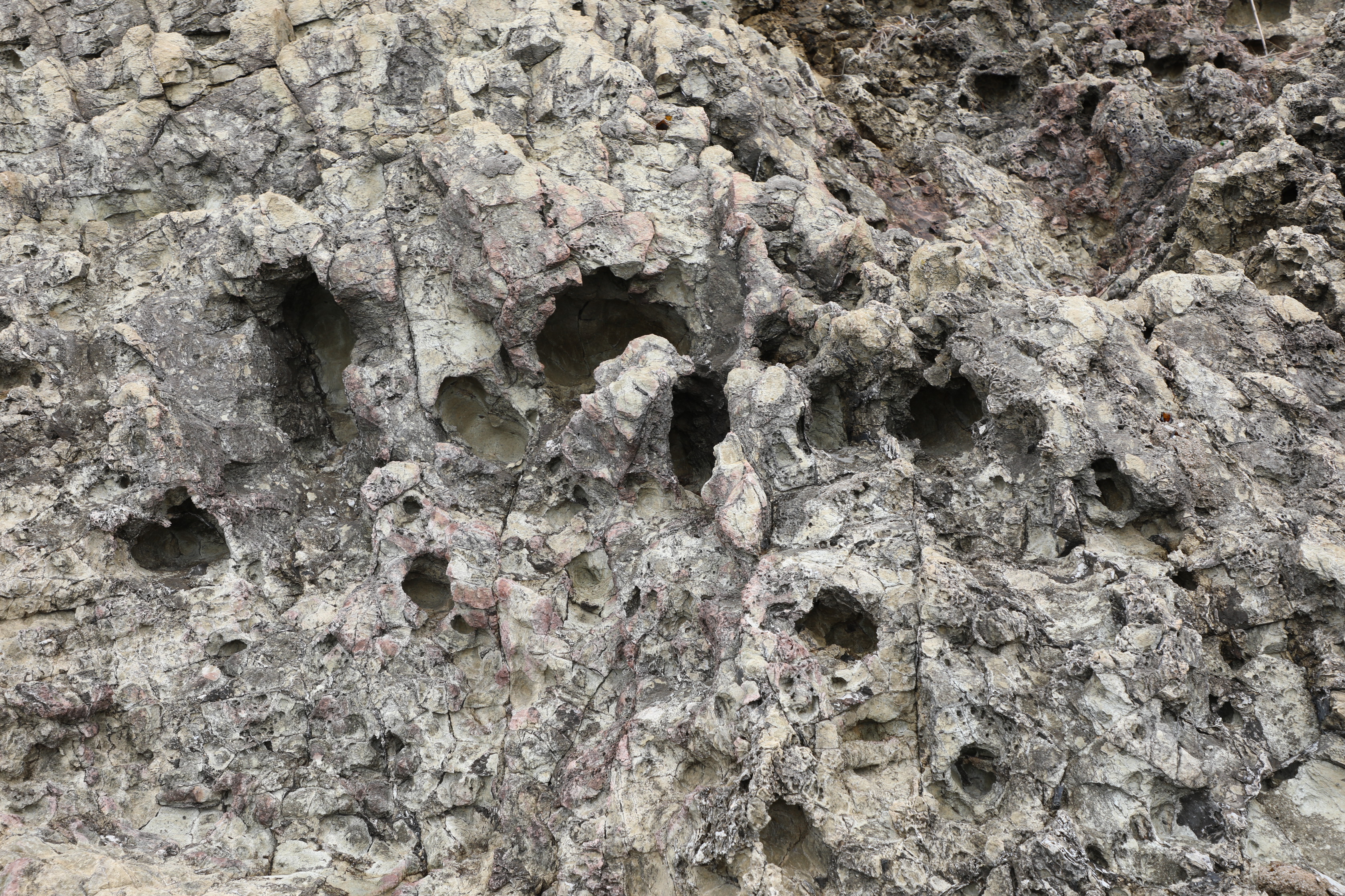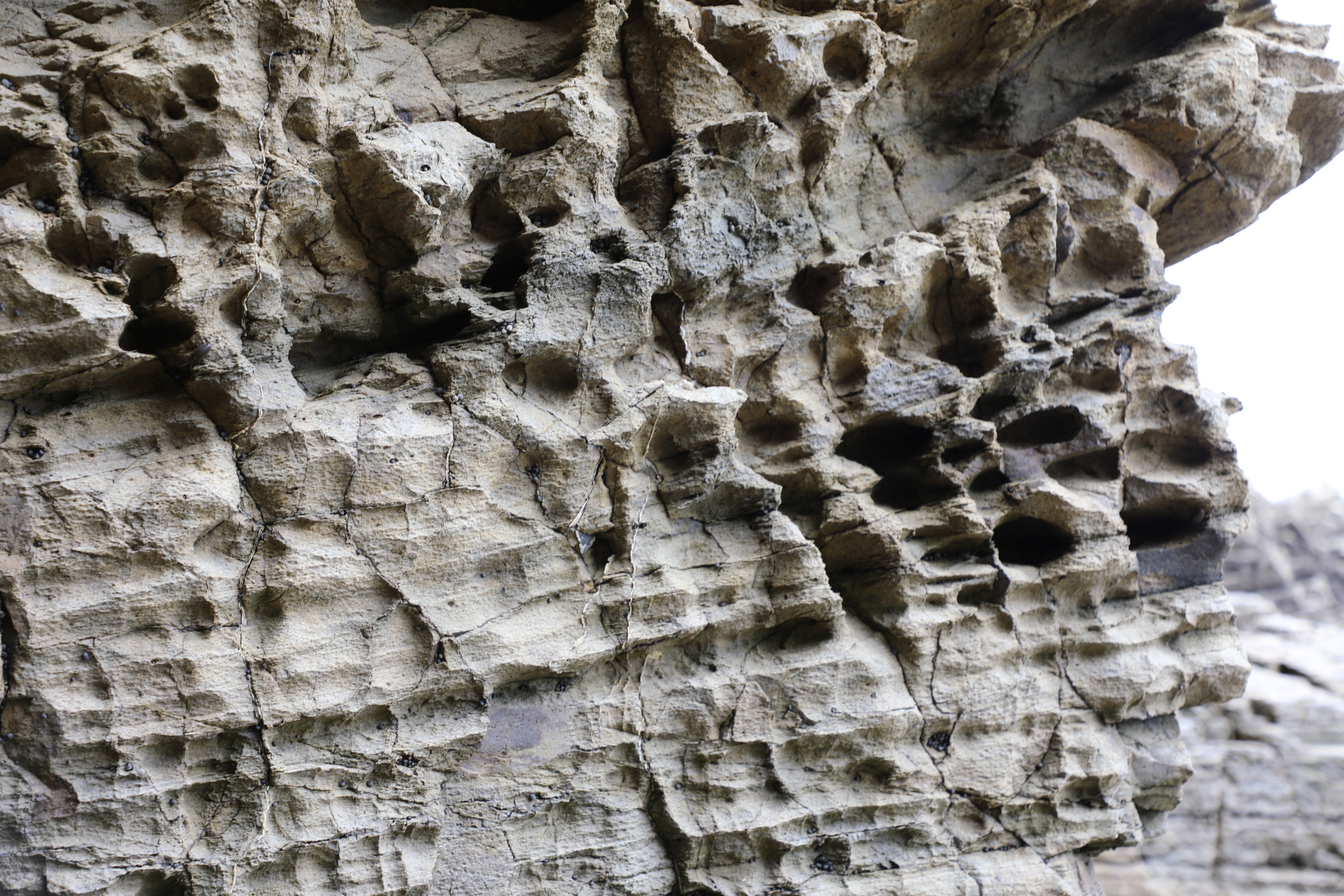 절벽에 달린 주상절리가 벌집을 보는 듯 벌집구조를 가졌다.