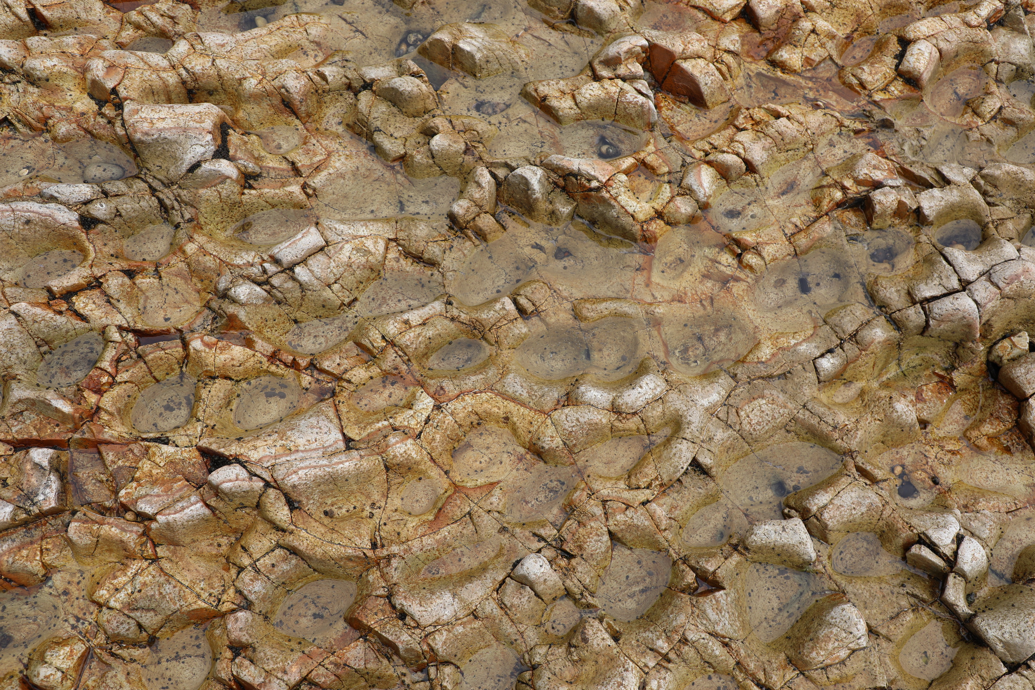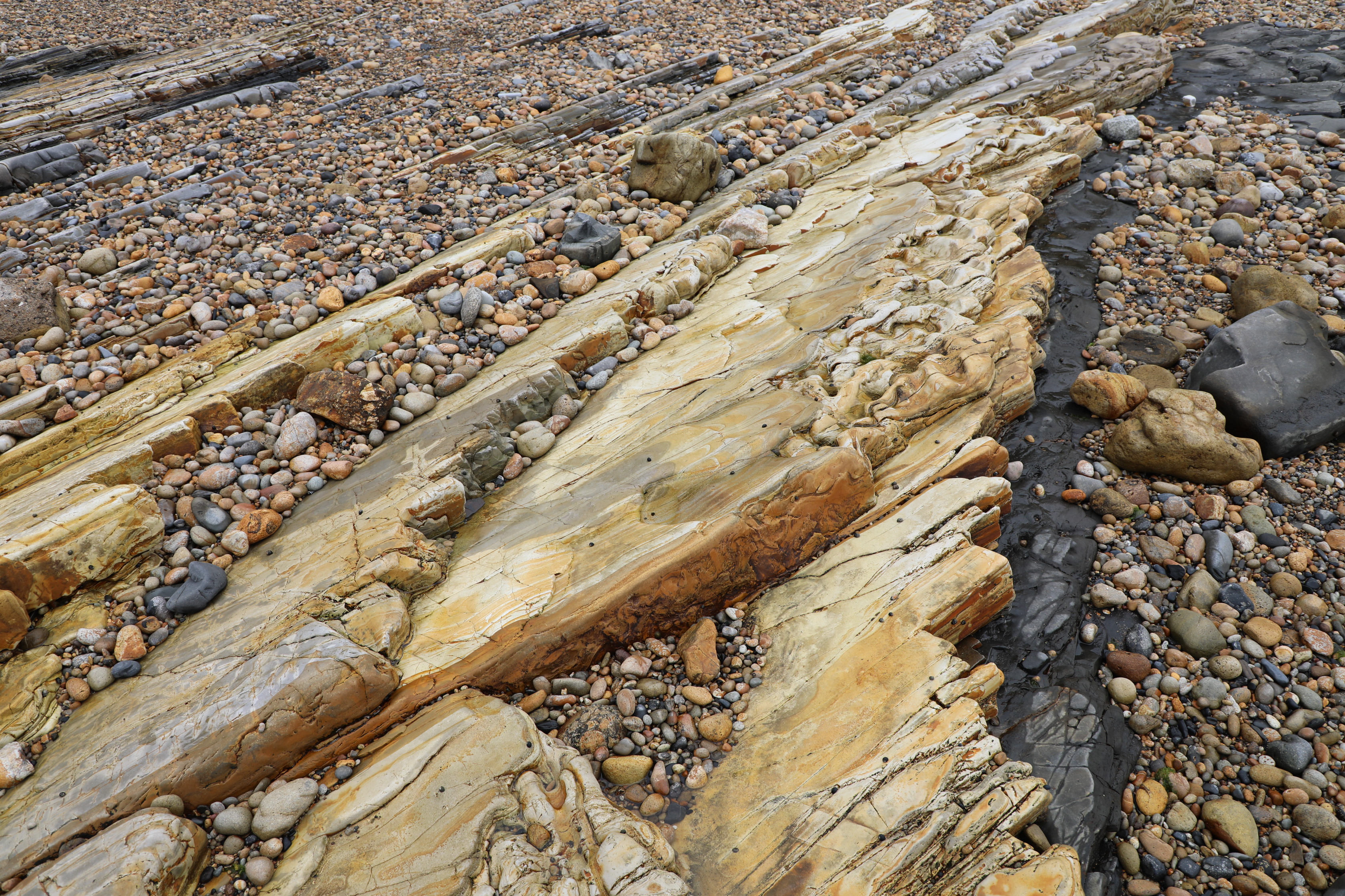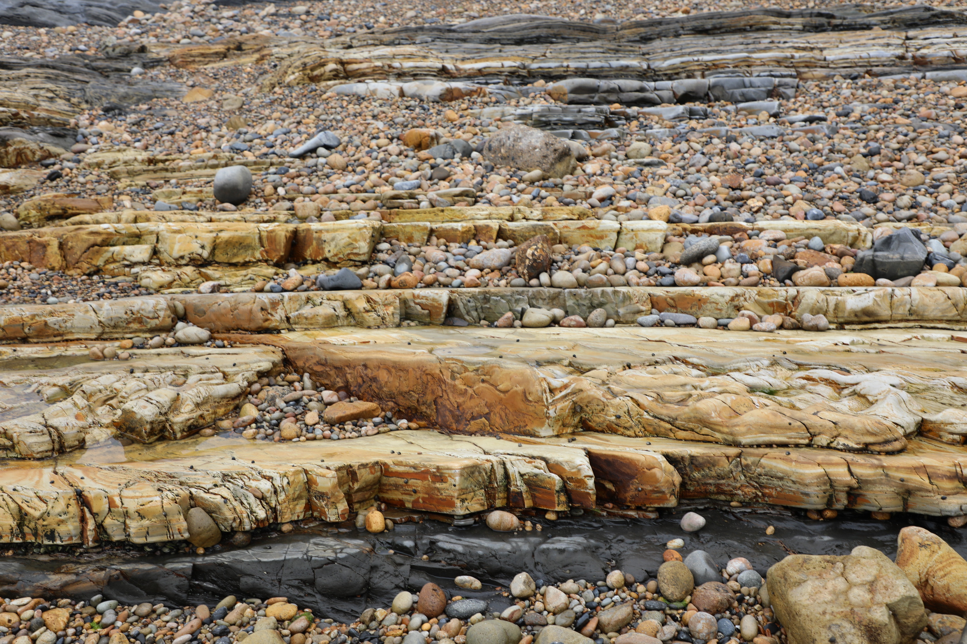 암반과 몽돌과 몽돌이 되어가는 돌의 풍경이 보인다.