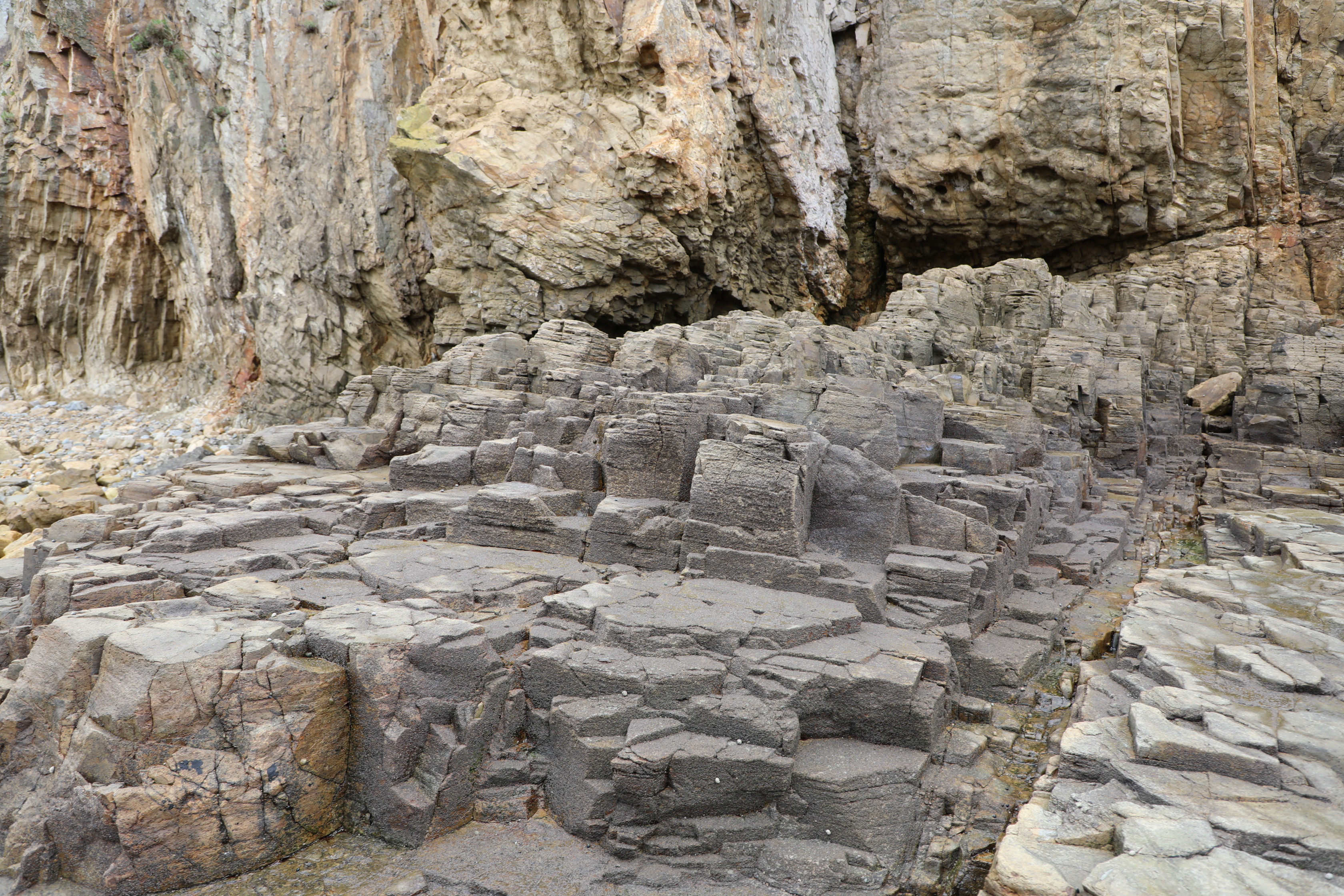 주상절리는 보통 육각형 모양이 가장 이상적이나 이곳은 대부분 사각형 모양이다.