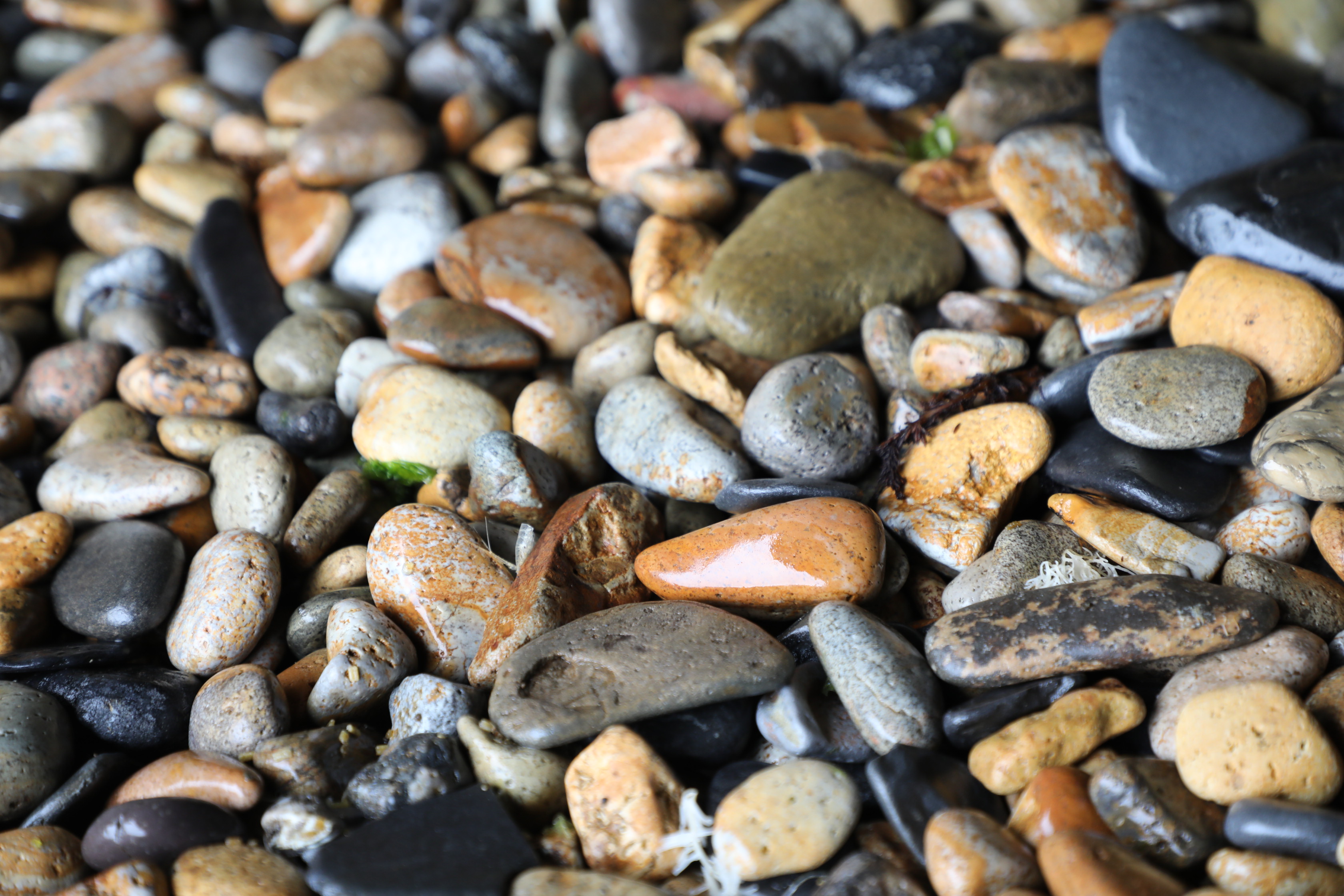 길쭉하거나 동글동글하는 등 다양한 모양의 몽돌이 작아서 더 귀엽다.