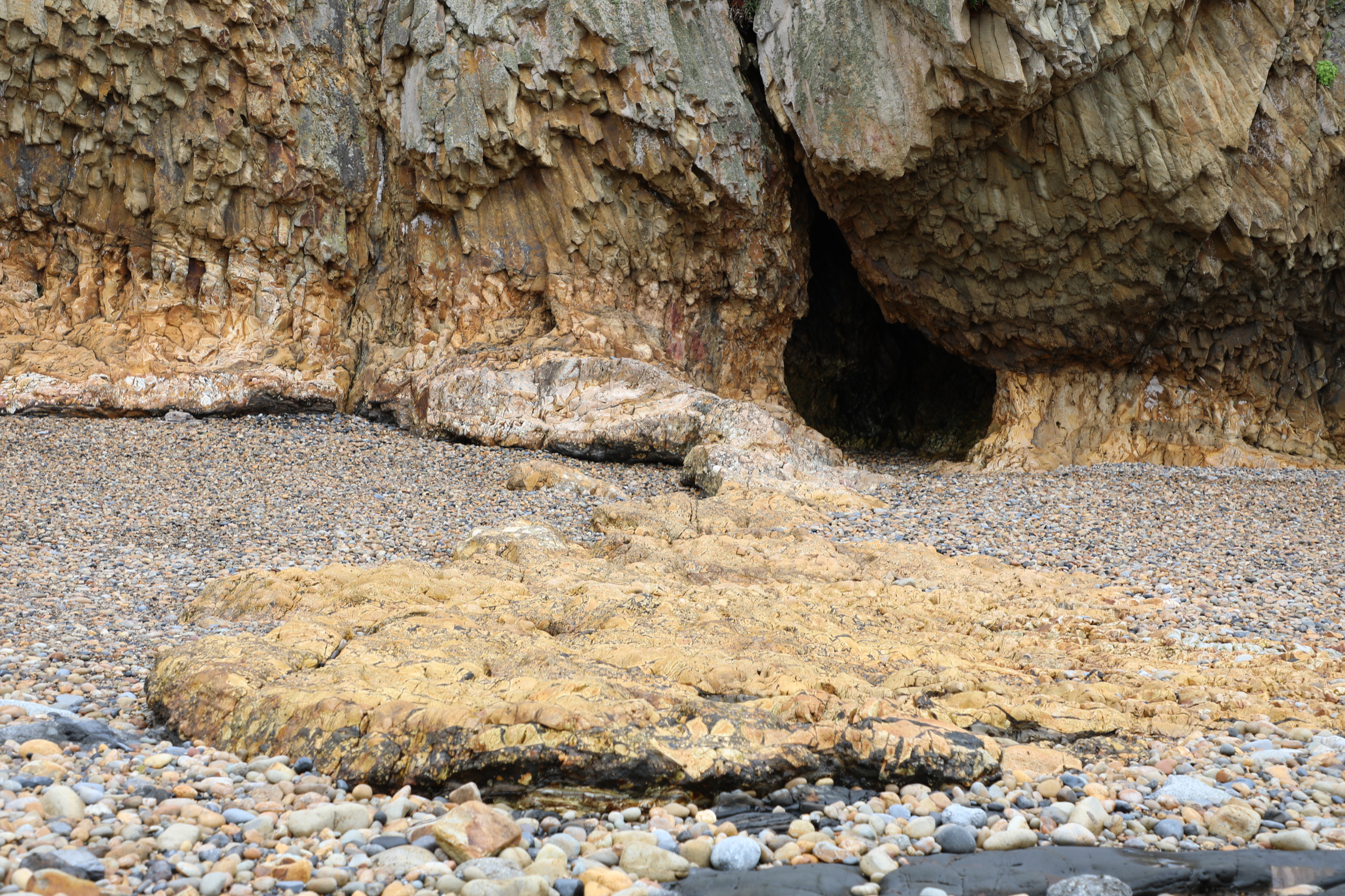 해식동굴 안의 몽돌은 훨씬 크지만 바닷물과 만날 기회가 적어 더 완전한 형태의 몽돌은 아니다.