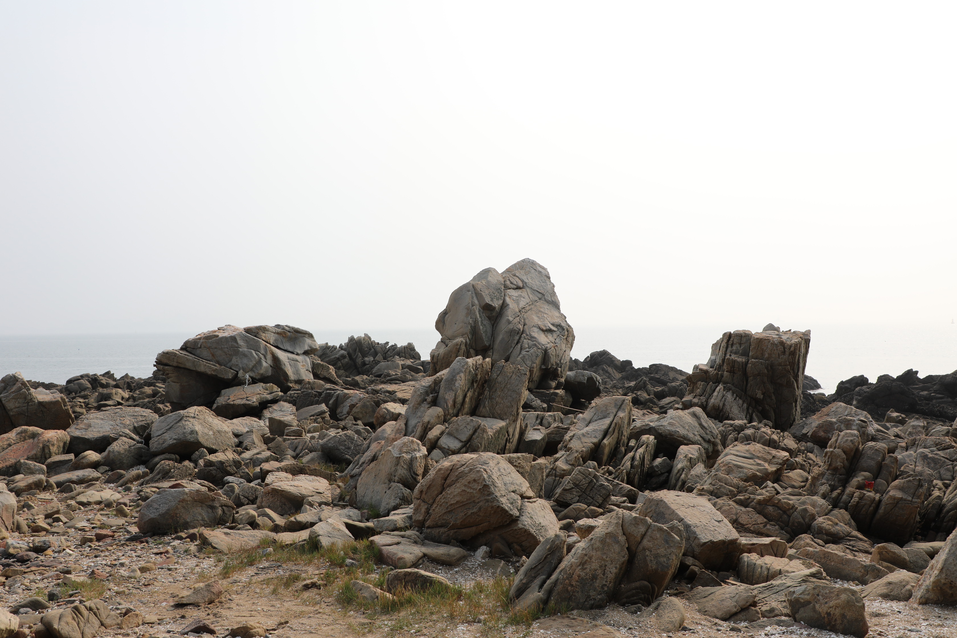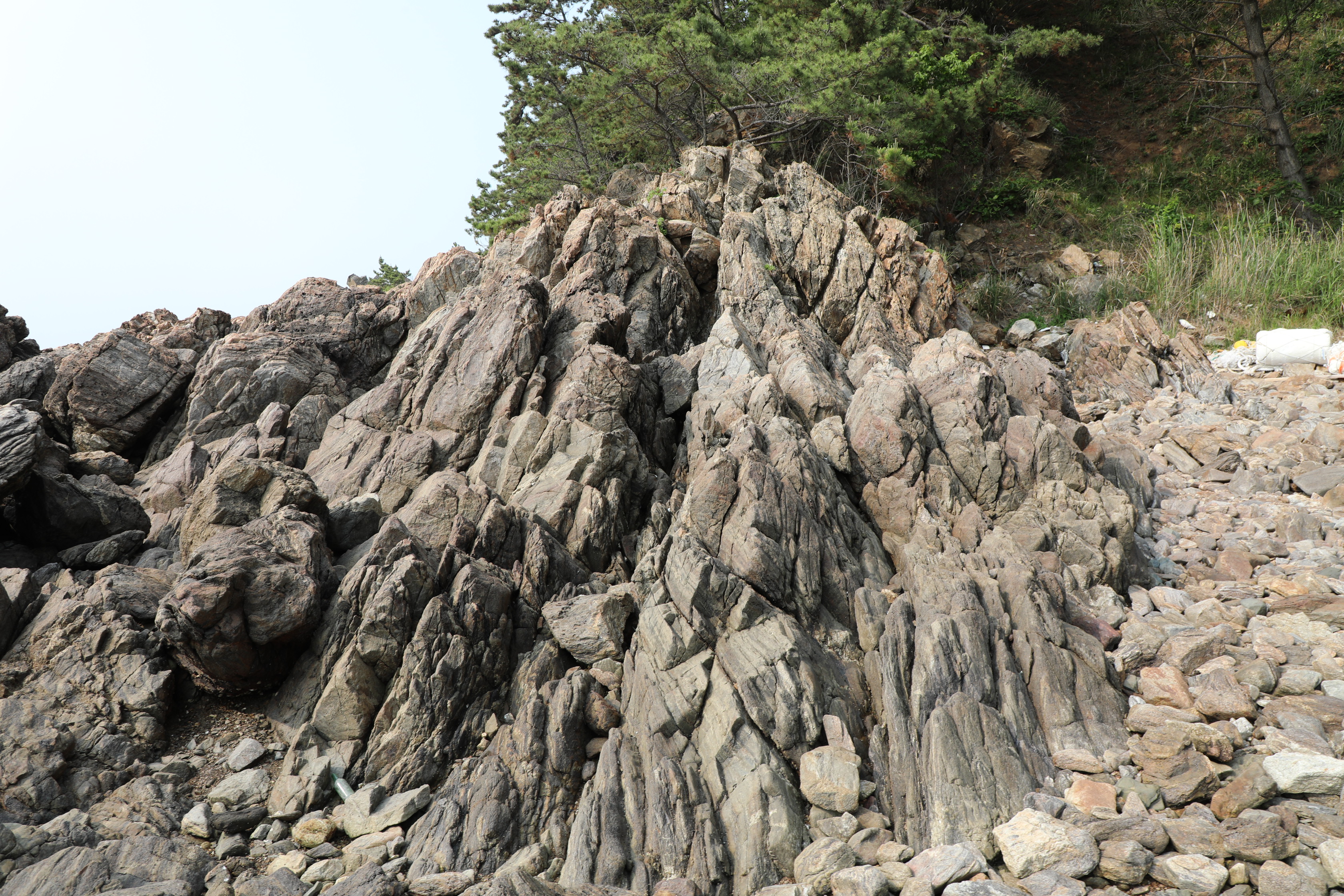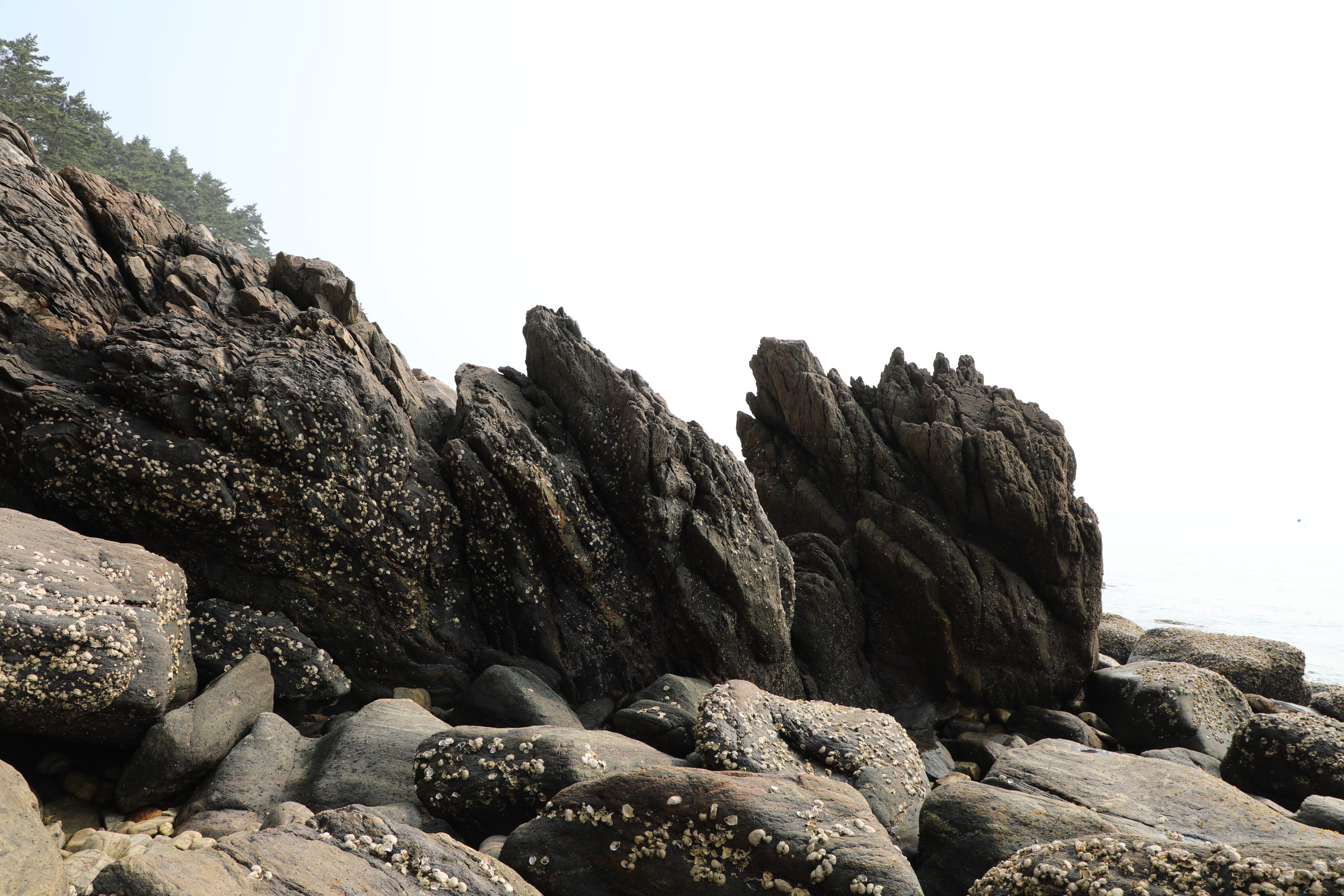 포클레인으로 하나씩 눕힌 듯 질서 정연하게 촘촘히 이 해안에 누운 바위는 누구의 작품일까?