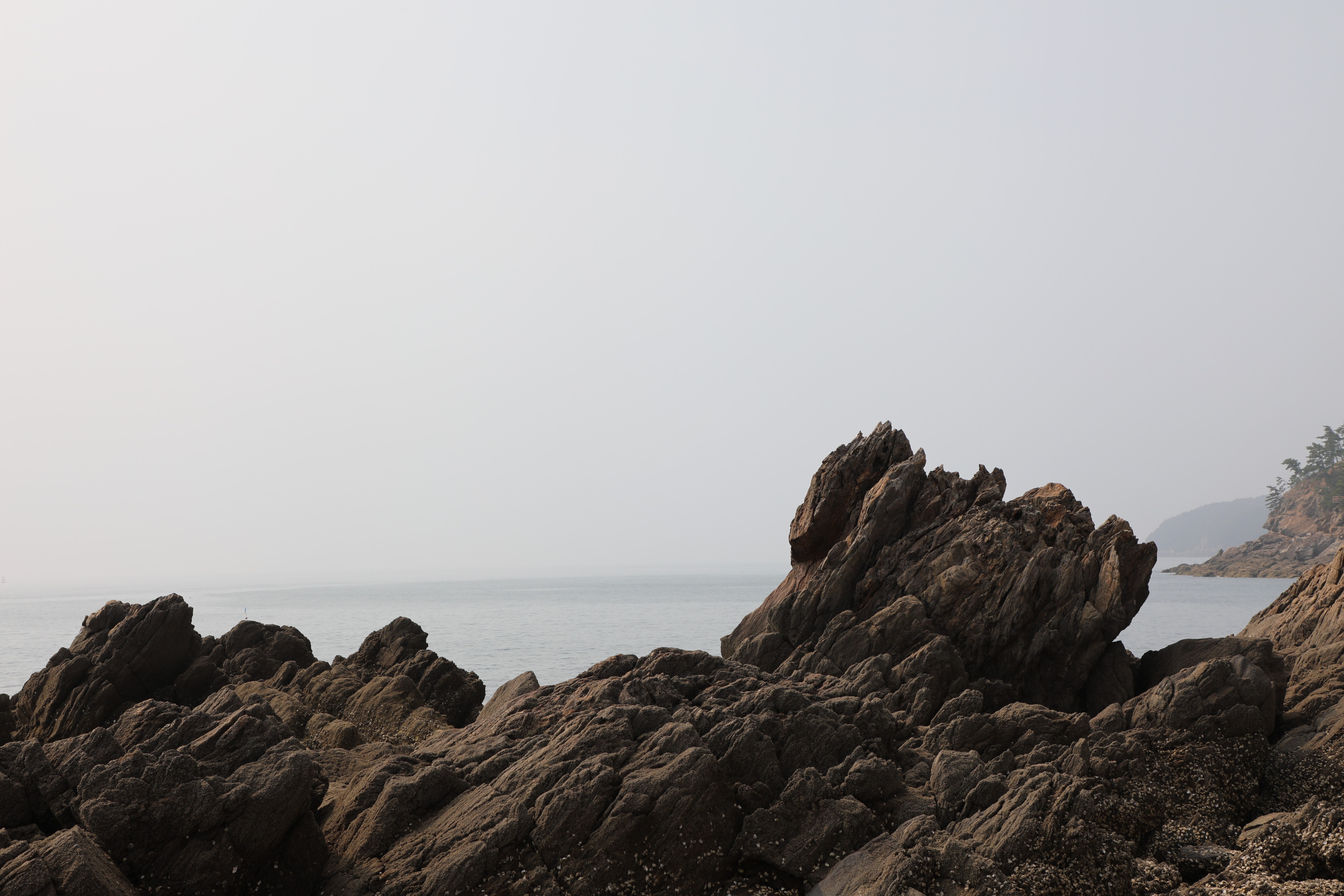 해안에 널브러진 바위는 육지나 바다 어느 편도 아니다.