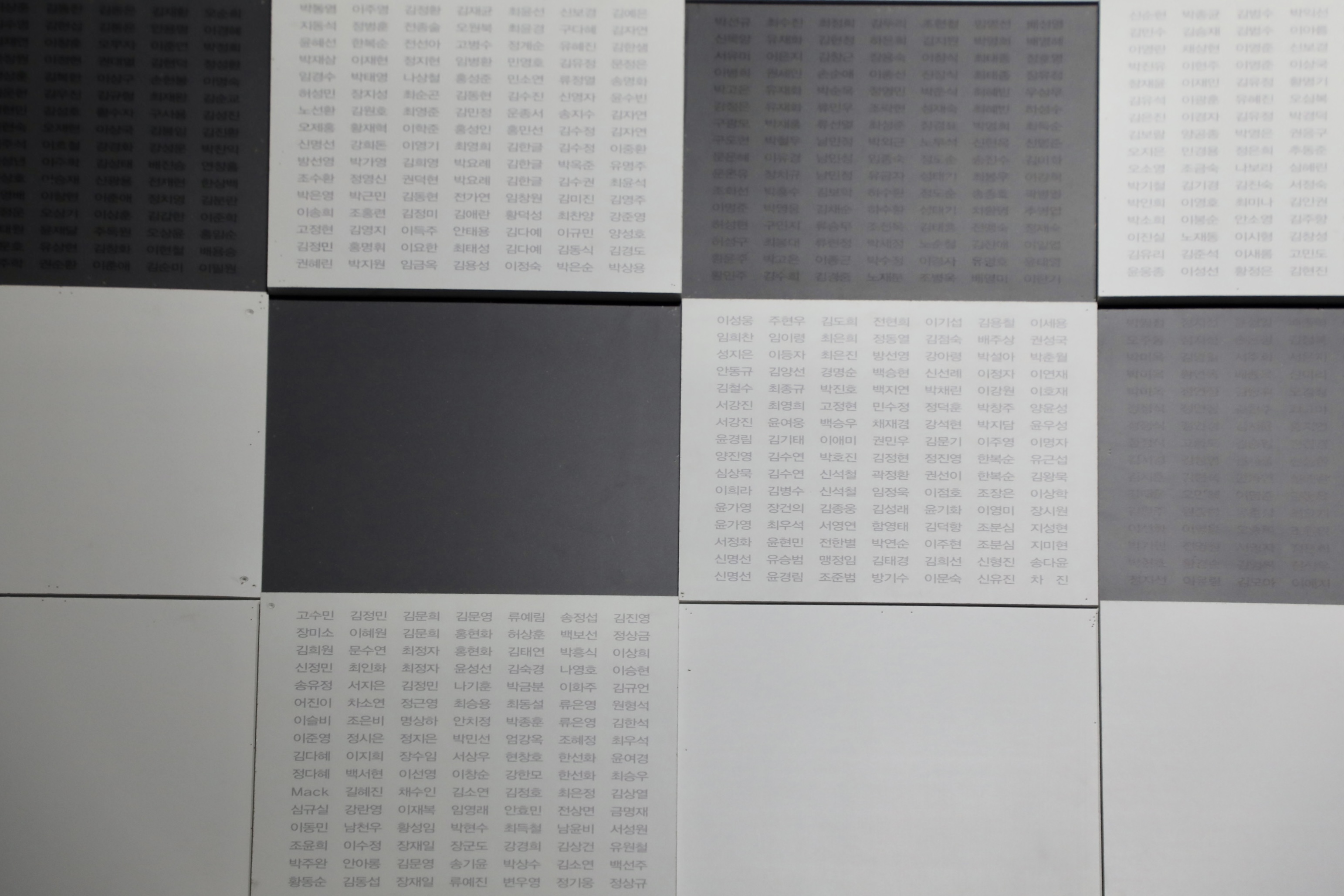 유류피해 극복기념관 벽면을 장식한 자원봉사자들의 명단