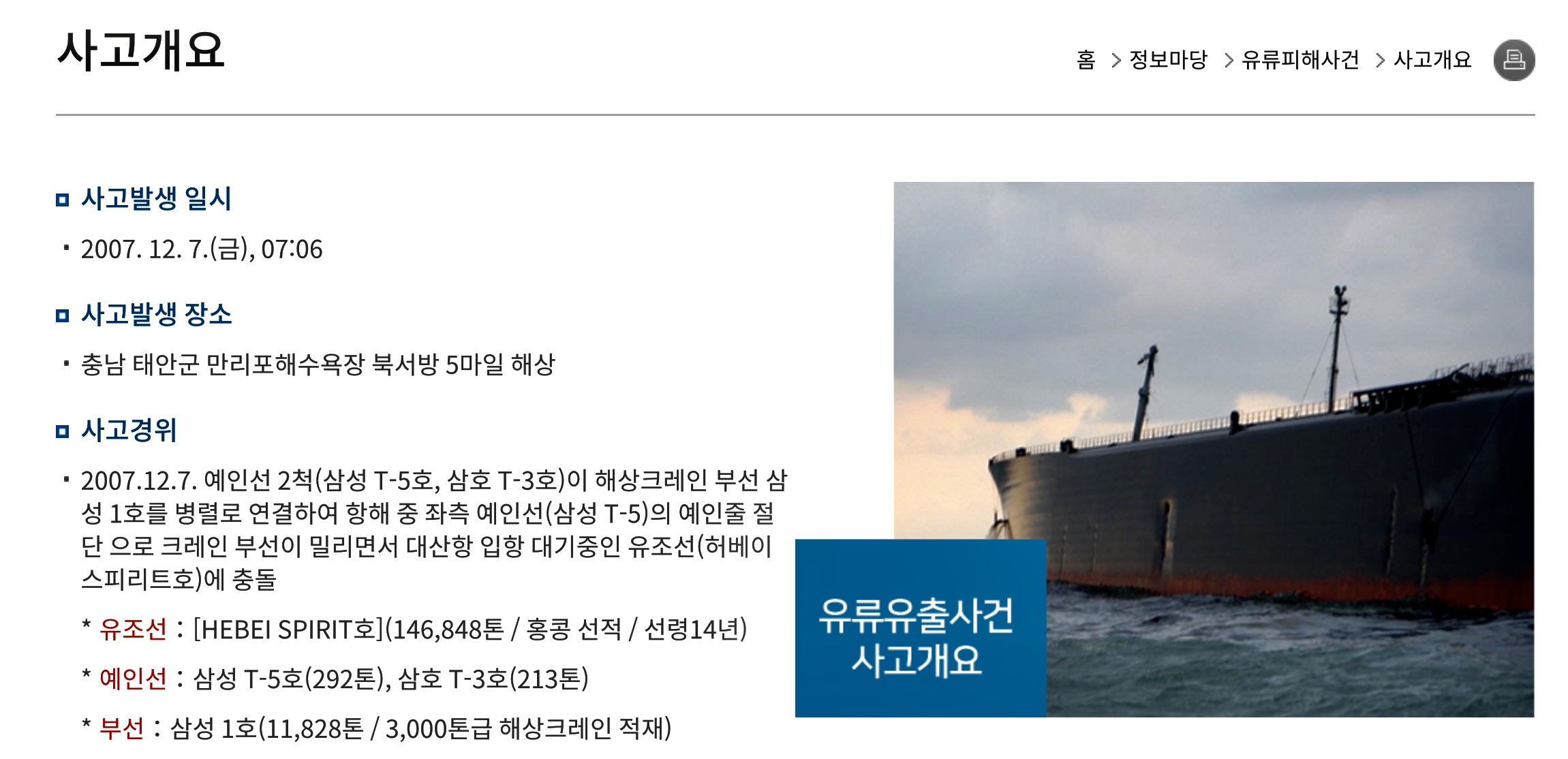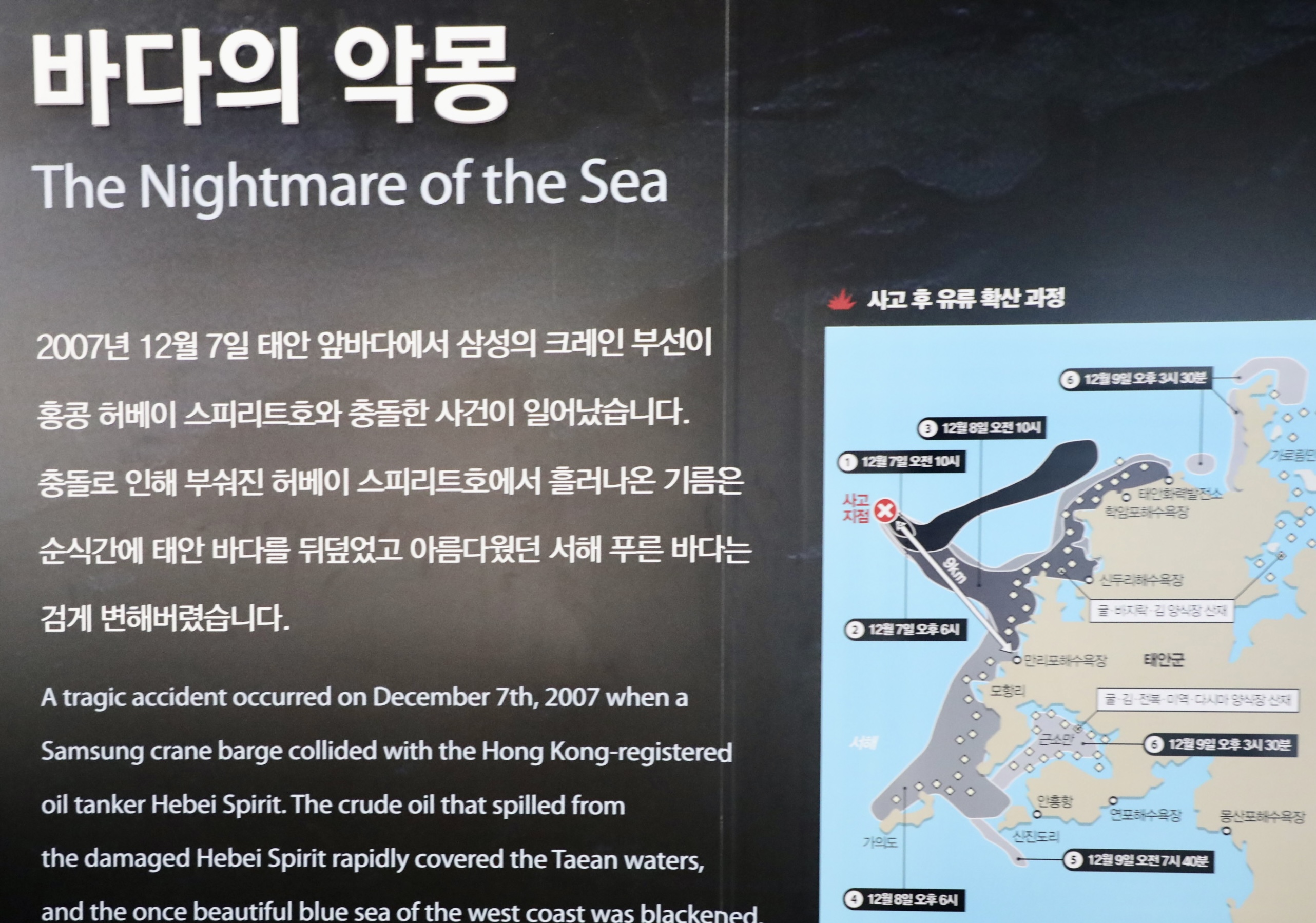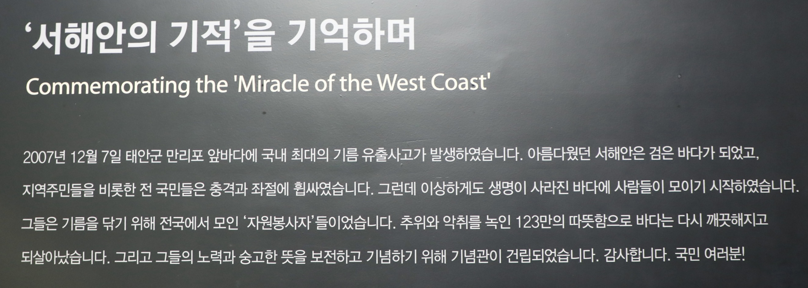 이곳 프로그램 일환으로 2007.12.7 발생한 서해안 유류유출 사고와 관련된 「유류피해 극복기념관」을 다녀왔다.