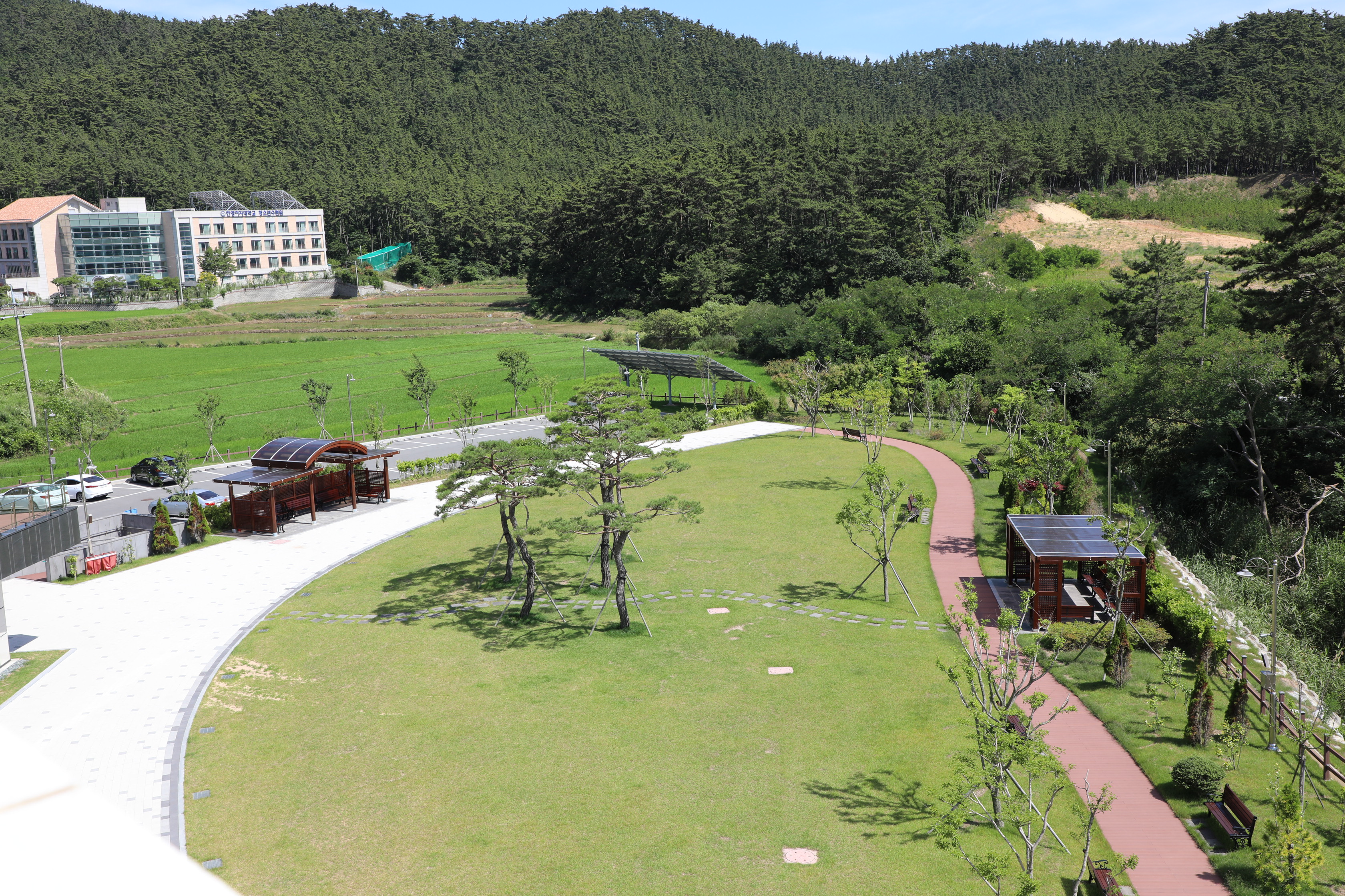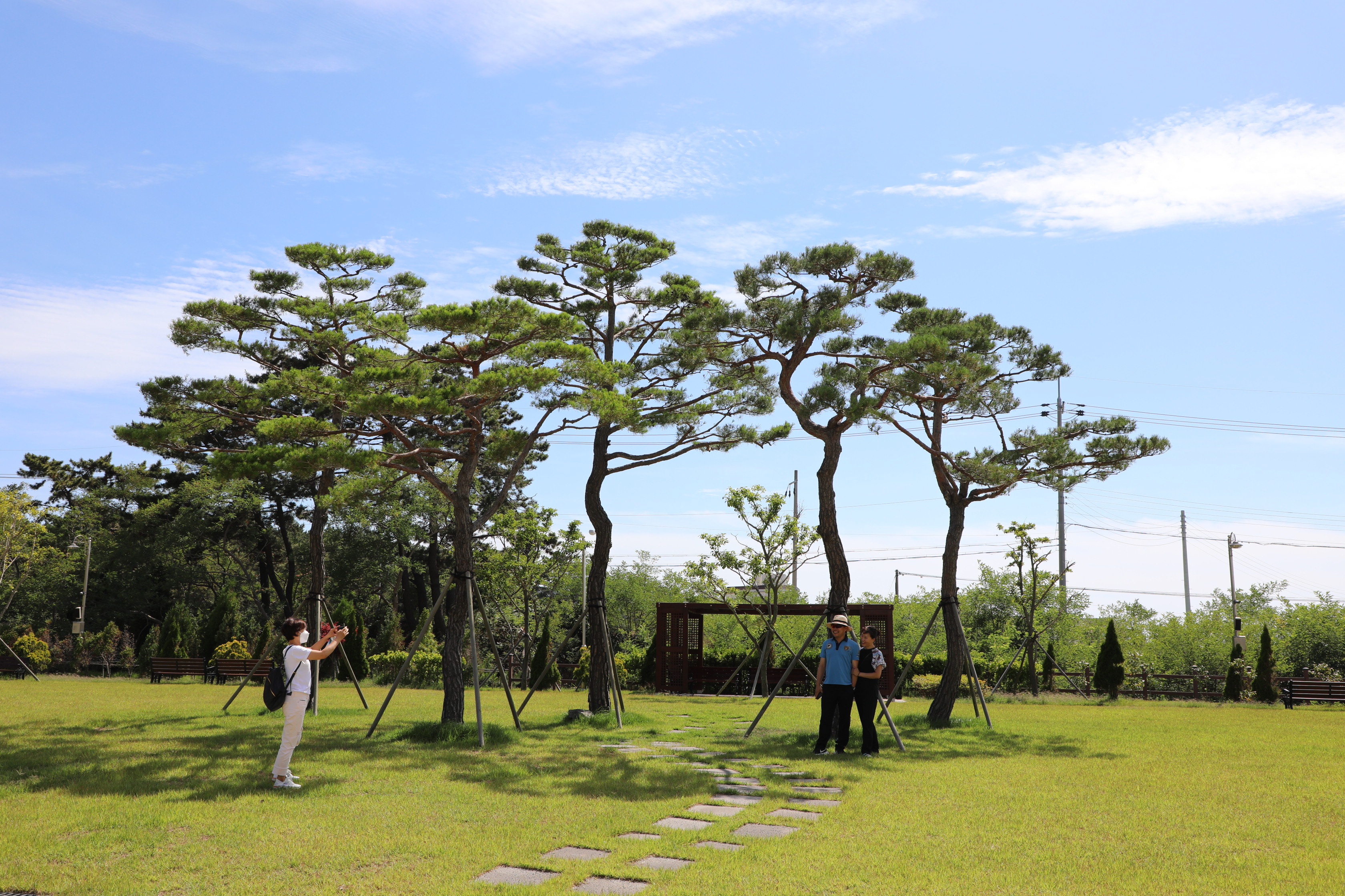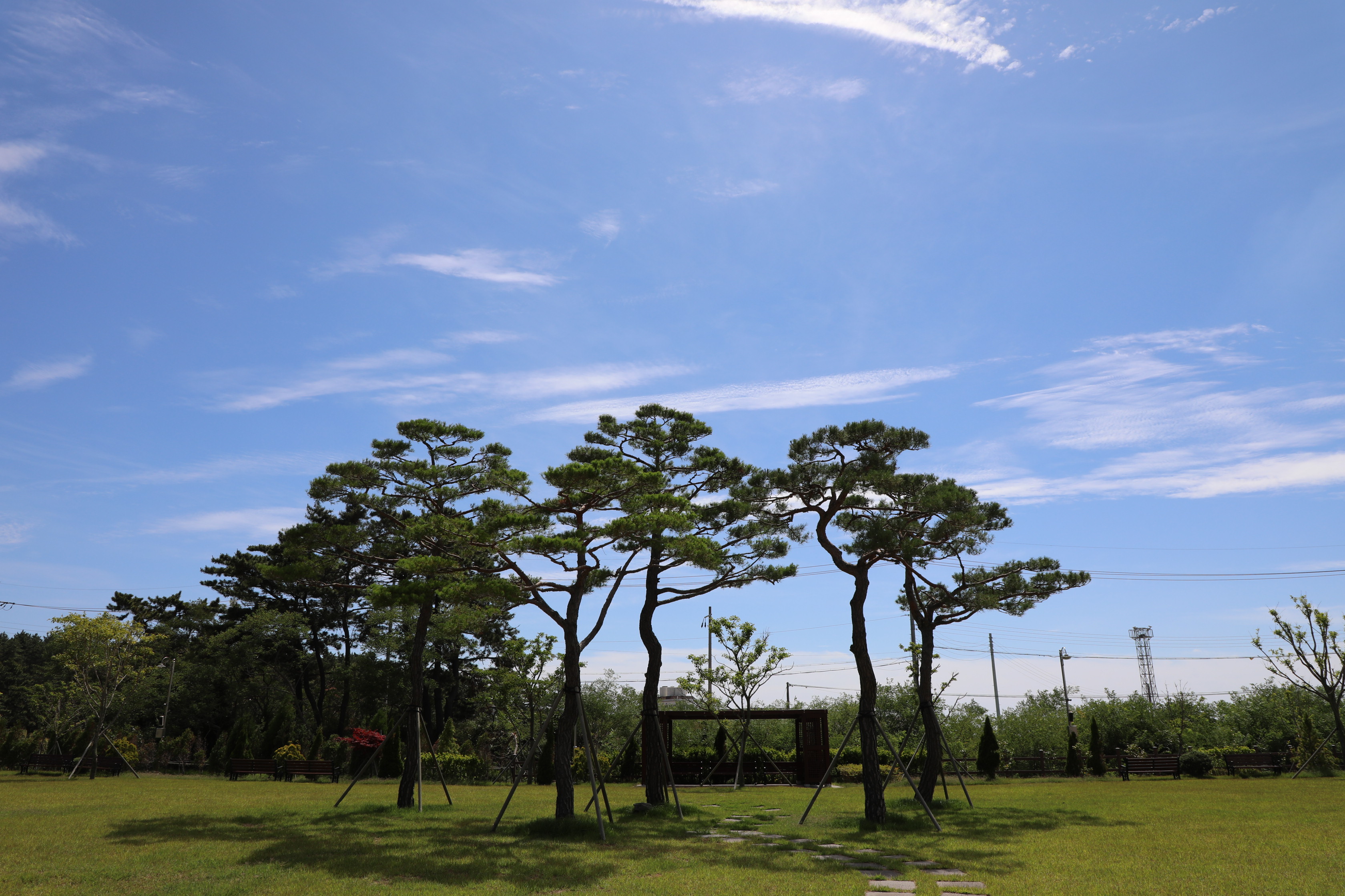 입구에 있는 소나무와 푸른 하늘처럼 태안이나 서산지역의 바다가 유류피해를 극복한 것처럼 늘 푸른 바다가 되기를 희망한다.