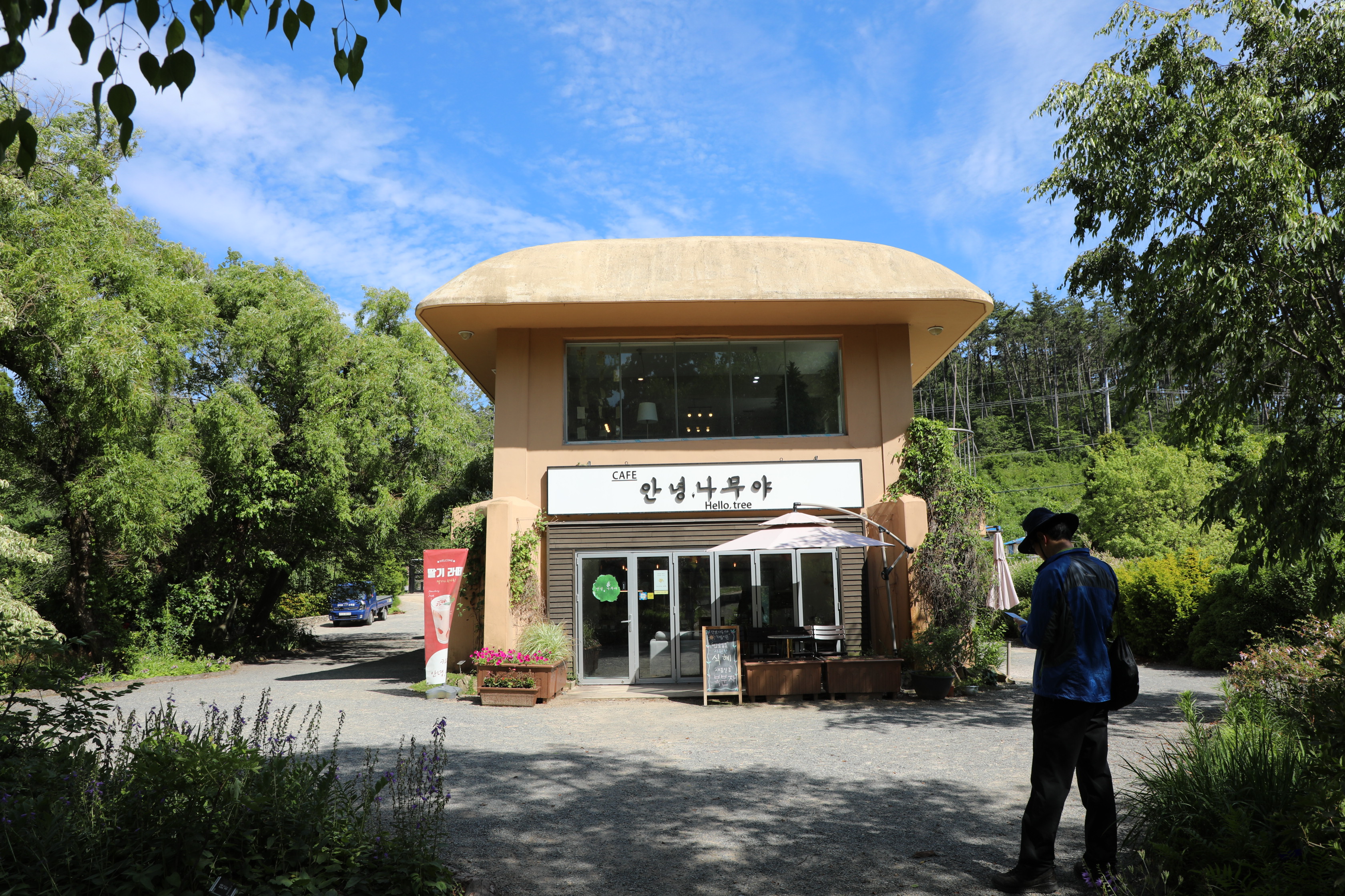 어렵지 않게 찾아오니 한쪽에 마련된 카페에서 차를 마시고 있다.