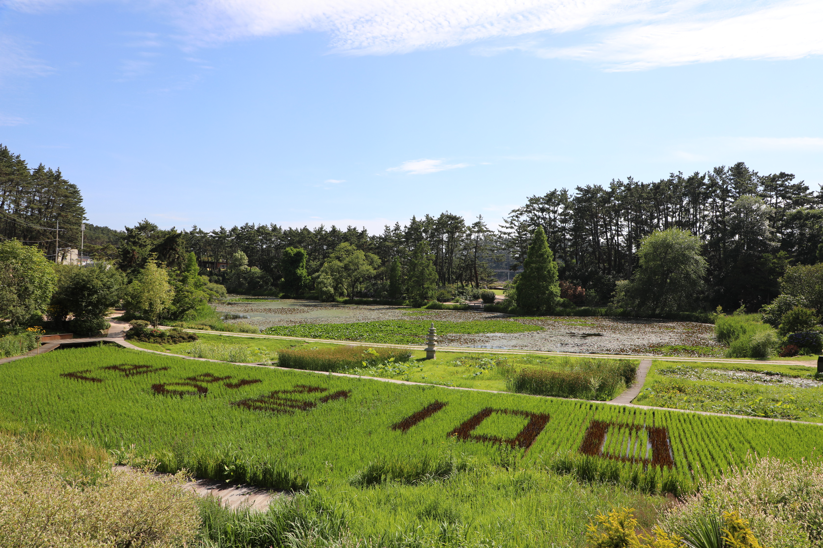 고 민병갑은 1921년 생으로 논에 색이 다른 품종을 심으며 올해도 여전히 100주년을 기념한다.