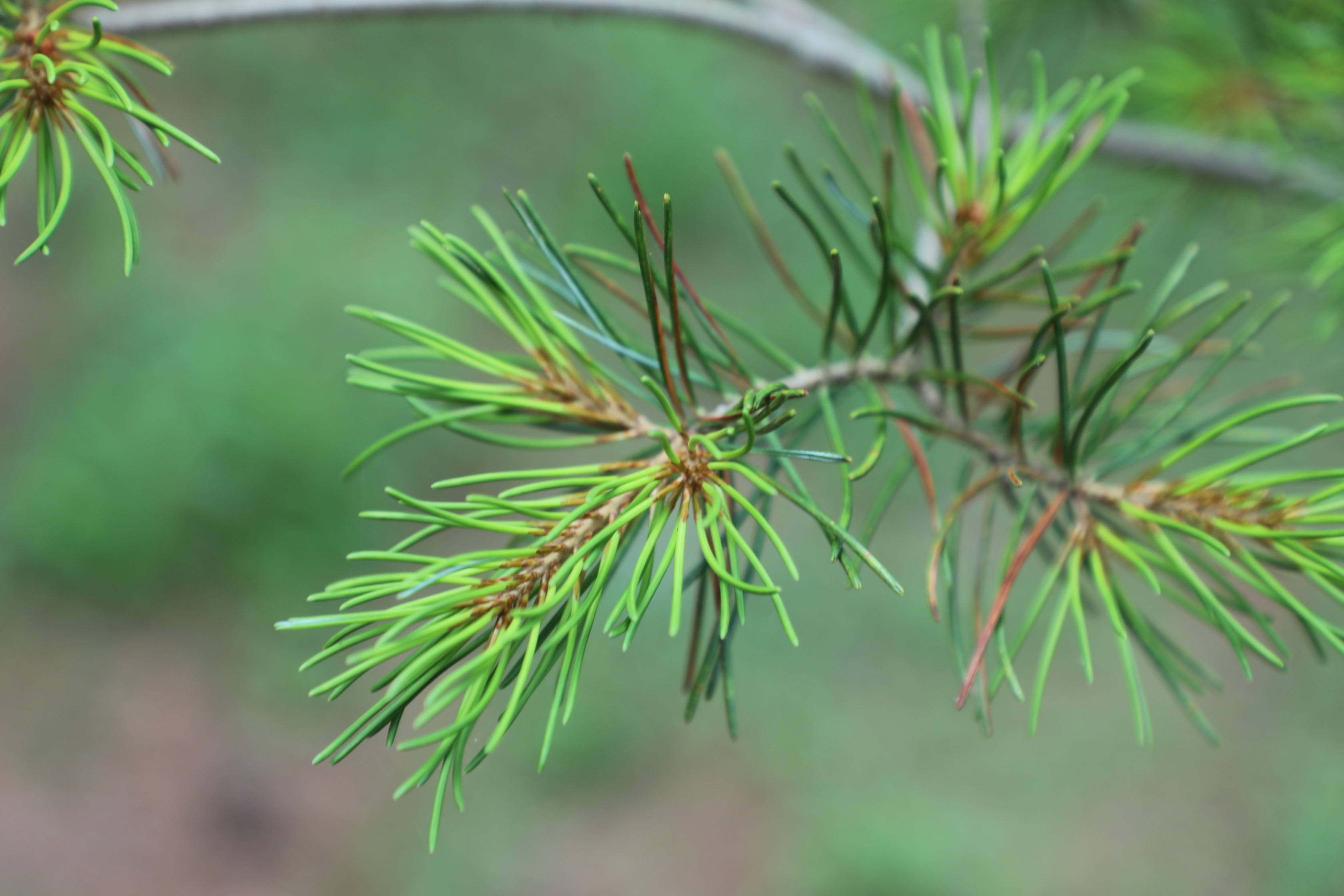 솔잎을 따서 손바닥에 대고 문지르면 겹쳐 있던 솔잎이 하나둘 갈라지며 여러 개가 뭉친 걸 알 수 있는 특이한 소나무다.