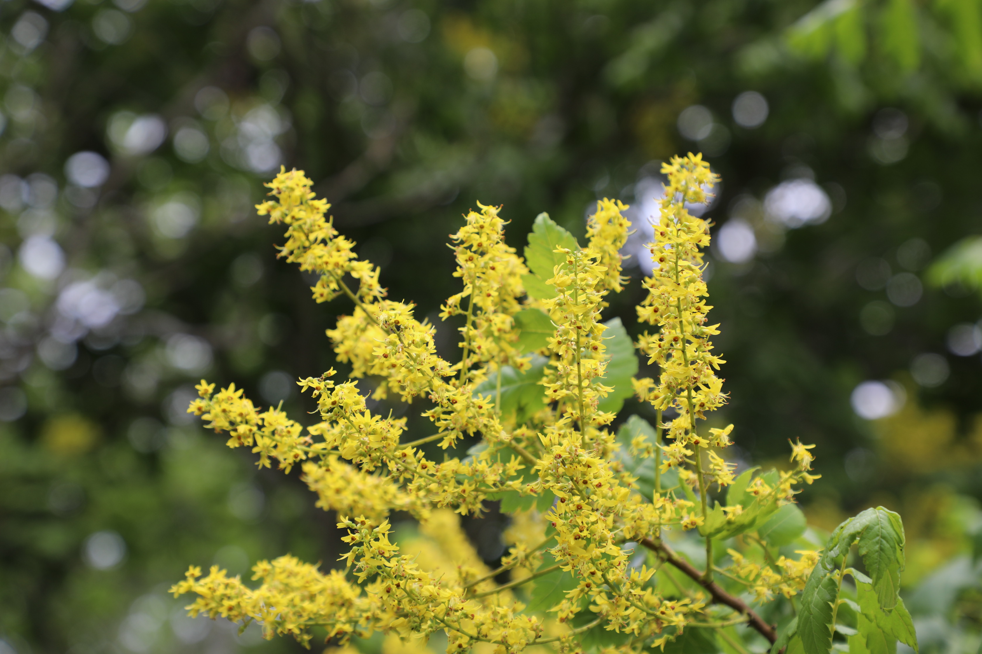 다른 꽃들이 한창 맵시 자랑에 여념이 없는 봄날에 모감주나무는 꽃피우는 일을 서두르지 않는다.