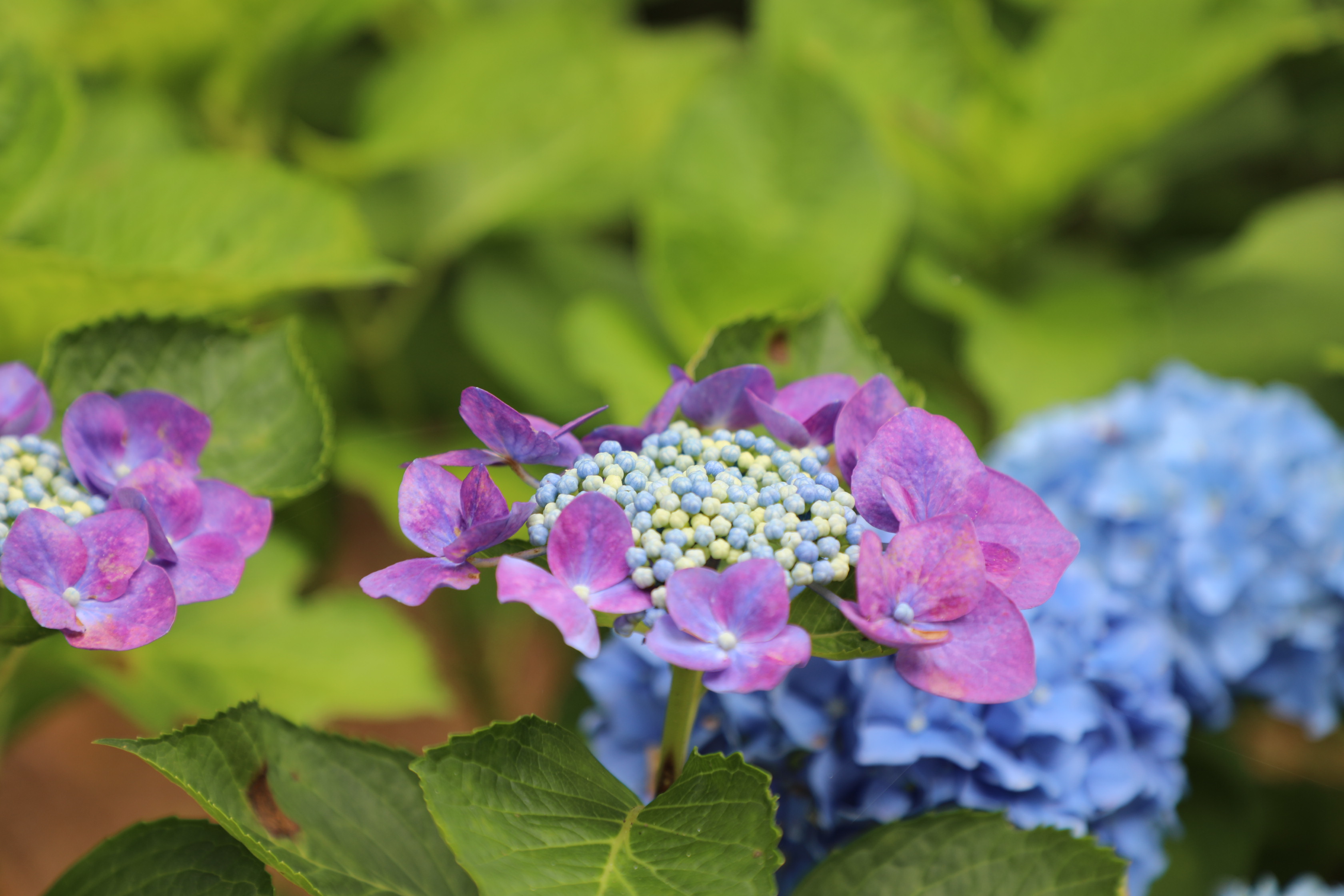 토양의 성질에 따라 산성 토양에서는 파란색, 염기성 토양에서는 분홍색 꽃이 피며,
