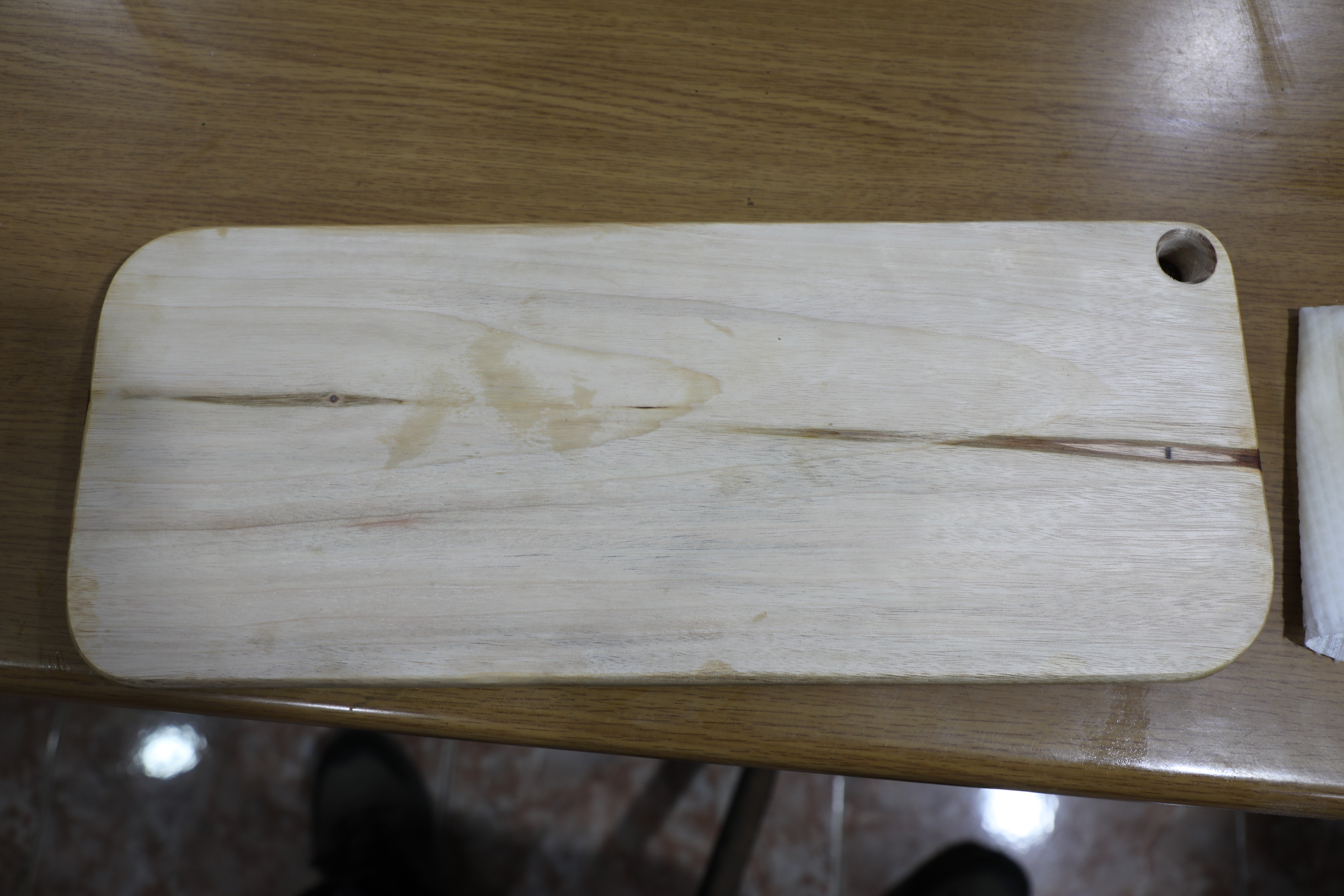 이번에는 도마 만들기 체험인데, 이미 두께와 크기는 나무 모양대로 다듬어 놓았다.
