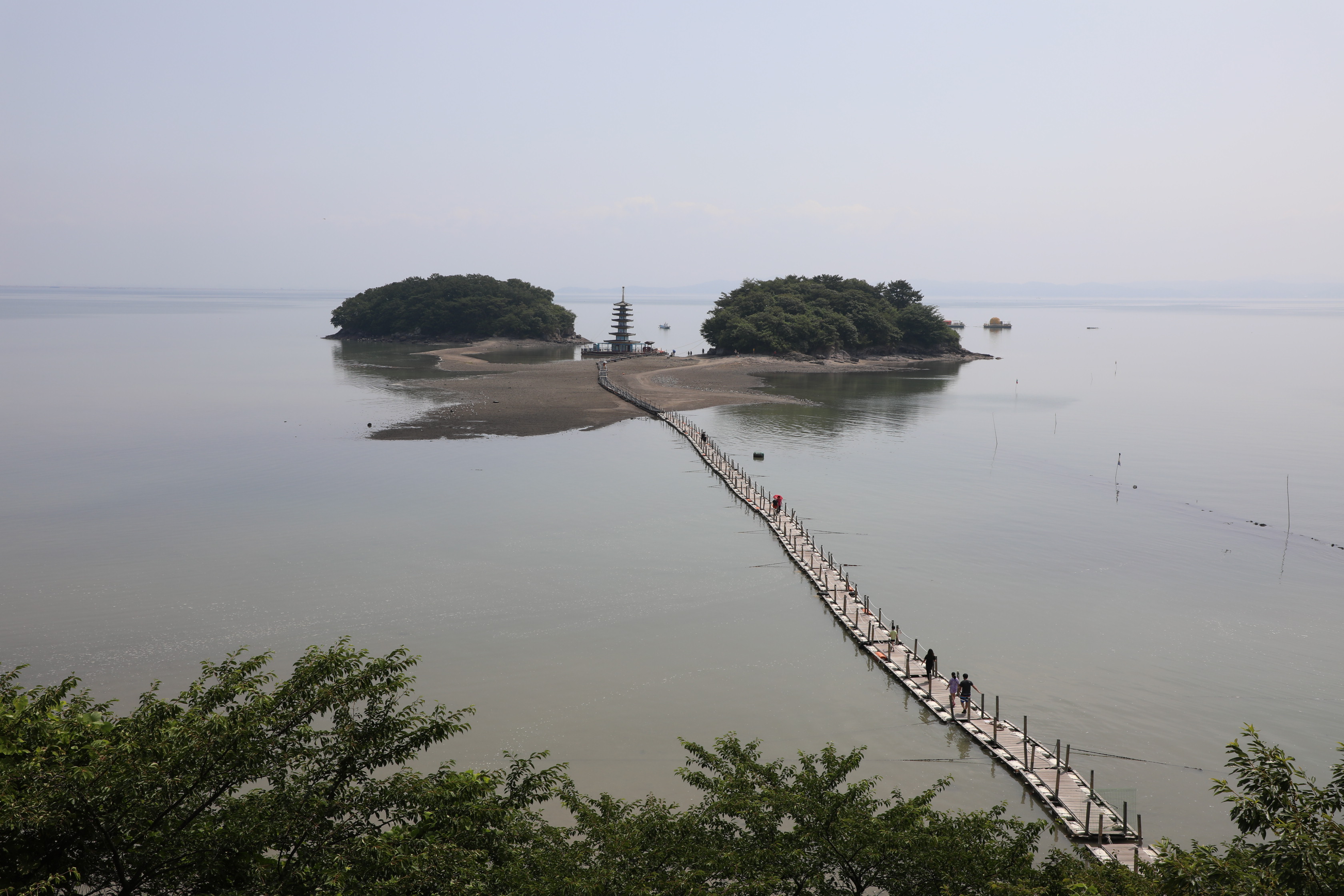 만조인 데도 부교가 있어 어렵지 않게 바다를 건너 부상교를 보고 왔다.