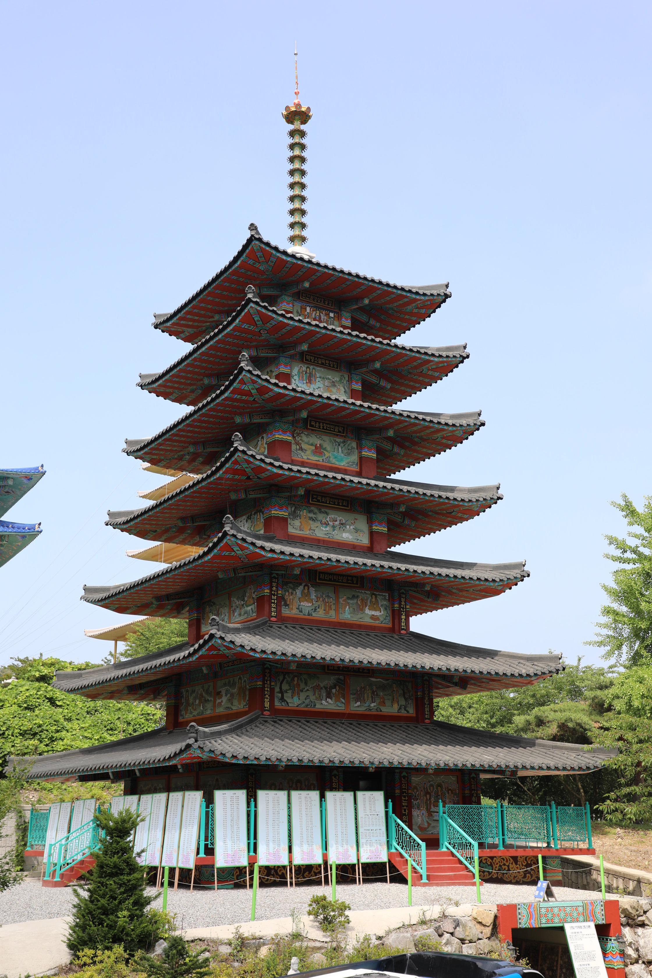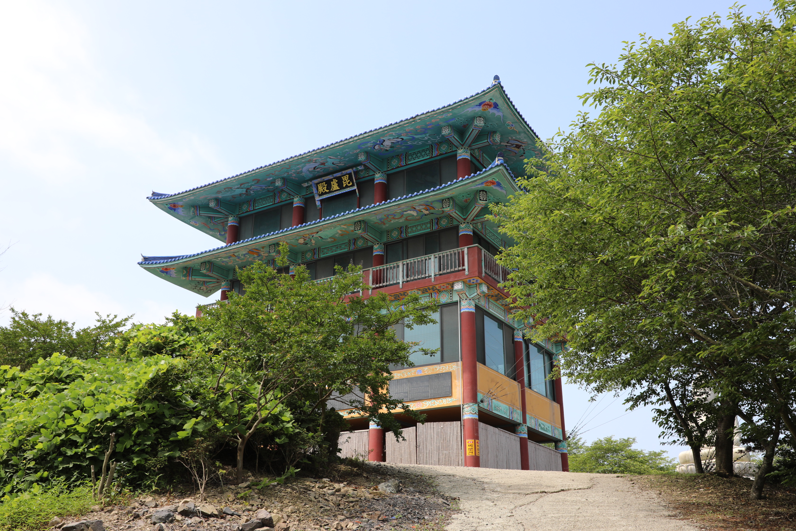 입구에서 보이는 이 전각은 바다에 뜬 부상탑과 마주 보며 닮은꼴인 7층 건물이다.