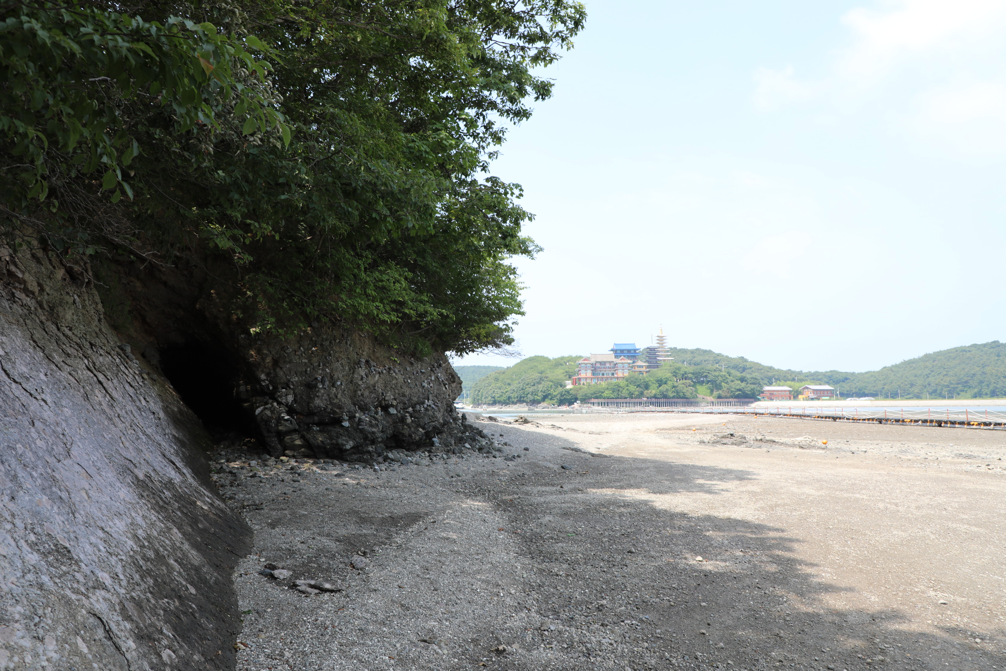 사찰 내부를 돌아보고 바닷가로 나가 부상탑이 있는 건너편 바다를 본다.