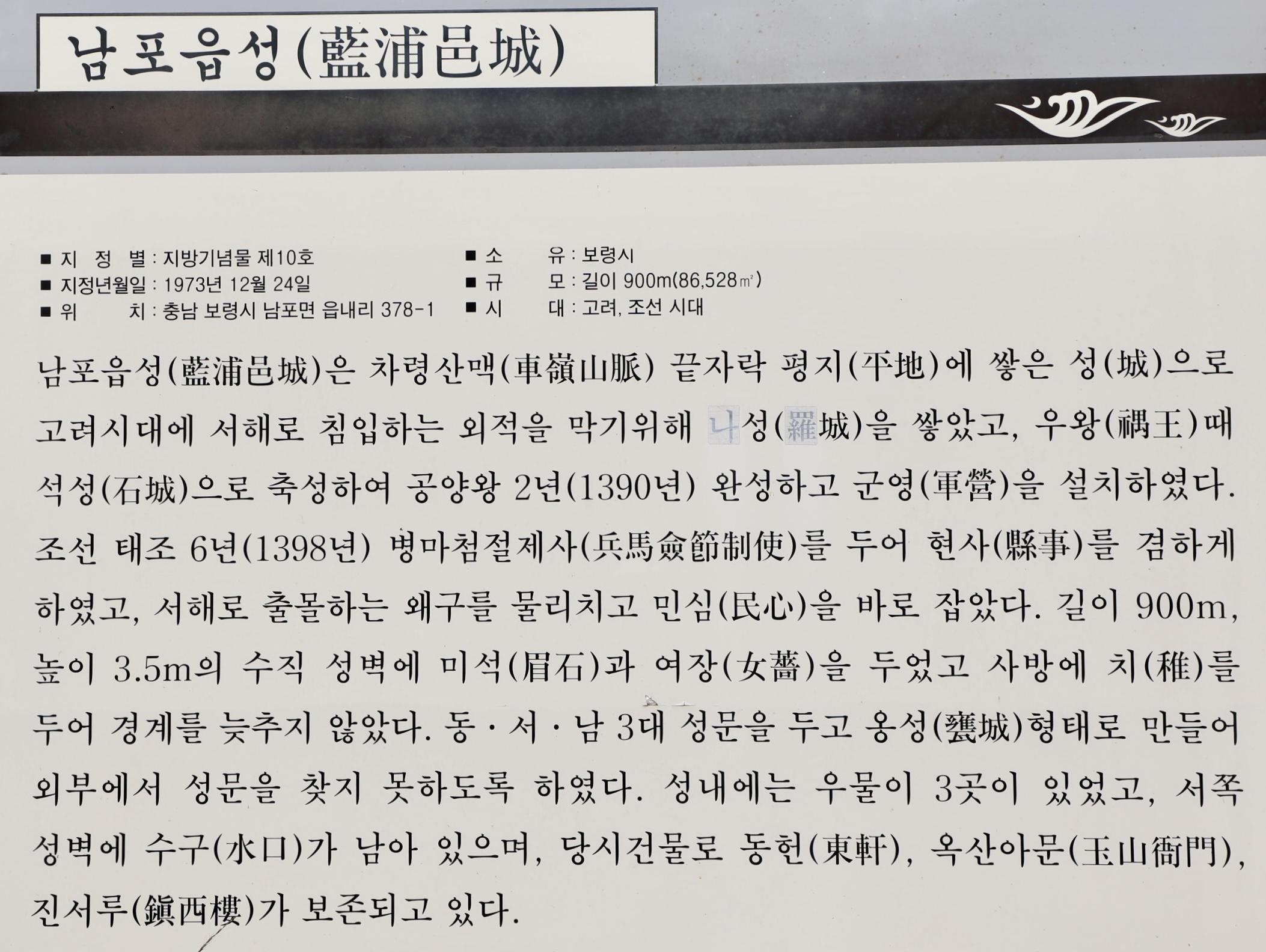 어찌 된 영문인지 살펴봤더니 보령시 대천항 남쪽에 있는 포구라 하여 남포면이란 행정구역 안의 성이다.