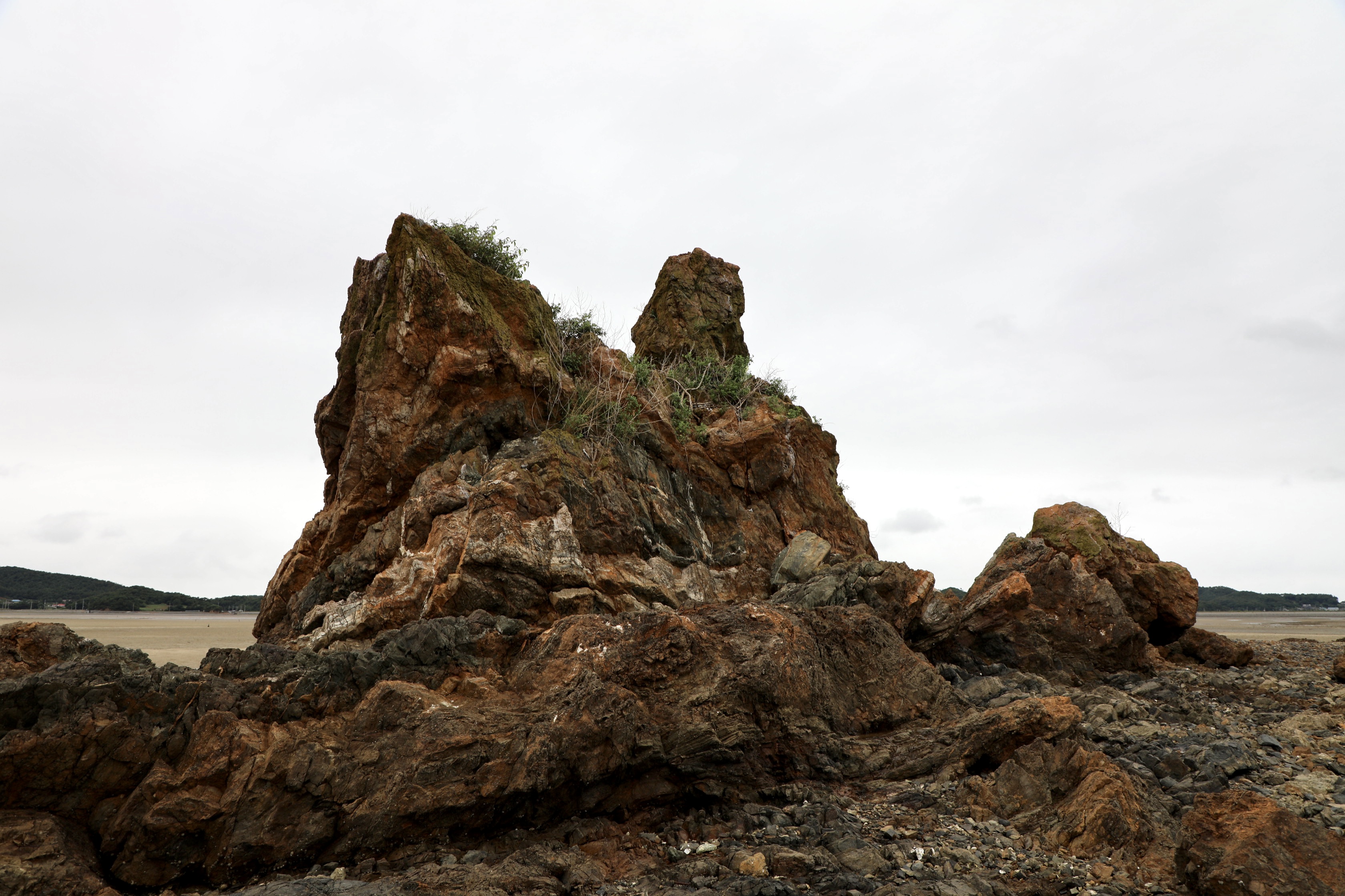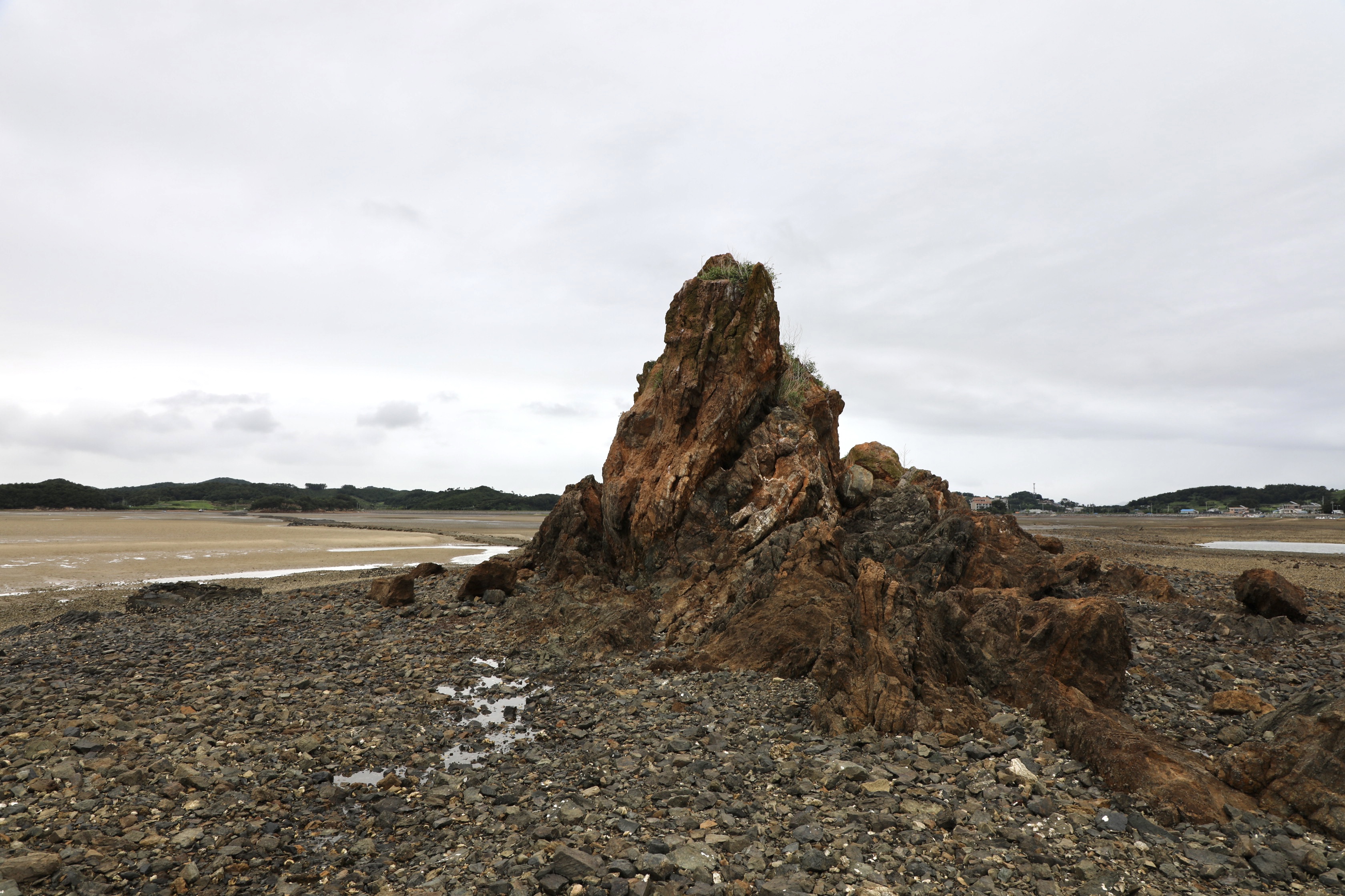 하루에 절반 이상 이 바위 밑단까지 물에 잠긴다.