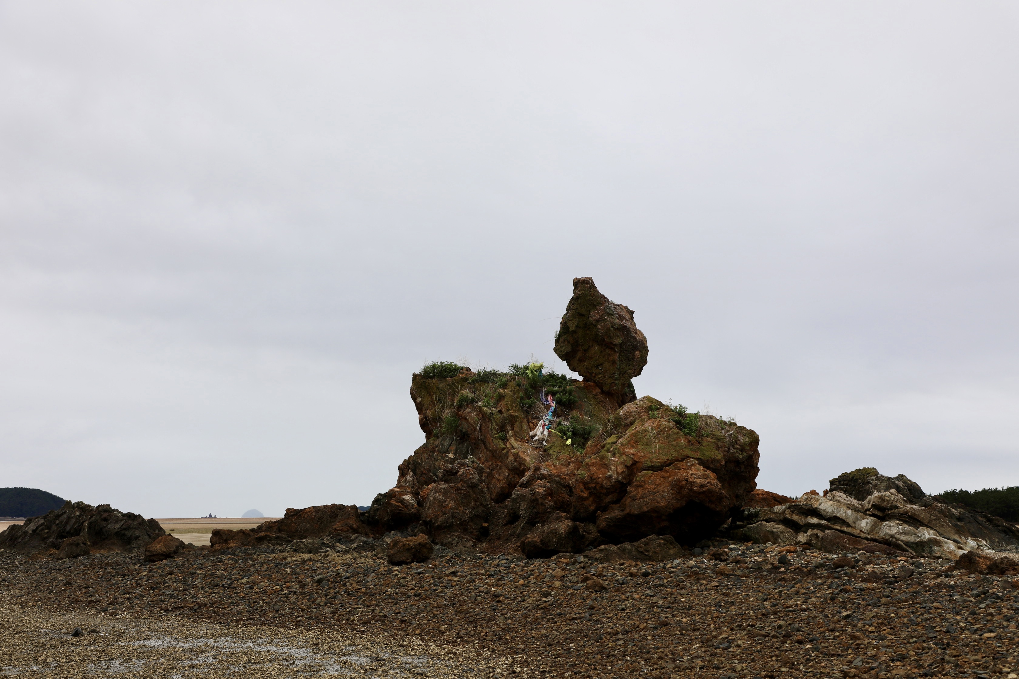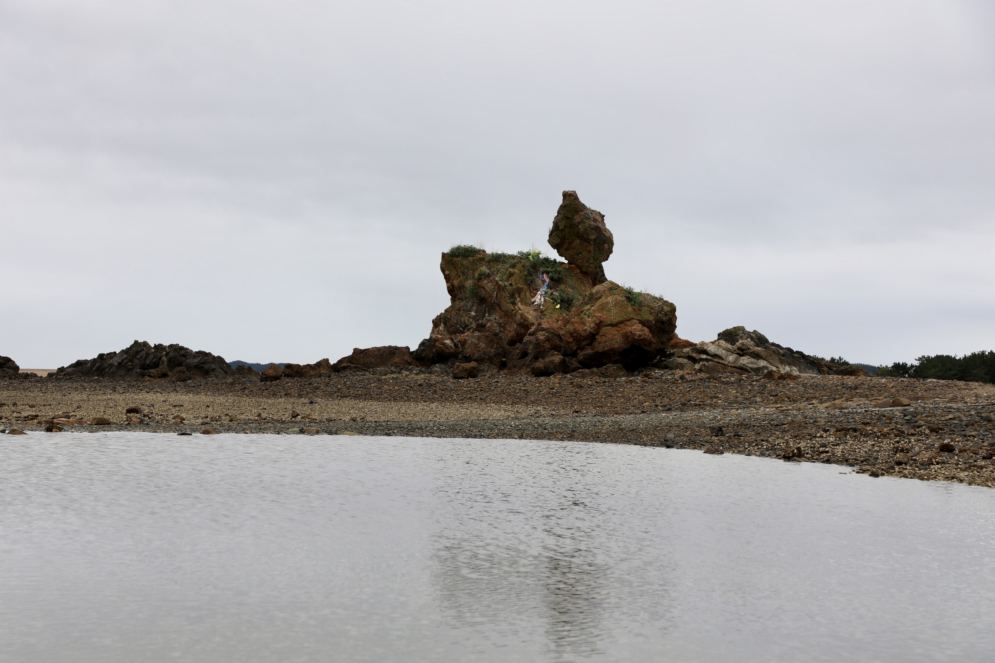 바위 앞엔 제법 큰 웅덩이가 있어 바닷속 바위라는 걸 은근히 암시한다.