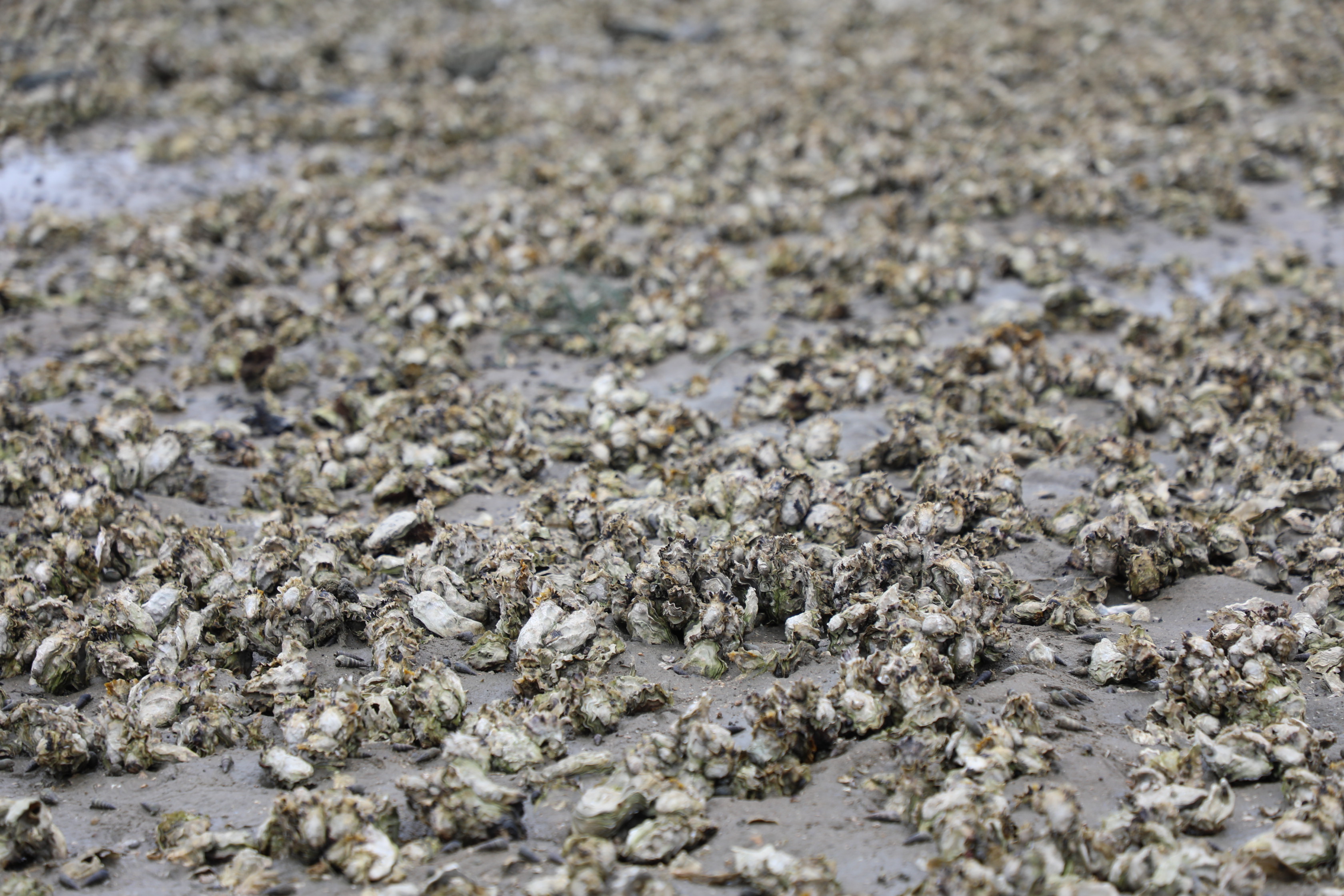그런데 이 갯벌은 온통 굴이 지천으로 깔렸다.