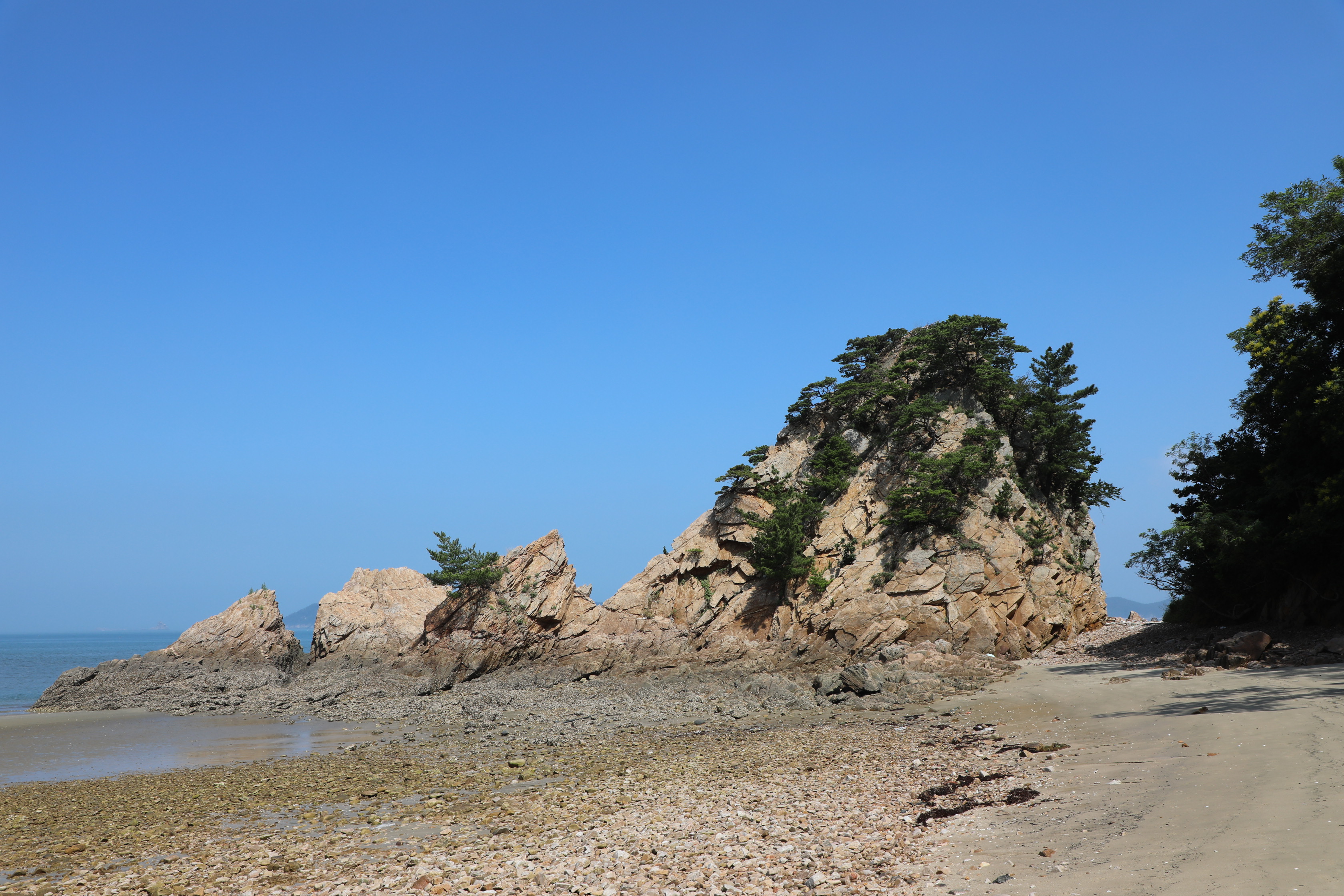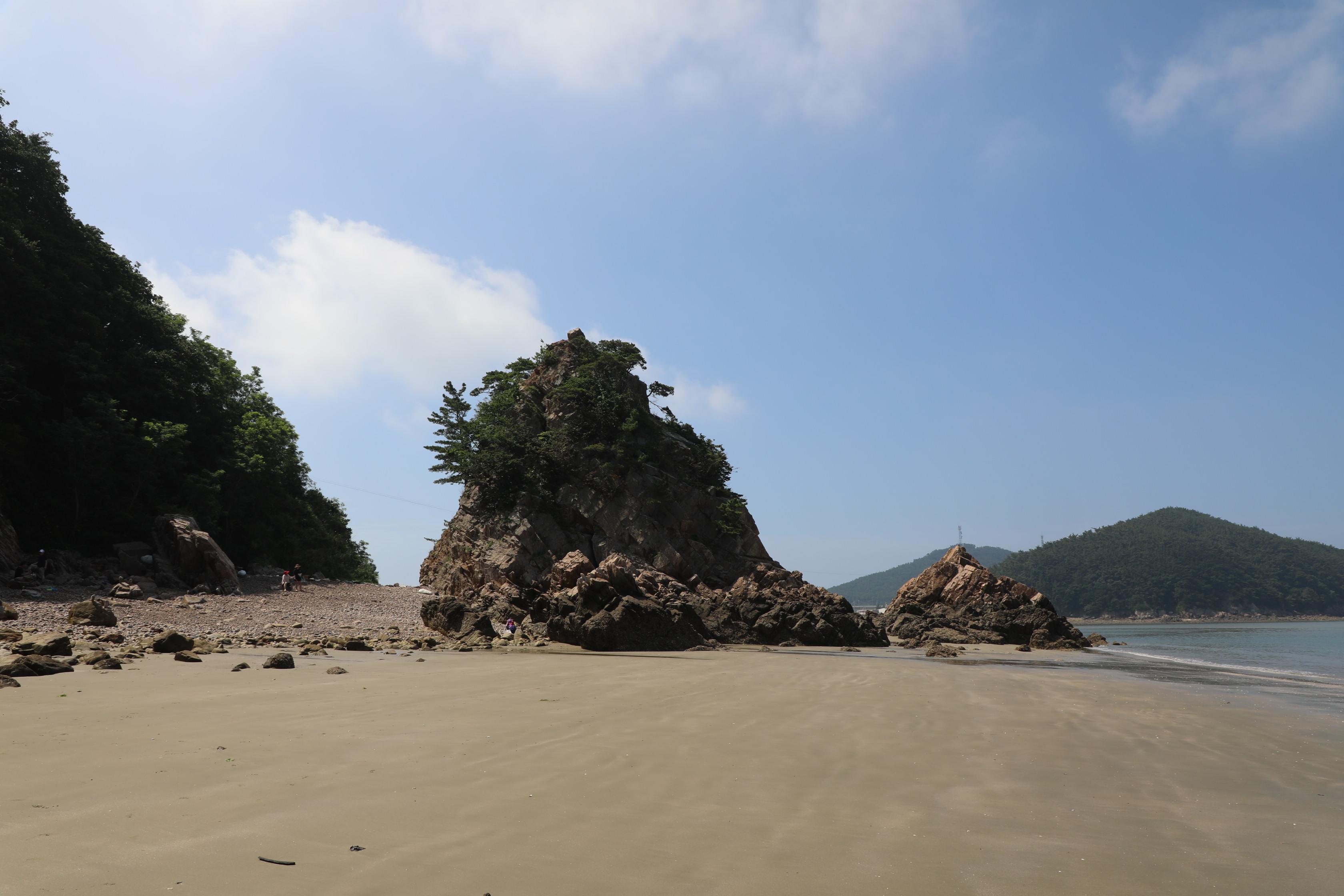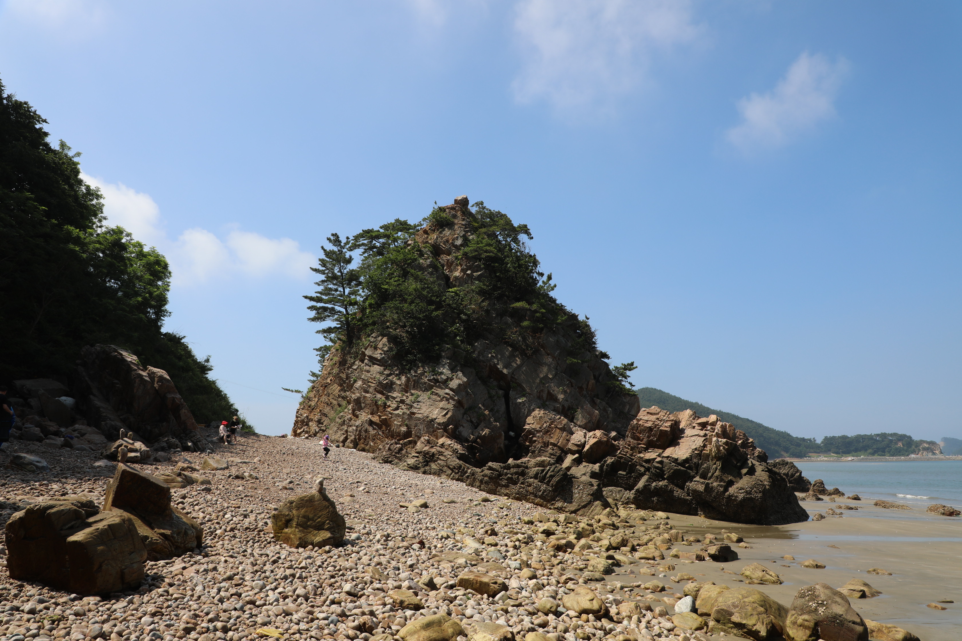 이쪽 바위 주변의 뒤쪽은 자갈이 가득하고 앞쪽엔 고운 모래가 있는 특이한 지역이다.