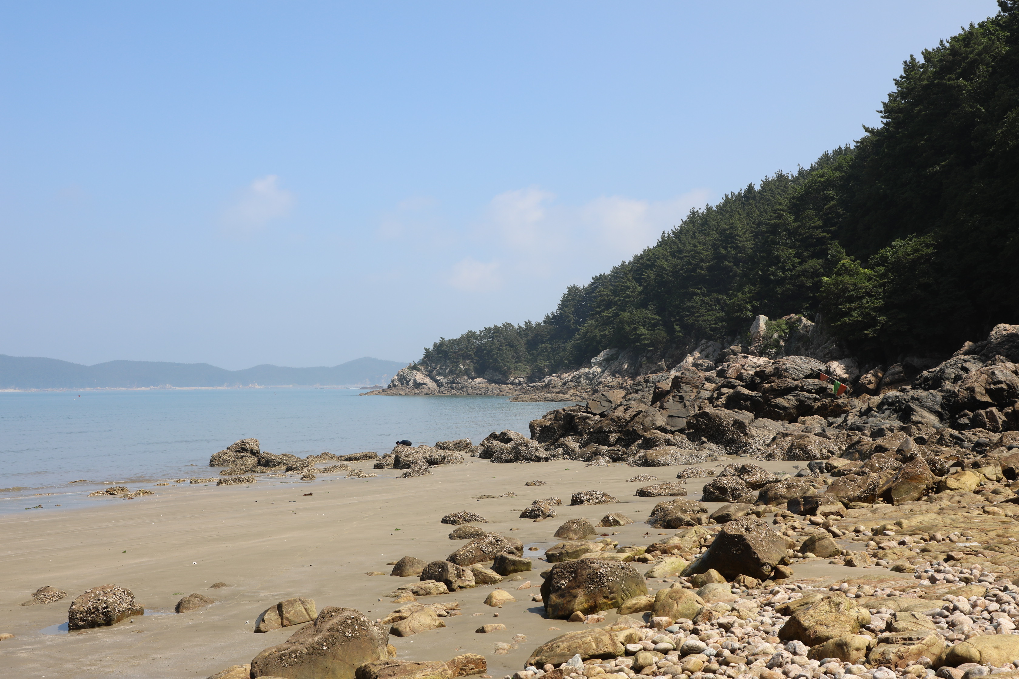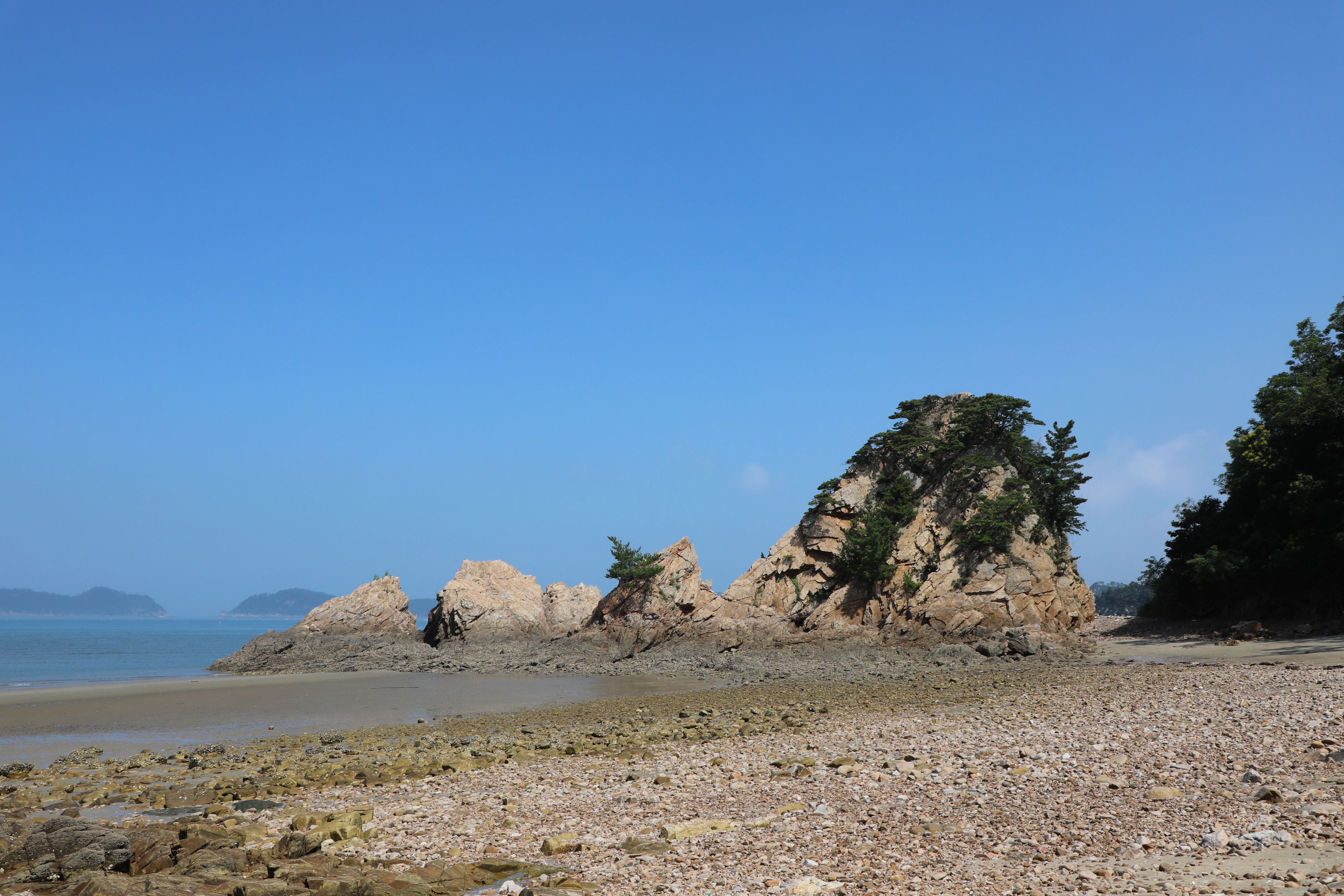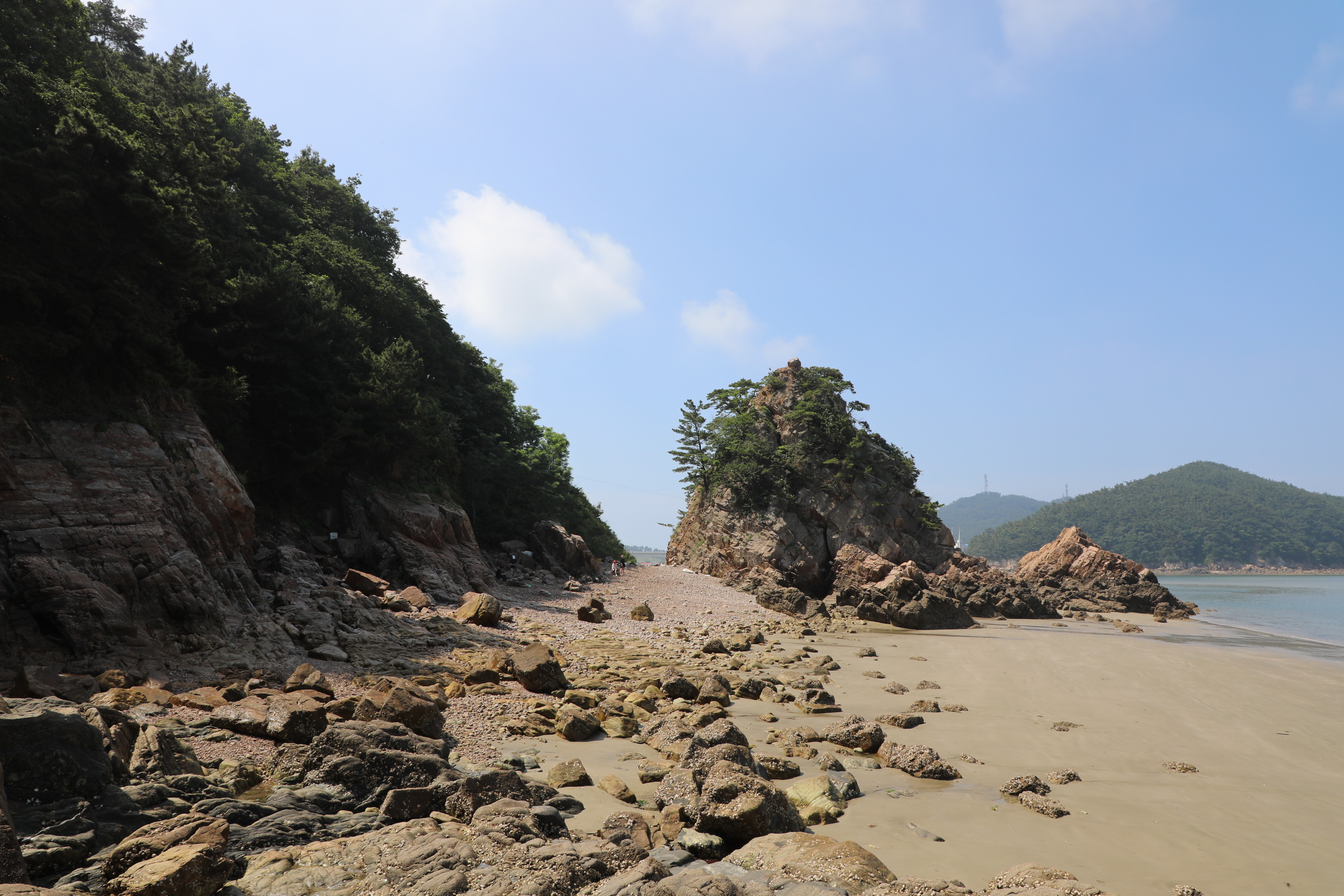 이쪽 바위 주변의 뒤쪽은 자갈이 가득하고 앞쪽엔 고운 모래가 있는 특이한 지역이다.