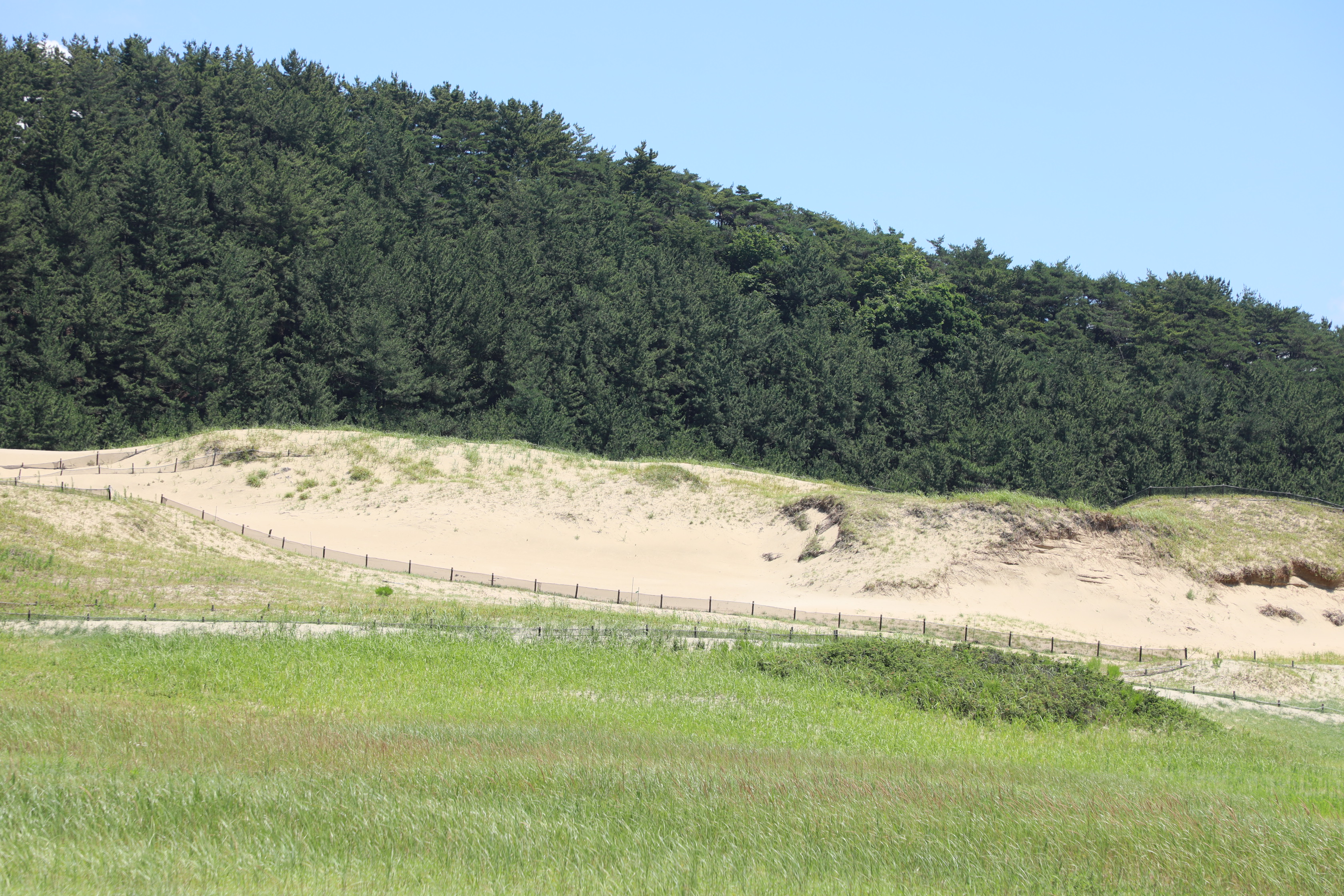 강한 바람에 모래가 파랑에 의해 해안가로 운반되면서 오랜 세월을 거쳐 모래언덕이 형성된 것이다.