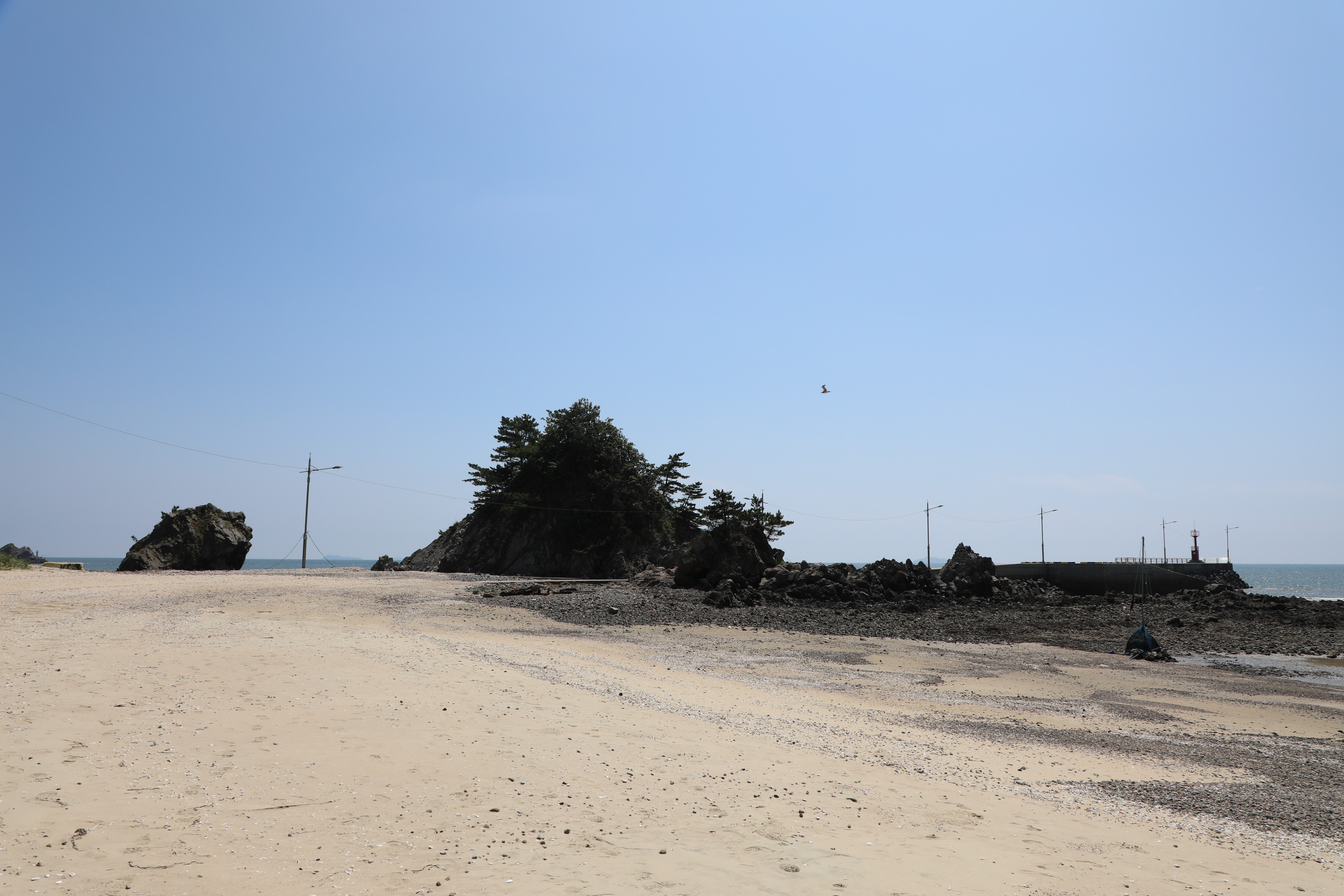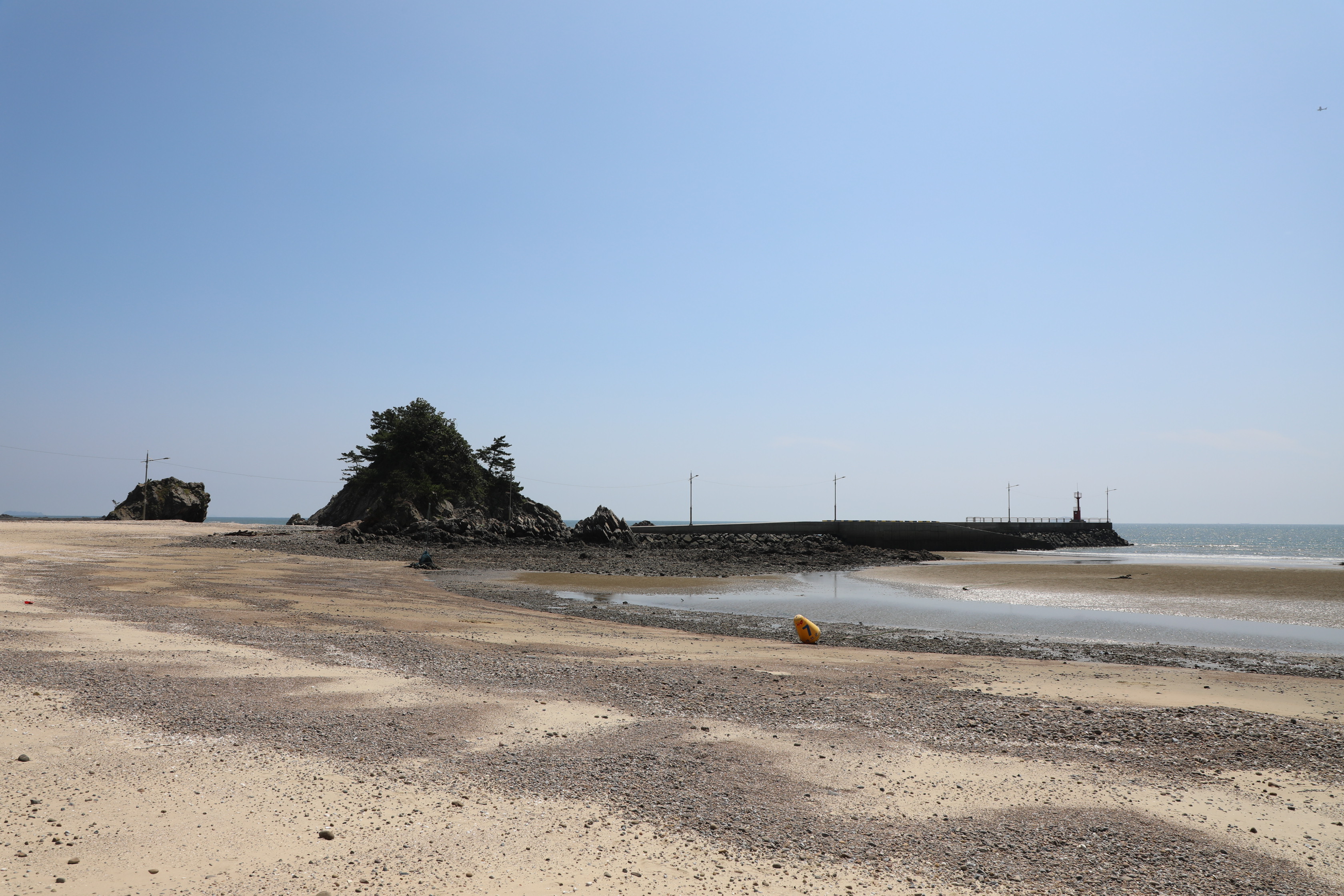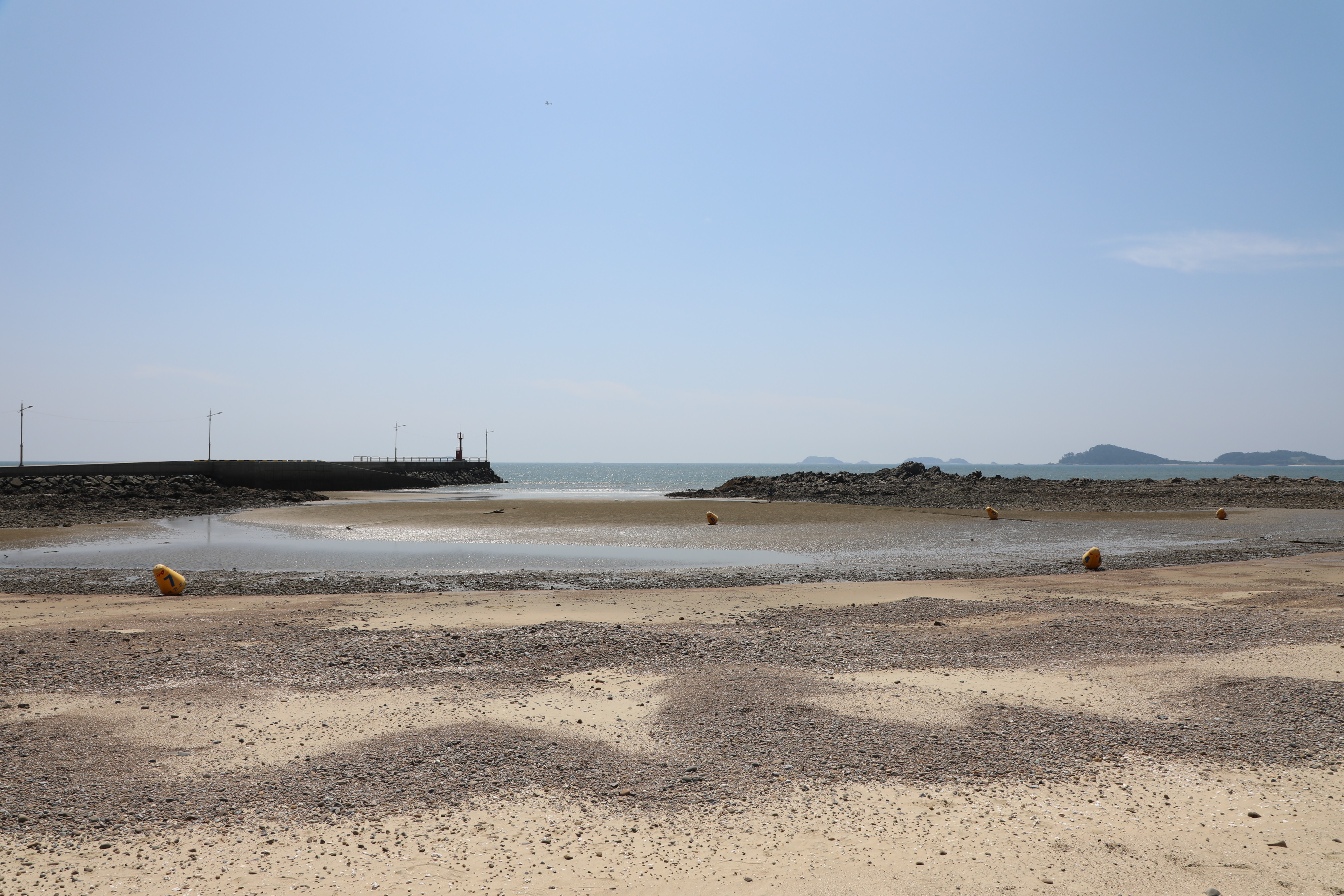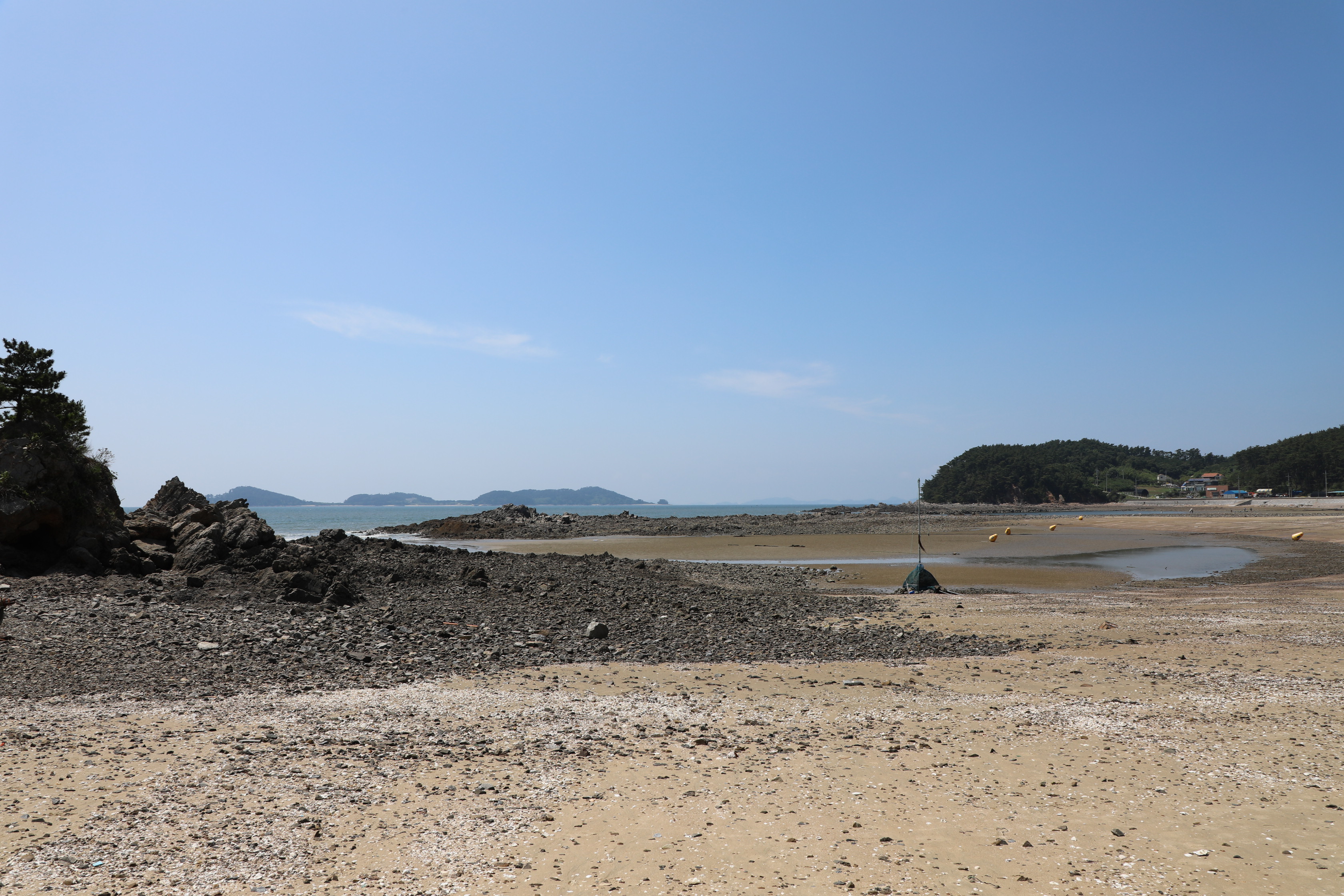 밀물 땐 물기가 많은 곳은 바다에 잠기겠지만 경가사 완만하다는 걸 알 수 있다.